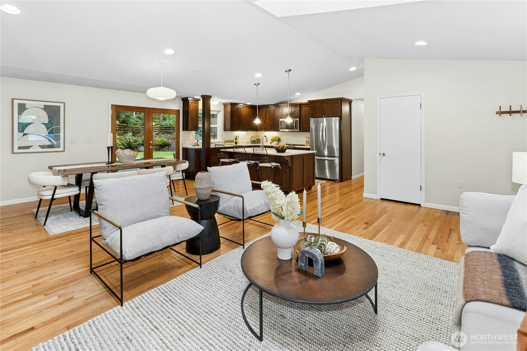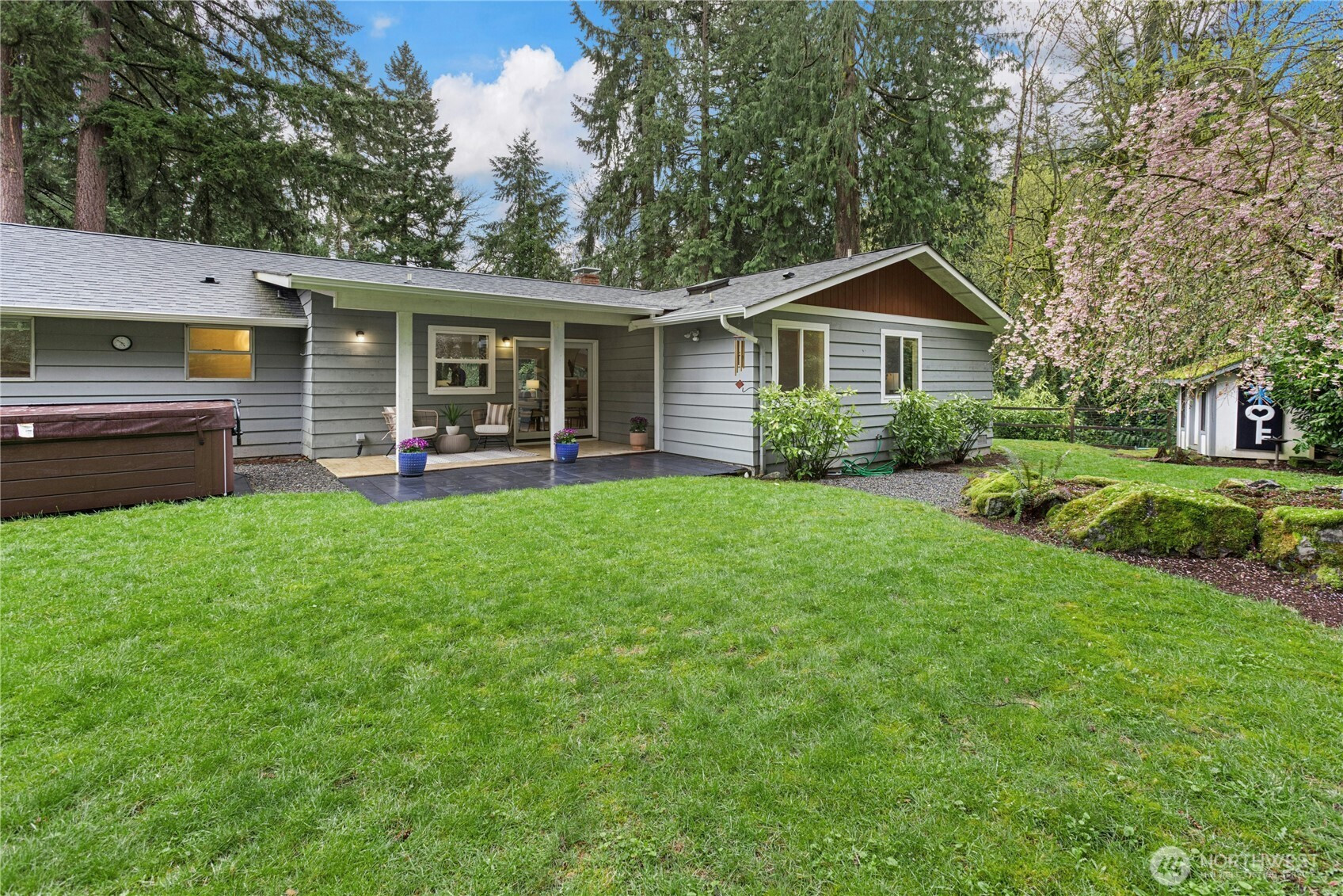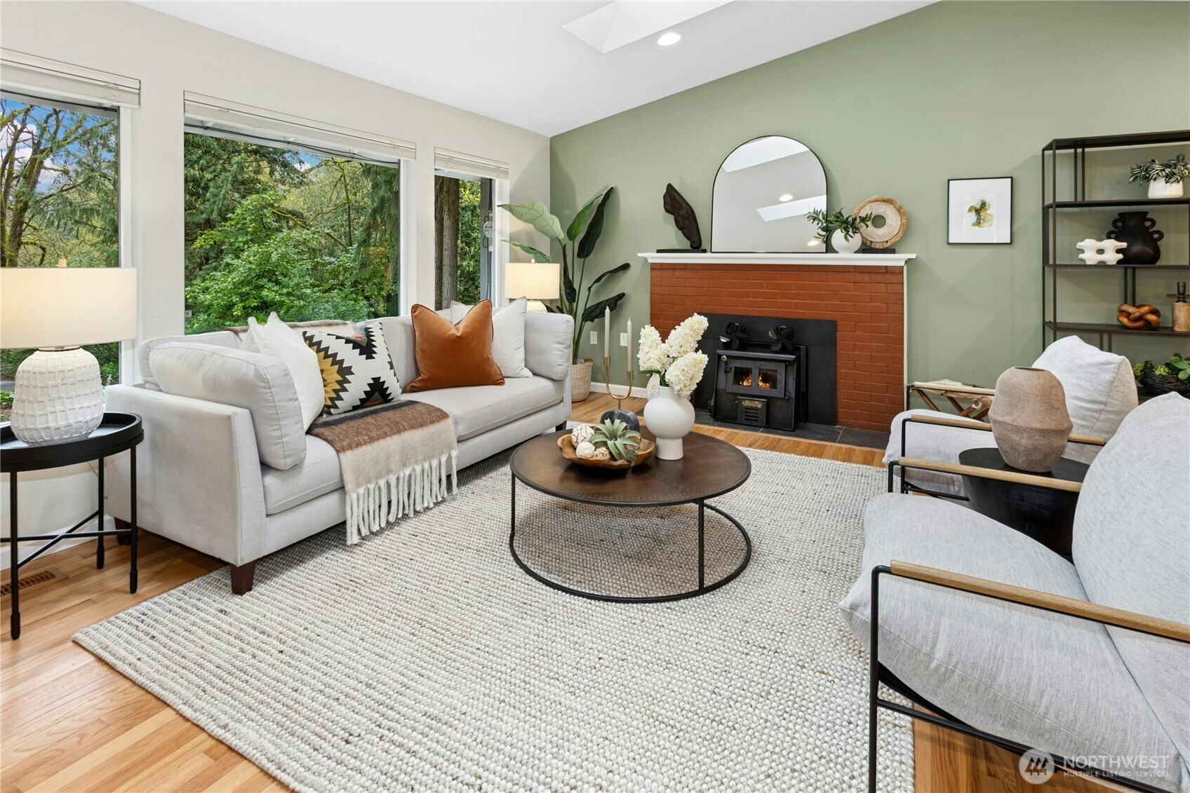 Tucked away on the end of Mt Index Pl, rests this one-of-kind rambler nestled up against a scenic greenbelt with creek below. On nearly half an acre lot offering a rare blend of tranquility, privacy, and refined comfort, this is just a short walk from downtown Issaquah. Vaulted ceilings and skylights bathe the great room in natural light, while French doors open to a serene outdoor sanctuary overlooking a peaceful creek. Rich oak hardwood floors extend throughout the main living spaces, complemented by a thoughtfully updated kitchen with open great-room design. Unwind under the covered patio in your private hot tub, or gather around the cozy wood stove on cooler evenings. Designed for easy living, the home features updated electrical and plumbing (2016), a newer 10 year old roof, and a 3-year-old HVAC system with an energy-efficient electric heat pump for year-round comfort. Located within the award-winning Issaquah School District, this exceptional property offers the perfect balance of nature, seclusion, style, and convenience. Comes with garden space, oversized 2-car garage and ample parking. 2 minute drive or 5-10 minute walk to Historic Olde Town Issaquah for endless events, shops and dining! Live the dream!