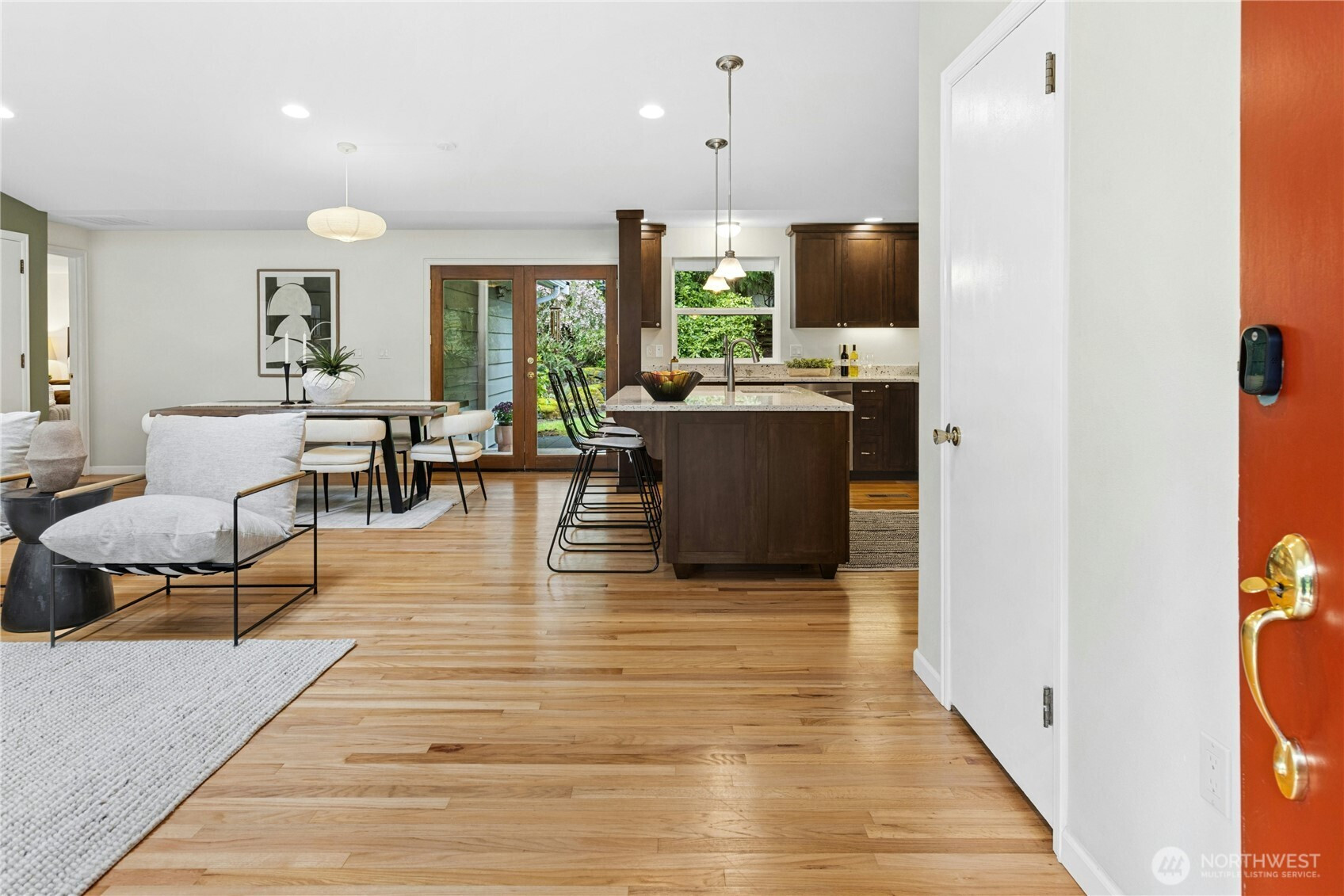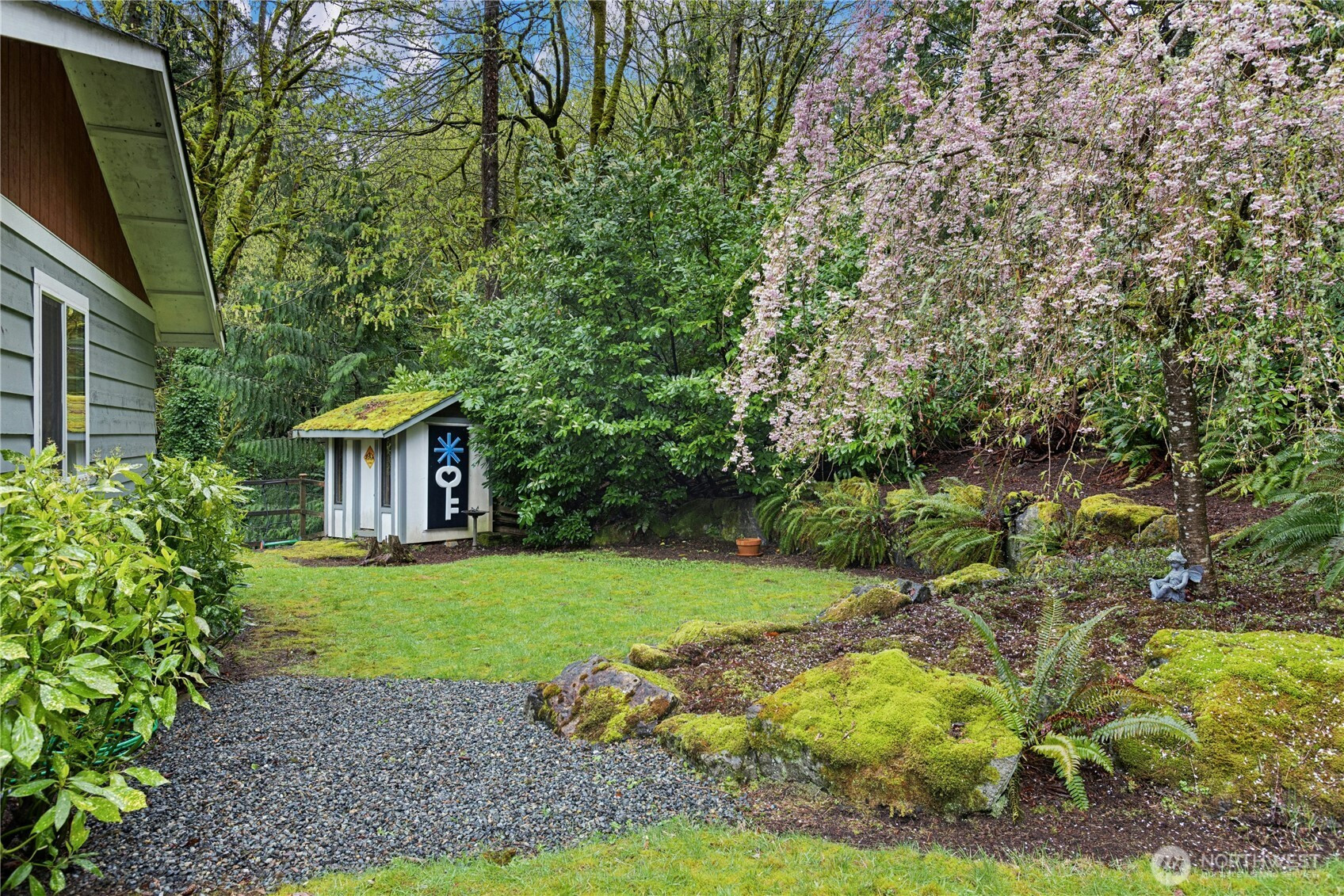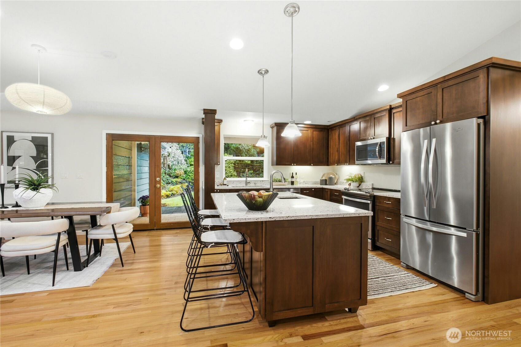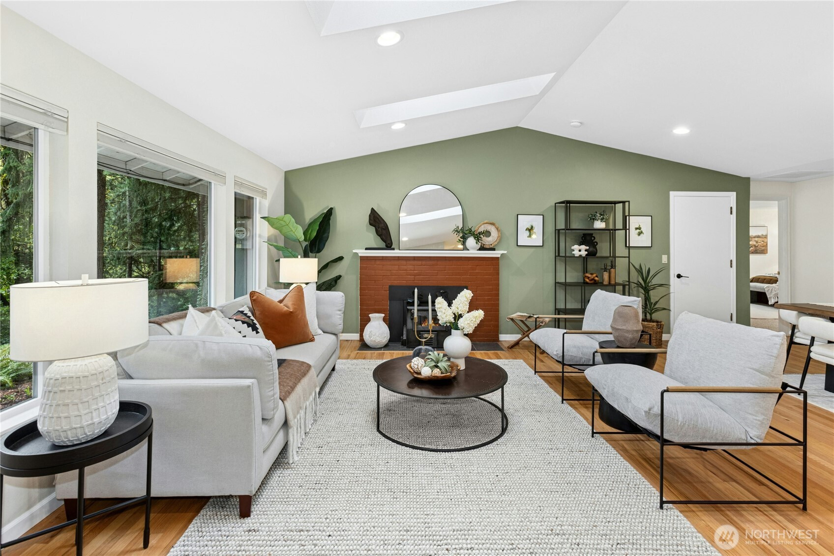 Tucked away on the end of Mt Index Pl, rests this one-of-kind rambler nestled up against a scenic greenbelt with creek below. On nearly half an acre lot offering a rare blend of tranquility, privacy, and refined comfort, this is just a short walk from downtown Issaquah. Vaulted ceilings and skylights bathe the great room in natural light, while French doors open to a serene outdoor sanctuary overlooking a peaceful creek. Rich oak hardwood floors extend throughout the main living spaces, complemented by a thoughtfully updated kitchen with open great-room design. Unwind under the covered patio in your private hot tub, or gather around the cozy wood stove on cooler evenings. Designed for easy living, the home features updated electrical and plumbing (2016), a newer 10 year old roof, and a 3-year-old HVAC system with an energy-efficient electric heat pump for year-round comfort. Located within the award-winning Issaquah School District, this exceptional property offers the perfect balance of nature, seclusion, style, and convenience. Comes with garden space, oversized 2-car garage and ample parking. 2 minute drive or 5-10 minute walk to Historic Olde Town Issaquah for endless events, shops and dining! Live the dream!