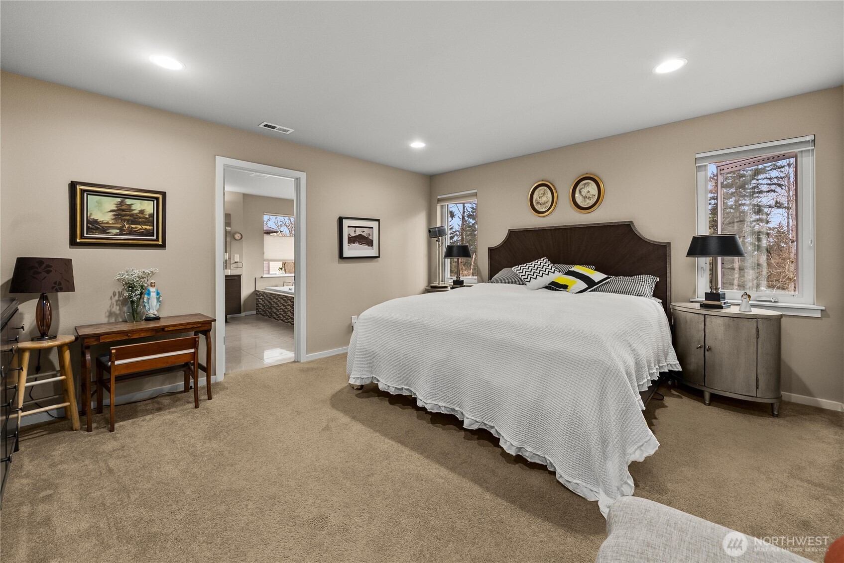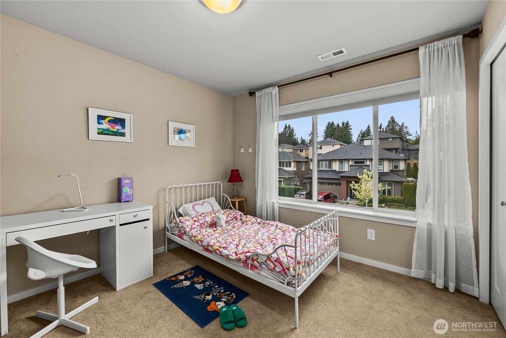 Beautifully designed 4 bed,1 office, 2.5 bath, 2,638 sq ft MainVue home featuring a 3-car garage in the sought-after Mountain View community of Auburn. The Alyssa Q2 by MainVue Homes showcases an exceptional layout with oversized windows across the entire back of the home, seamlessly bringing the outdoors in with serene views of mature trees and greenbelt. Enjoy year-round relaxation in the signature Outdoor Room with a cozy fireplace. The kitchen and primary bath feature elegant quartz countertops, complemented by premium stainless steel appliances. The luxurious primary suite offers a spa-like experience with Grohe fixtures throughout. Over $75K in builder upgrades include a grand kitchen island, dramatic 10’ x 8’ glass wall, and a butler’s pantry. Step outside to a truly one-of-a-kind backyard retreat. The current owner has invested over $70K to create a beautifully designed outdoor space, including a custom gazebo, raised vegetable garden beds, and thoughtfully curated landscaping showcasing year-round seasonal beauty. The pathway is enhanced with brick and stonework, along with charming flower beds and a storage shed. This backyard offers a rare, peaceful country-like setting with territorial views, providing both privacy and a unique connection to nature. Ideally located between Hwy 167, Hwy 18, and I-5, this home offers easy commuting in all directions while being just minutes to shopping, dining, and everyday amenities—all within a quiet and peaceful community.