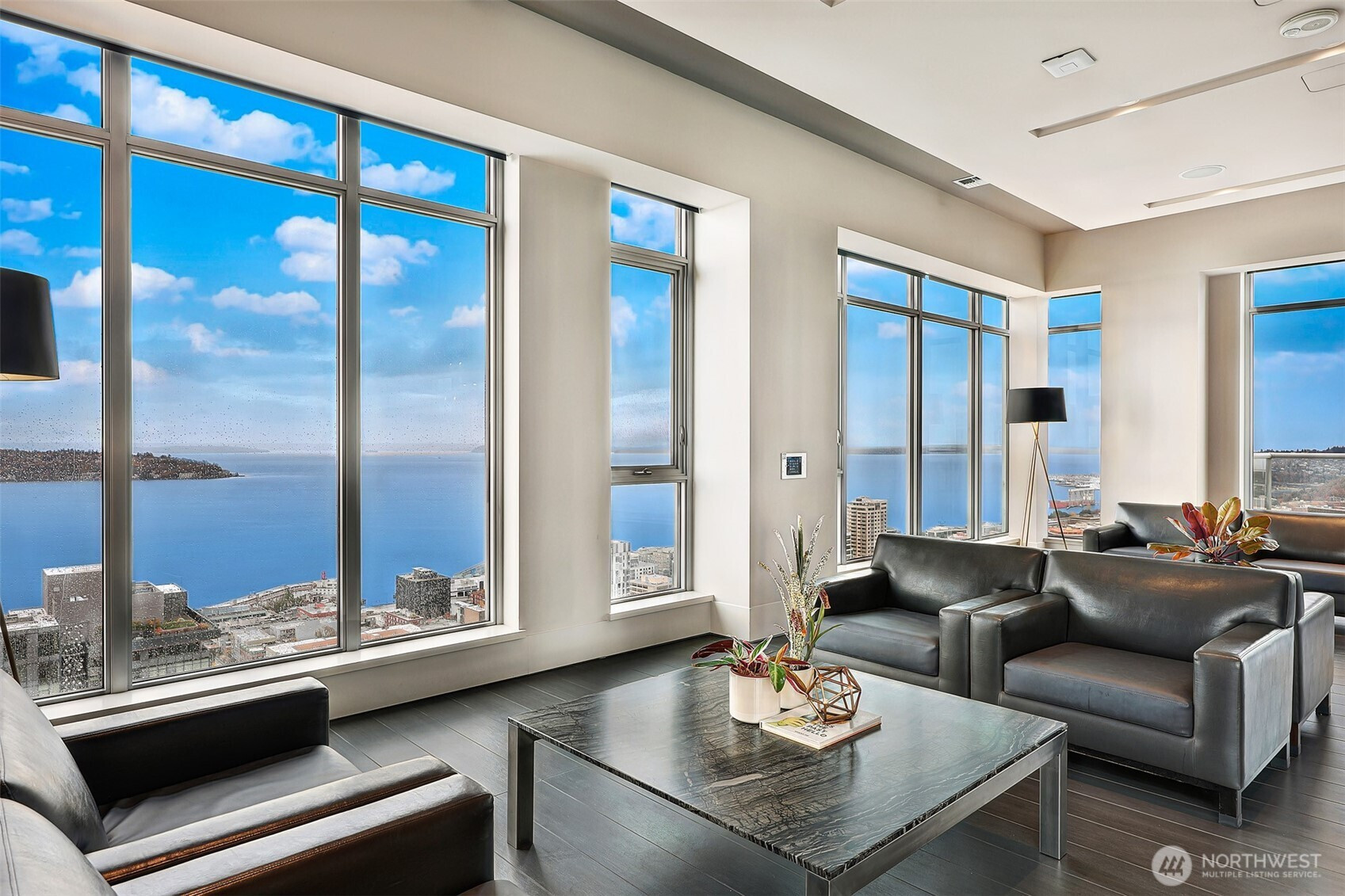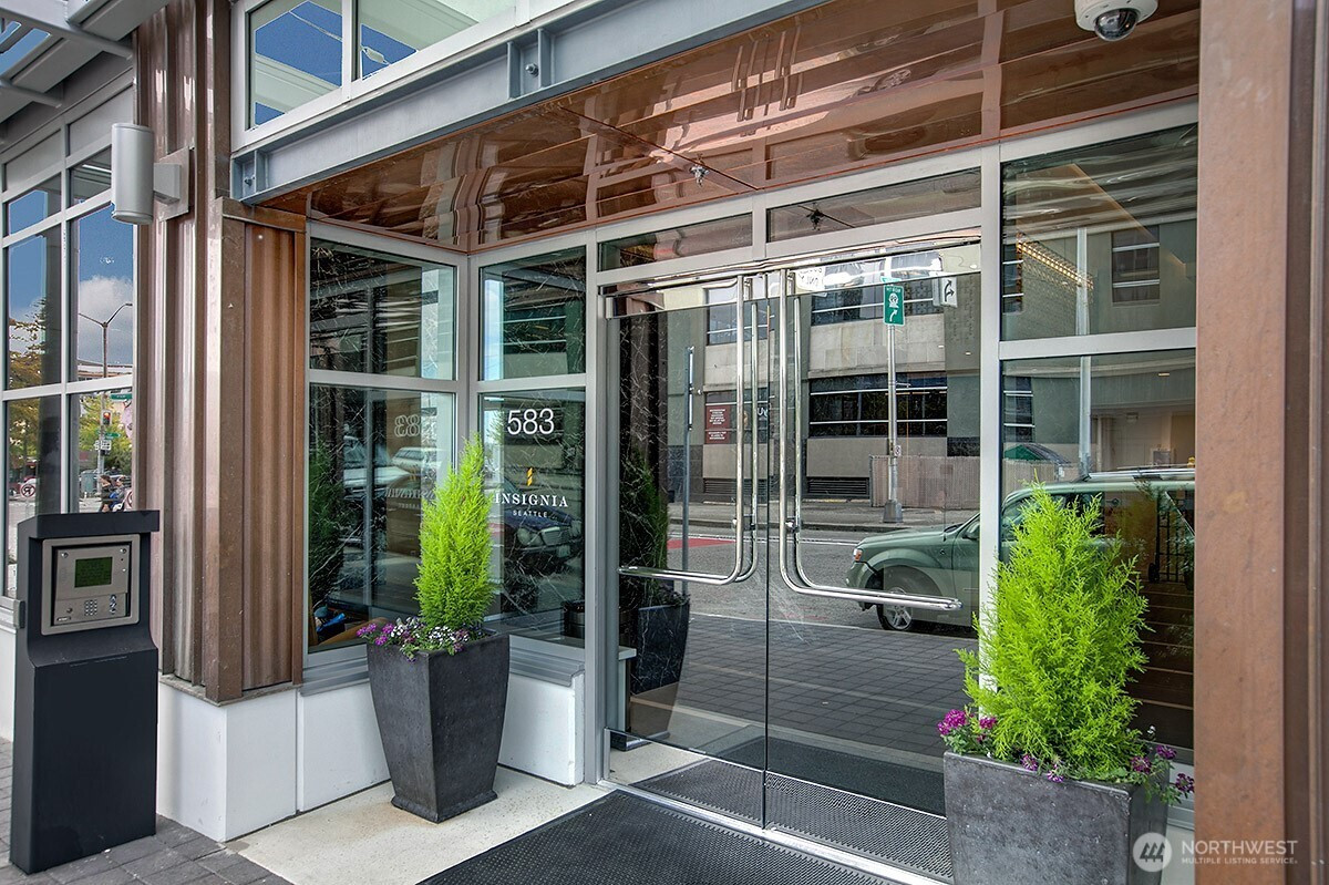 Insignia welcomes you to this beautiful modern high-rise residence w/ spectacular northerly views overlooking the city, Puget Sound & Lk Union. Chef’s kitchen showcases Quartz counters, sleek cabinets, Bosch & Thermador appliances & substantial pantry storage. Open-concept dining & living space lead to a private covered deck. Floor-to-ceiling windows with motorized shades & A/C offer exceptional light, privacy & comfort. Inclusive luxuries incl- 41st-floor Sky Retreat, 24-hour concierge, pool/spa/sauna/steam, yoga/pilates studio, rooftop BBQ terrace, Sky Lounge & private theater, 2-story fitness center, indoor pool/hot tub, pet spa w/ dog run & grooming station, park terrace, plus 2 EV parking spaces w/ storage. No rental cap. Heart of SLU!