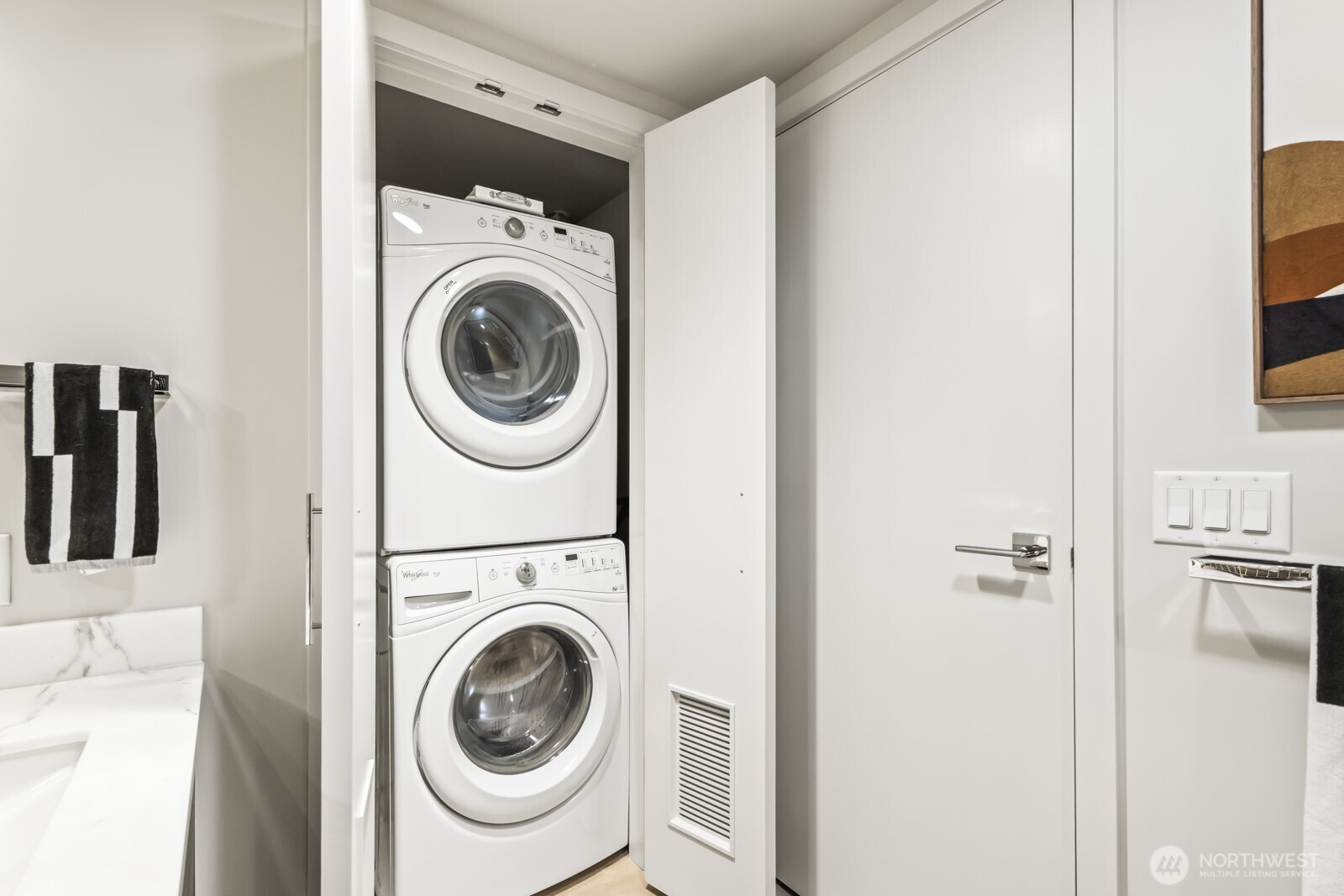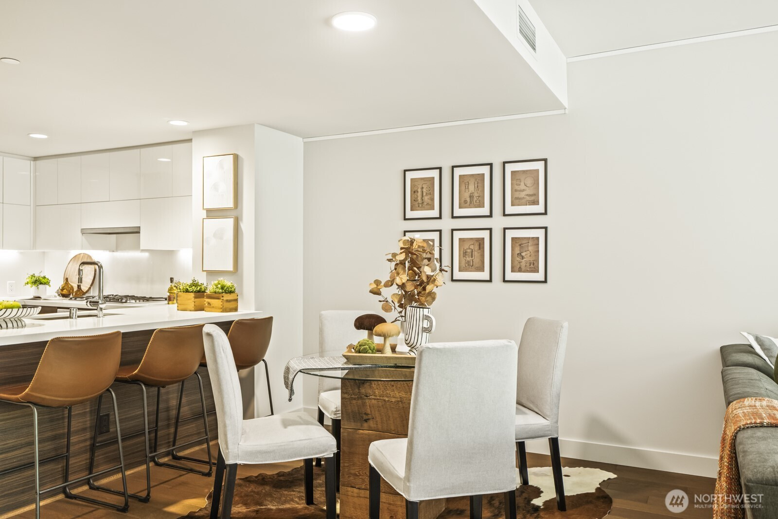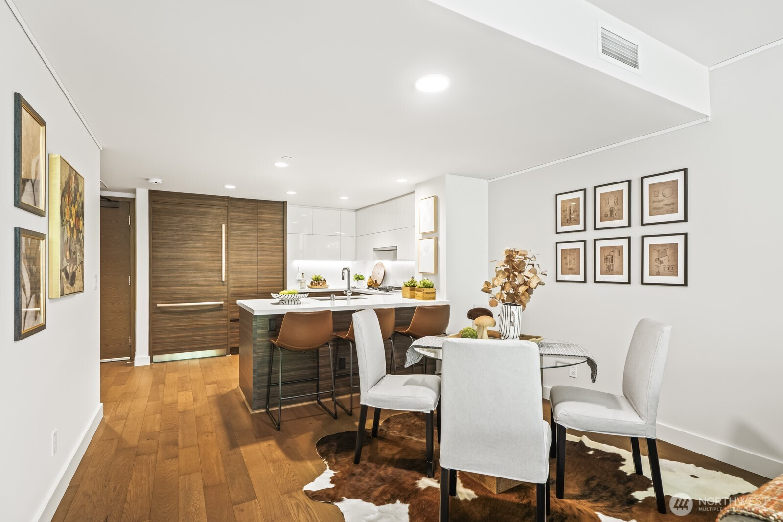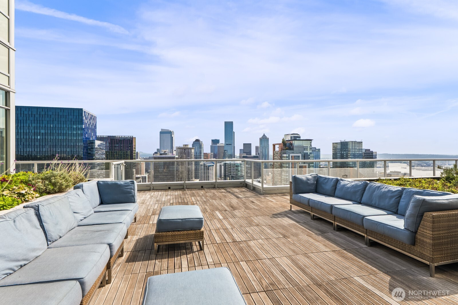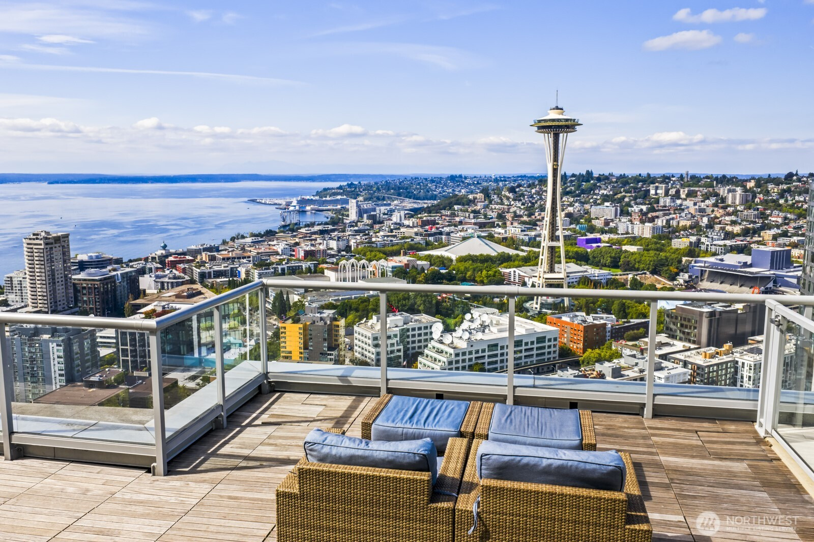 Sleek. Sophisticated. Spacious. Discover luxury living at Insignia, Seattle’s premier high-rise community. This bright 1-bed + den home offers floor-to-ceiling windows that frame sweeping skyline views w/ rooftop decks capturing iconic views of Space Needle, Lake Union & Sound. A modern chef’s kitchen w/ quartz, sleek cabinetry & high end appliances anchor the open living space, where the solar shades & A/C create year-round comfort. The den doubles as an office or guest room while the covered deck extends your living space. Resort-style amenities= 24/7 concierge, rooftop lounges, fitness centers, pool/spa, theater, park & pet retreat. Secure parking + storage. Prime location just steps to S. Lake Union, Belltown & DT dining, shops & parks.