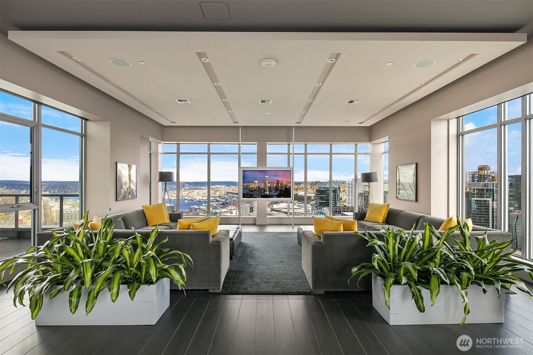 Incredible location, sweeping views, and world-class amenities make Insignia one of Seattle’s most sought-after luxury high-rises! This stylish unit is uniquely located on the same floor as the courtyard/BBQ, fitness center, and theater—an exceptional lifestyle convenience. Floor-to-ceiling windows, hardwood floors, a sleek kitchen with high-end appliances, and a versatile office/flex space ideal for guests or work-from-home needs! Enjoy Space Needle fireworks from your private balcony or head to the 41st floor Sky Lounge for panoramic Sound views and DT skyline. Resort-style amenities: 2-story gym, lap pool, spa/sauna, pet wash, 24hr-concierge, car wash, parking & storage, no rental cap. Walk to everything - urban living at its finest!