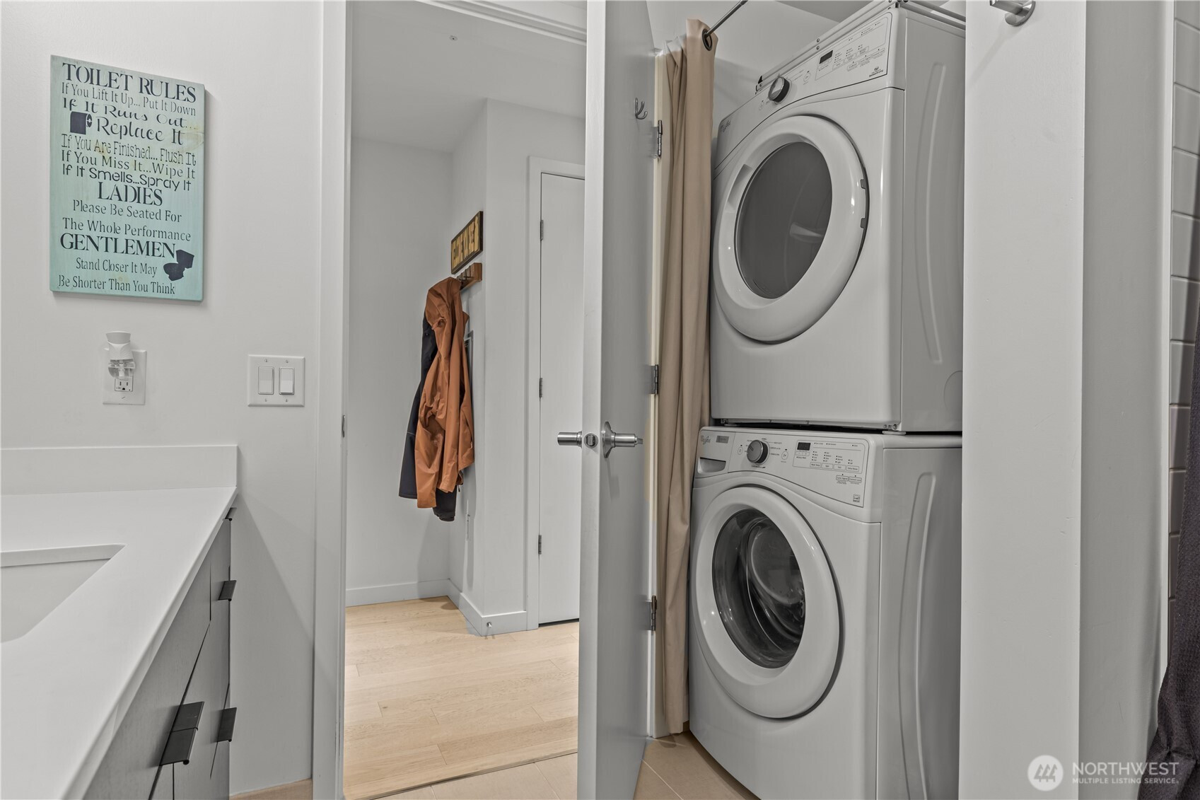 Welcome to the Gridiron Building in Seattle's vibrant Stadium District! Modern open-concept living with soaring vaulted ceilings, quartz counters, stainless appliances & sleek finishes throughout. Oversized bedroom easily fits king bed + home office, huge walk-in closet. Spacious bathroom with full sized washer and dryer. Roll down shades and A/C. Resort-style amenities: rooftop deck w/ party kitchen, grills, wine lockers & epic views, plus 24hr fitness center. Pet area and pet wash. 93 Walk Score! Steps to Pioneer Square, light rail, stadiums, waterfront, restaurants & transit. Secured parking + extra storage included.