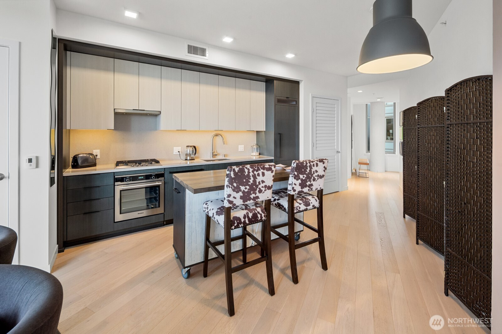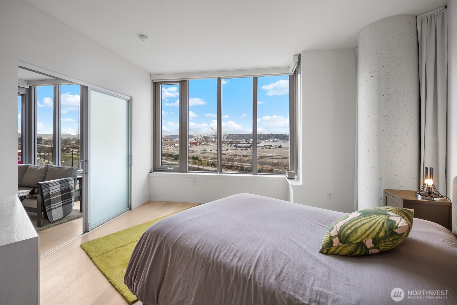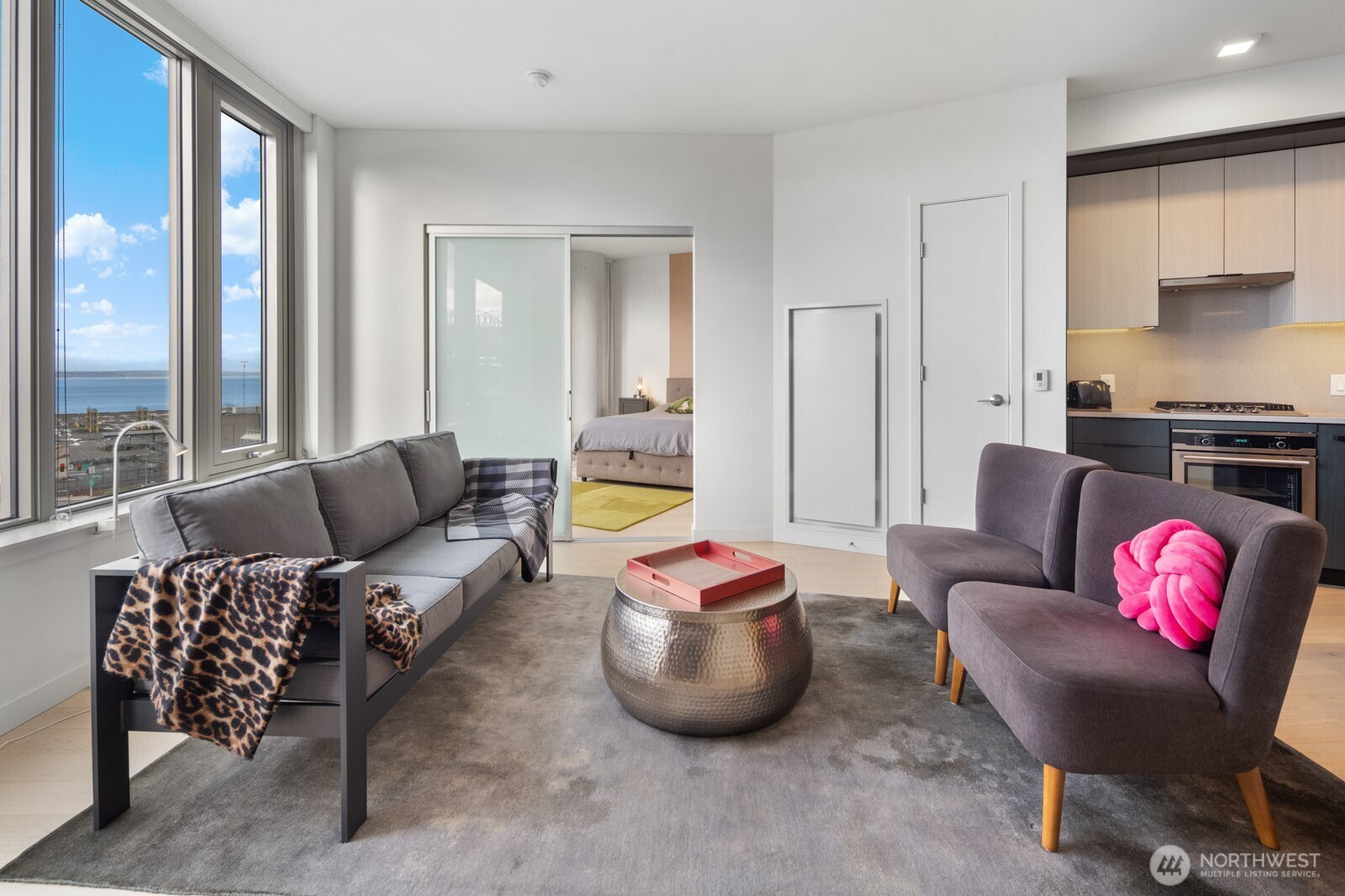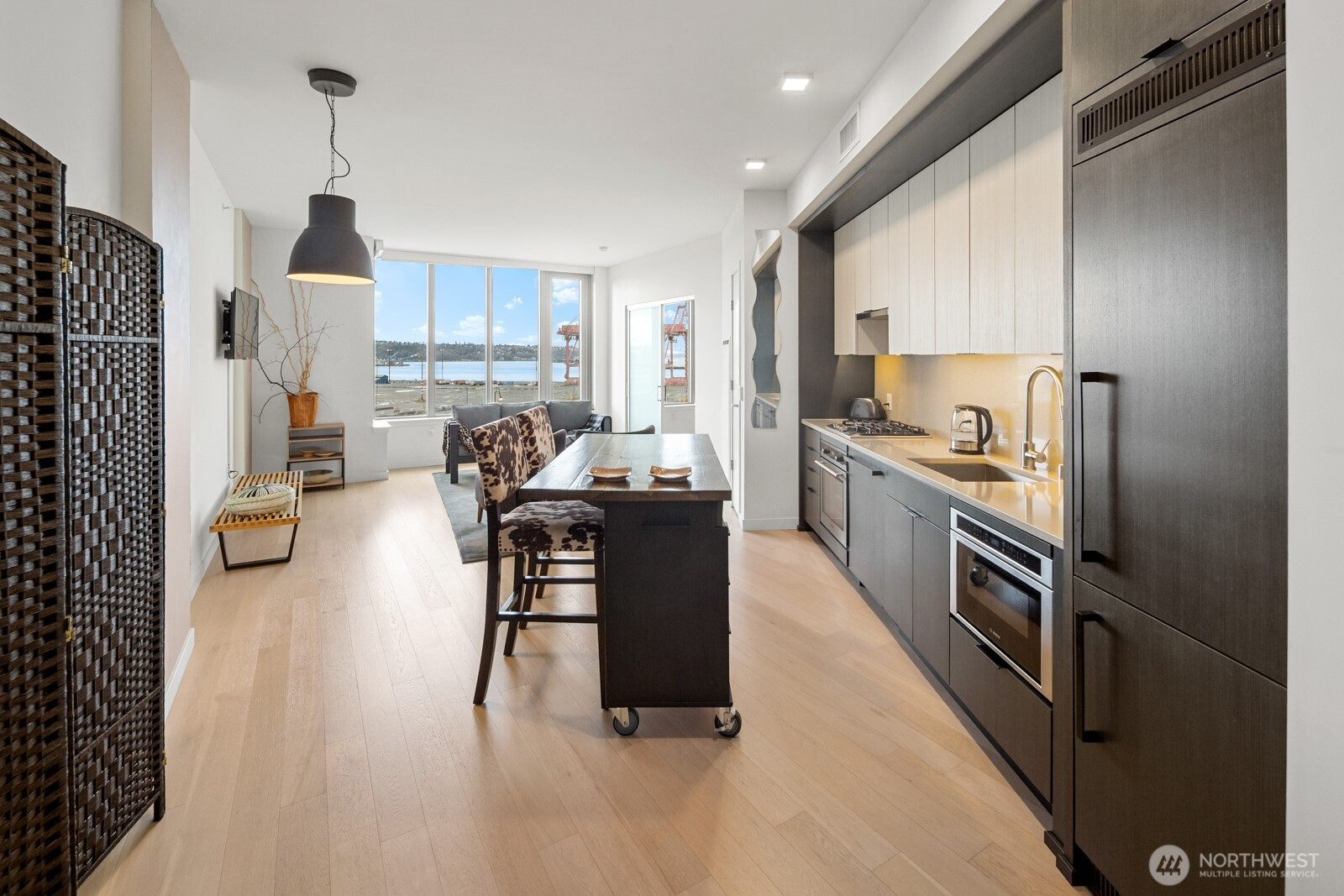GRIDIRON pairs contemporary living with Pioneer Square character, set atop one of Seattle’s iconic brick landmarks, anchored by an on-site restaurant. High above, this corner 1BR/1BA offers 9' ceilings and is designed for effortless flow. Enter to a modern kitchen opening to dining + living, then loop through the bedroom to in-unit laundry and a spa-like bath with oversized shower. Large windows frame Pier 46, Elliott Bay, and the Olympic Mountains. Enjoy central A/C and 24/7 concierge service. Top-floor amenities include wine locker + lounge, fitness, a pet area, and a wraparound deck with entertaining areas, BBQs, and night views of the skyline and Great Wheel. Plus a pet wash station on the 4th floor. Steps to Lumen Field and T-Mobile Park, and a home base for FIFA World Cup 26. At the hub of Seattle transit with Link Light Rail, Sounder, Amtrak, and the downtown bus corridor close by. Seattle’s revitalized waterfront is minutes away. Don’t miss this Pioneer Square home base at Gridiron.