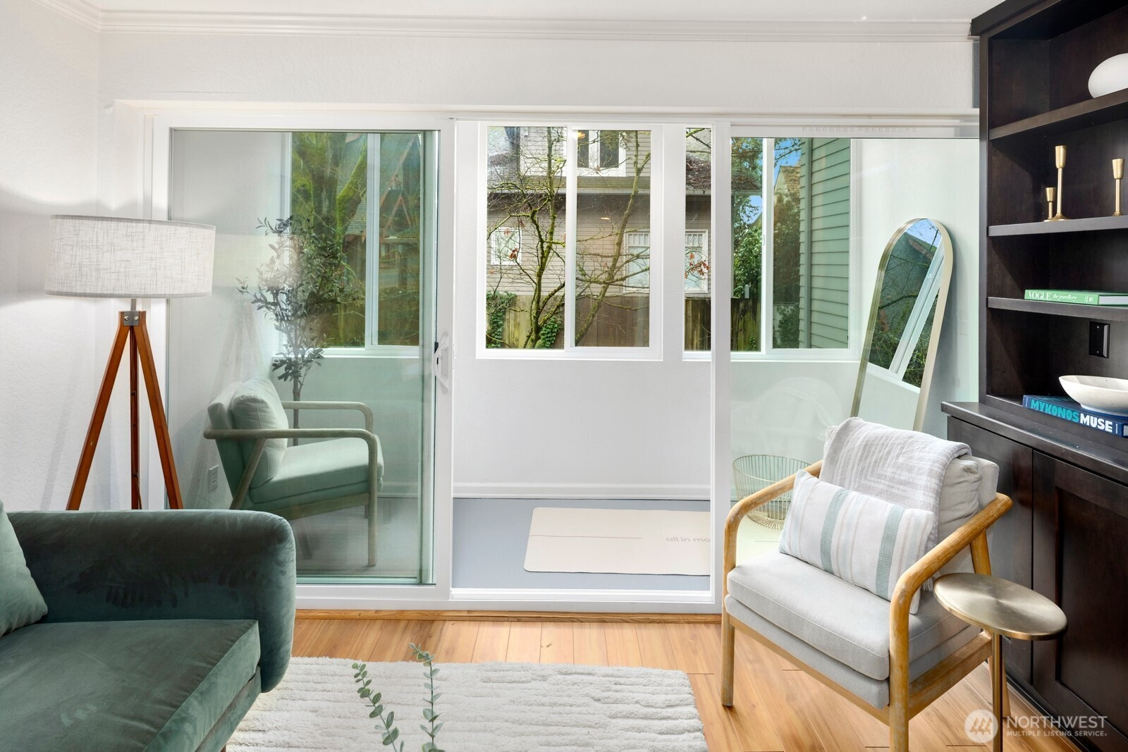 Located where Phinney Ridge meets Green Lake, this cozy two-bedroom condo offers an ideal home base for enjoying the best of Seattle living. Two generously sized bedrooms each feature their own en-suite bathroom, while a large, dedicated dining area flows into the updated kitchen. The cozy living room is anchored by a wood-burning fireplace and built-in shelving, with sliding doors opening to a bonus sunroom—perfect for a home office, reading nook, or flexible extra living space. Facing the west side of the building, the home enjoys a quiet, peaceful setting away from street noise. The home is part of a well-run, pet-friendly building with no rental cap. Includes 1 dedicated parking space & storage. Move in ready with fresh paint & carpet. Steps from Woodland Park Zoo, Green Lake, and a lively mix of bars and restaurants. A commuter’s dream with downtown just 10 minutes away via Hwy 99 and quick access to I-5, making this one of Seattle’s most central and convenient locations!