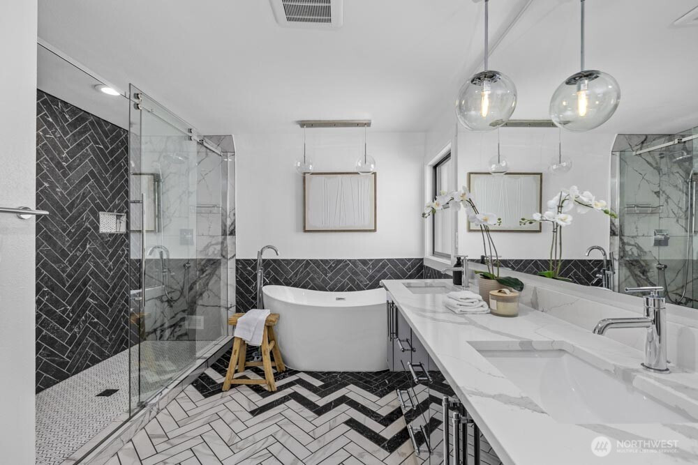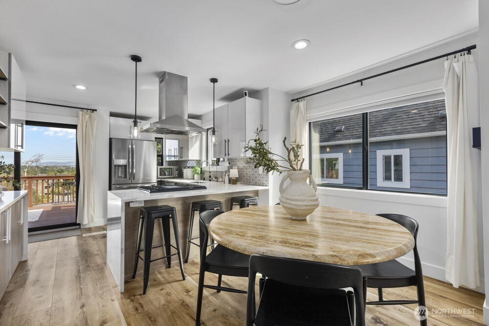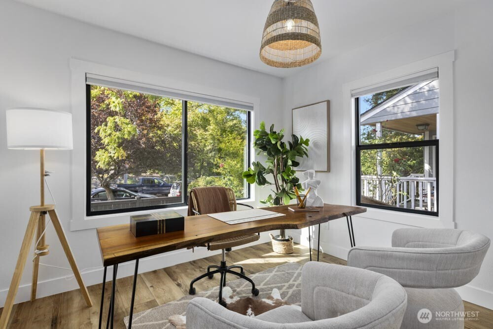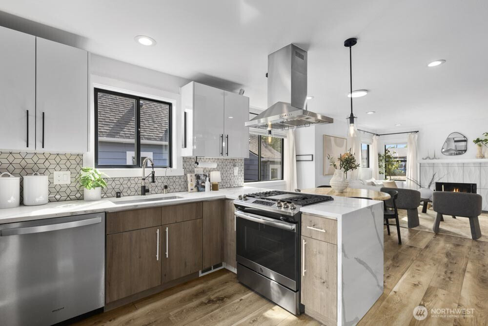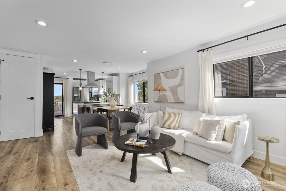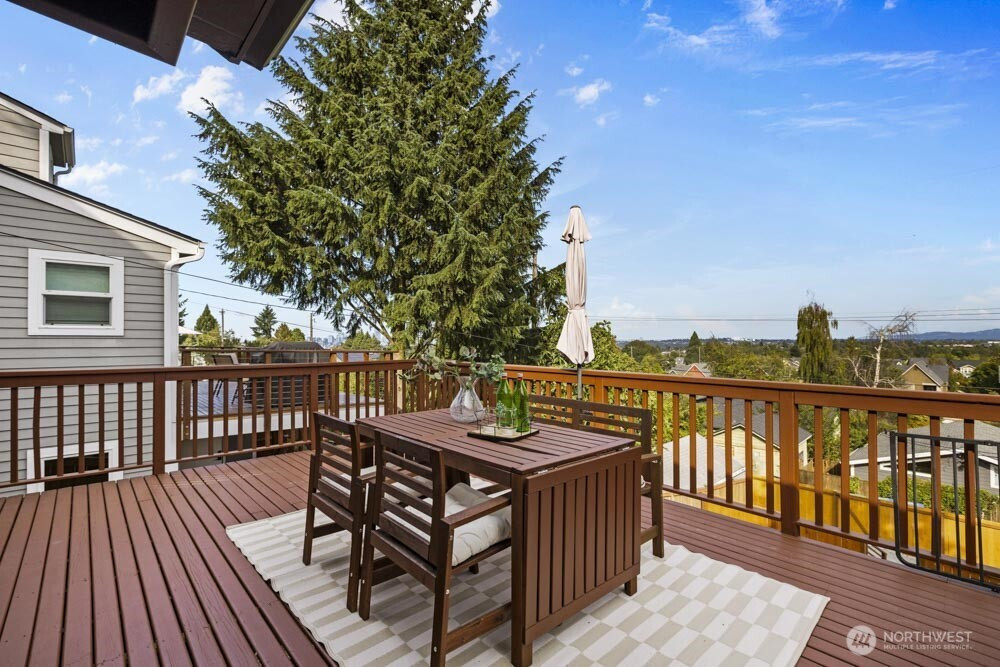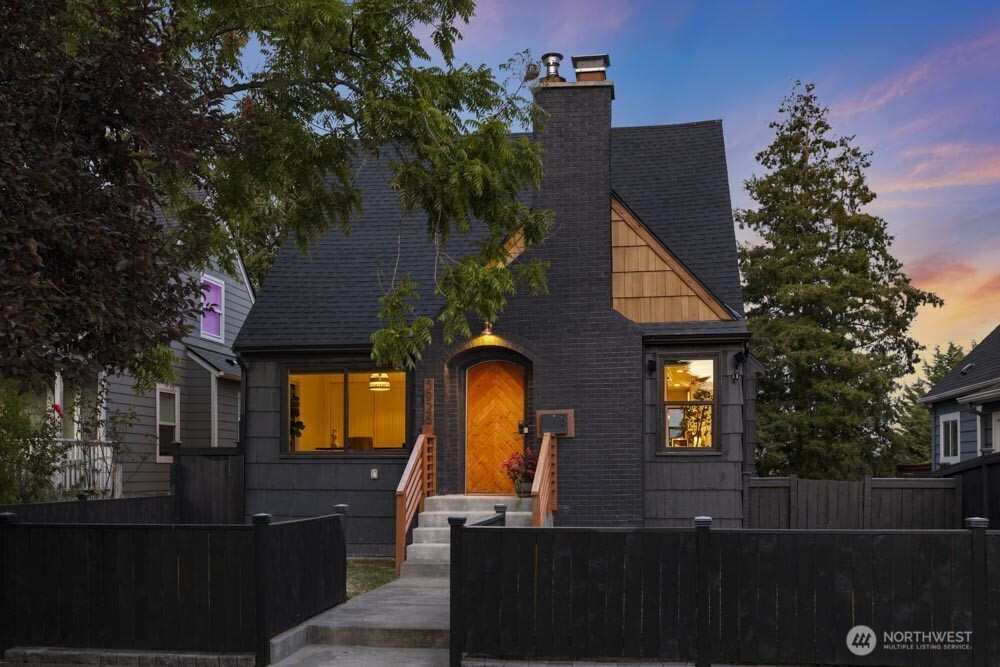 Classic Tudor character meets modern comfort in this renovated West Seattle home. Enjoy Seattle skyline and Cascade views from the deck, then retreat to the primary suite with a spa-inspired bath. The open layout is ideal for entertaining or relaxing, anchored by a wood-burning fireplace. Updates include a new furnace + A/C, fresh paint and lighting, enhanced landscaping, and a refinished deck. The finished lower level with private entrance, kitchen, ¾ bath, bedroom, and large living space offers countless opportunities. Moments from California Ave’s farmers market, cafés, shops, dining, Alki Beach & Lincoln Park. Two fenced parking spaces and a generous garden-ready yard complete the home. 4th bed is non-conforming. This could be the one!