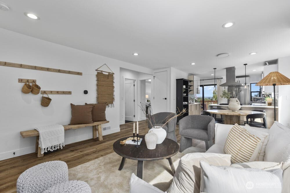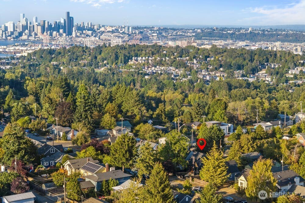 Sellers offering $20k credit! This renovated West Seattle Tudor is all about charm & lifestyle! Soak in the stunning Seattle skyline & Cascade views from your deck or retreat to the bright primary suite with spa-worthy bath. Cozy fires, lively dinners, or lazy Sundays—the wood-burning fireplace & open flow make it all easy. Fresh updates include new furnace/AC, paint, lighting, landscaping, & a refinished deck. The finished basement with its own entrance, kitchen, & bath is perfect for guests or rental income. Head to California Ave for the farmers market, coffee shops, shopping + restaurants, or visit nearby Alki Beach & Lincoln Park for beach days & sunsets. Two fenced parking spots & a huge garden-ready yard. 4th bed is non-conforming.