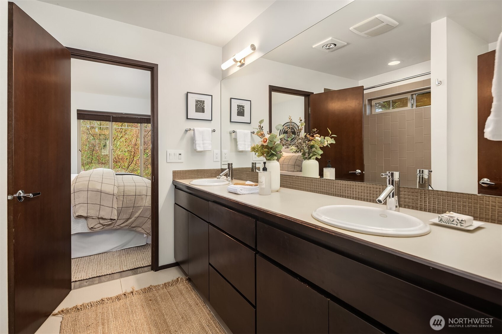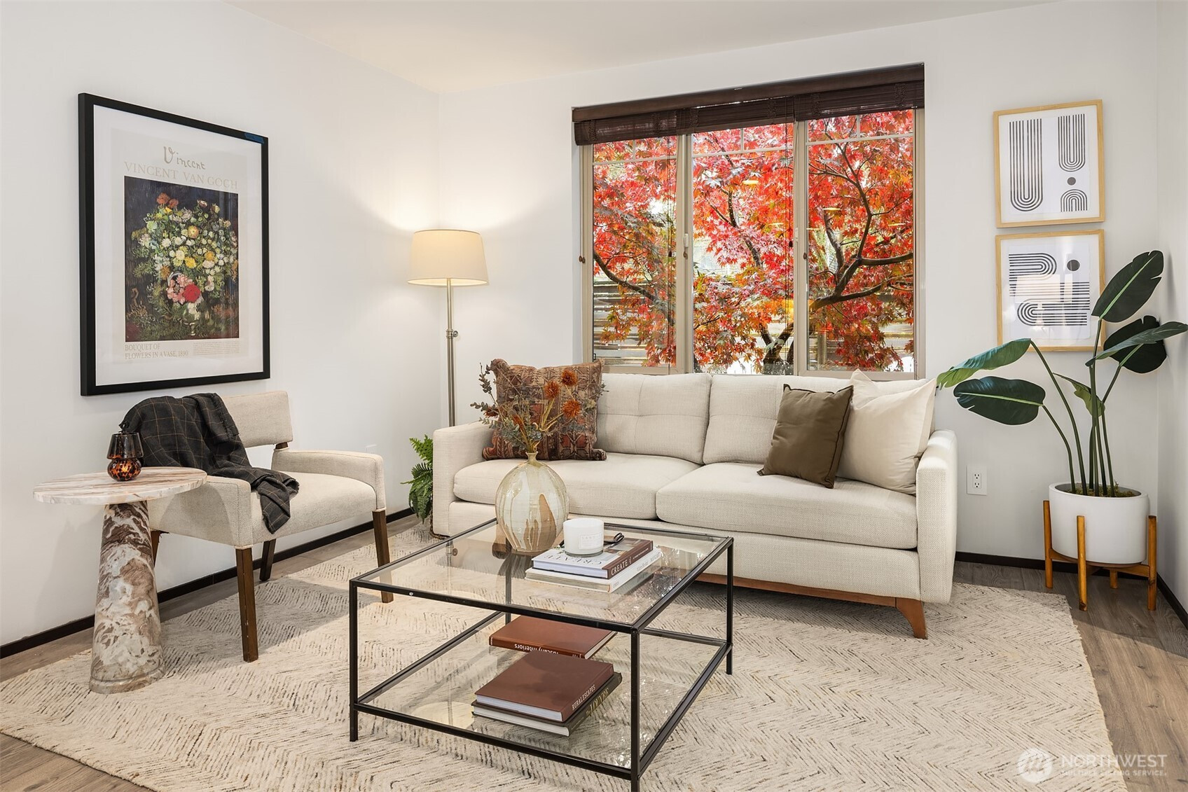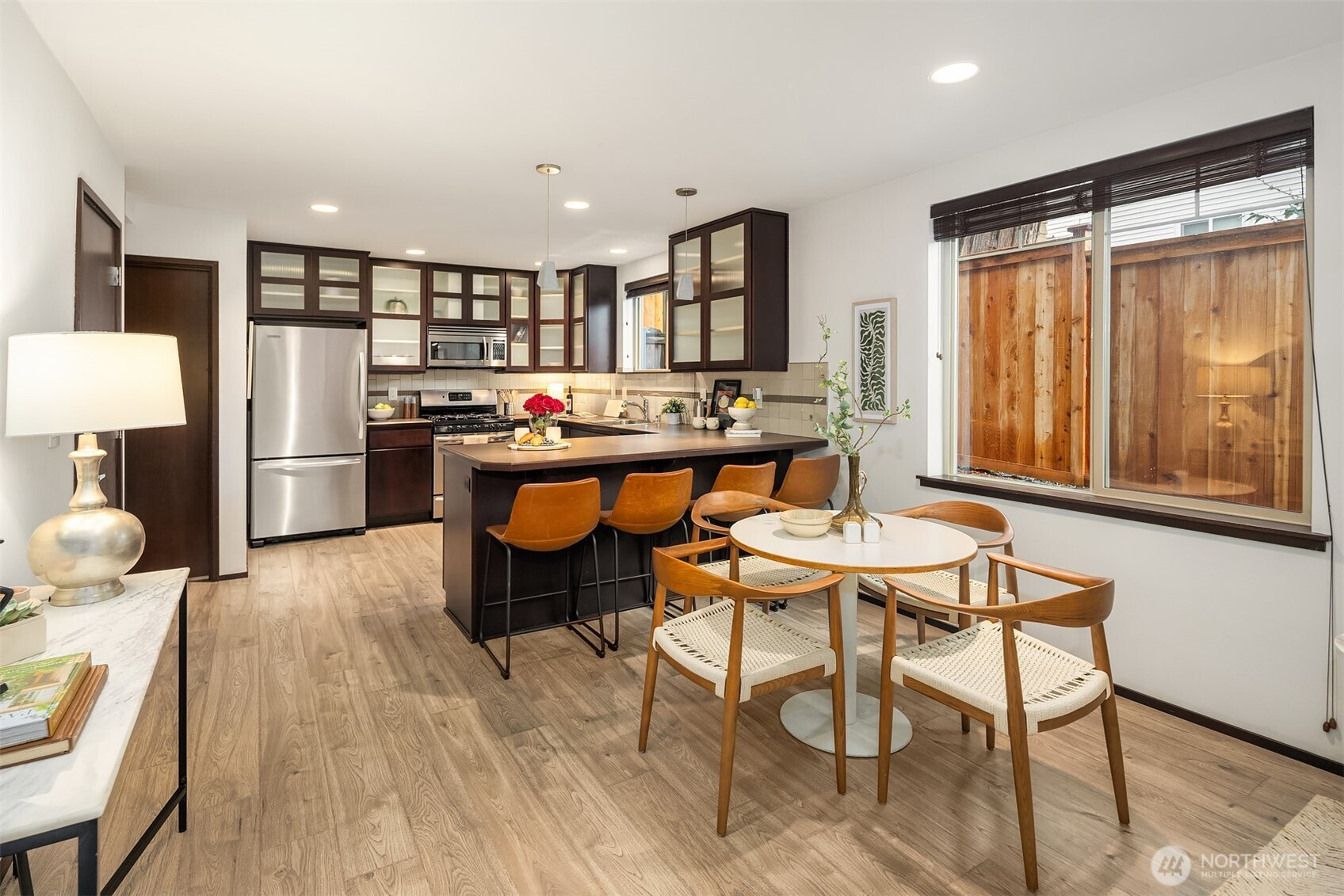 Sleek modern design meets functionality in this thoughtful two-story townhome. A reeded glass entry door opens to light-filled interiors, where a pretty tree frames the window for added privacy. The gourmet kitchen features a natural stone serving bar, high-end appliances & reeded glass cupboards with abundant storage. The open living room is perfect for both relaxation & entertaining. Upstairs, two bedrooms share a full bath & laundry for added convenience. Enjoy excellent privacy, a well-designed layout, off street parking & a private courtyard entry. Recent updates include new flooring, lighting & fencing. Just minutes from the West Seattle Junction, this Fauntleroy home blends scenic tranquility with urban convenience.No HOA fees.