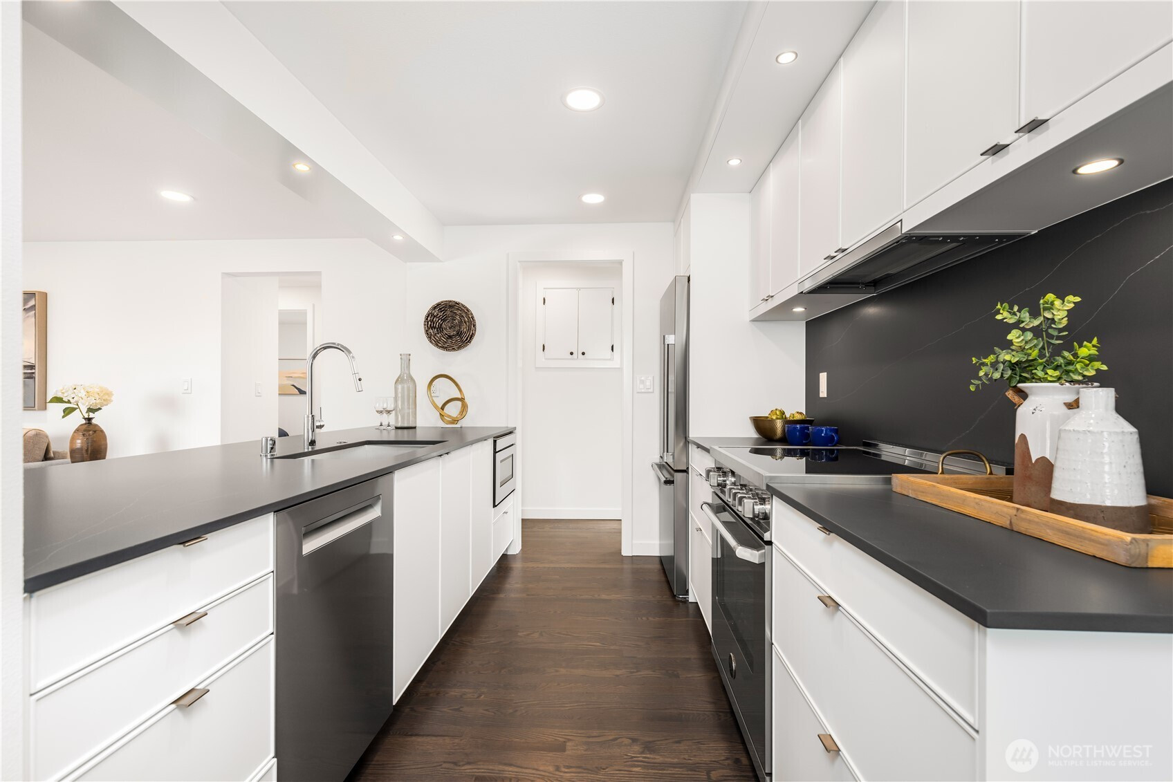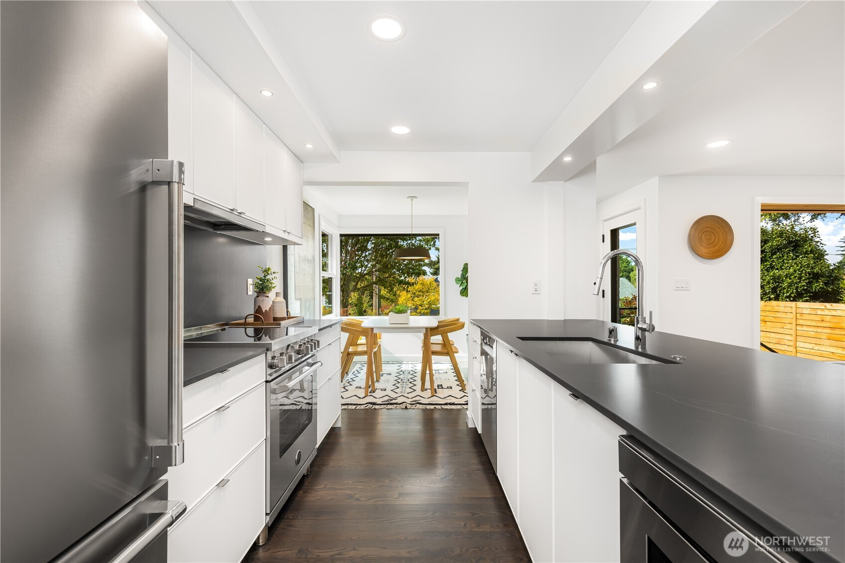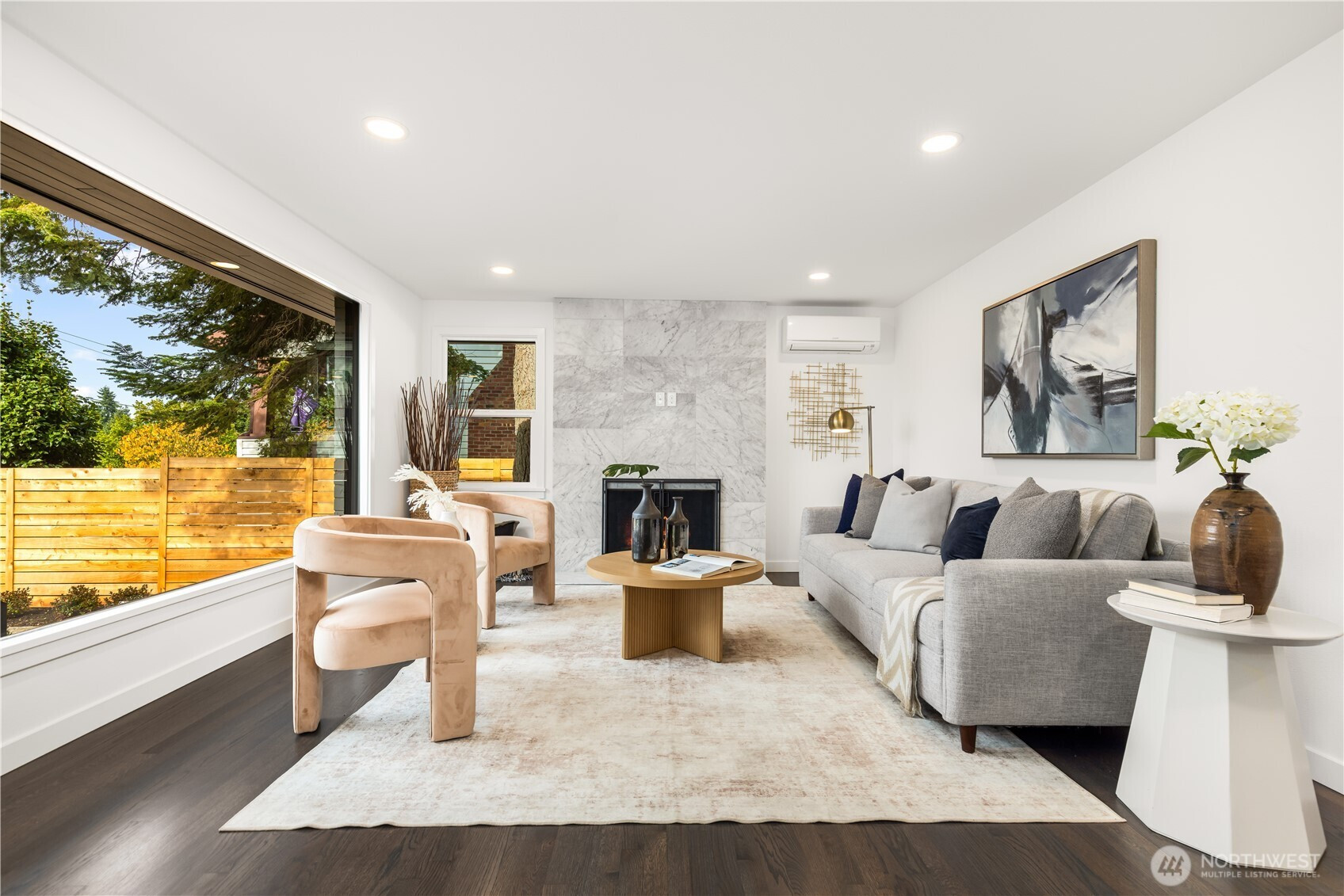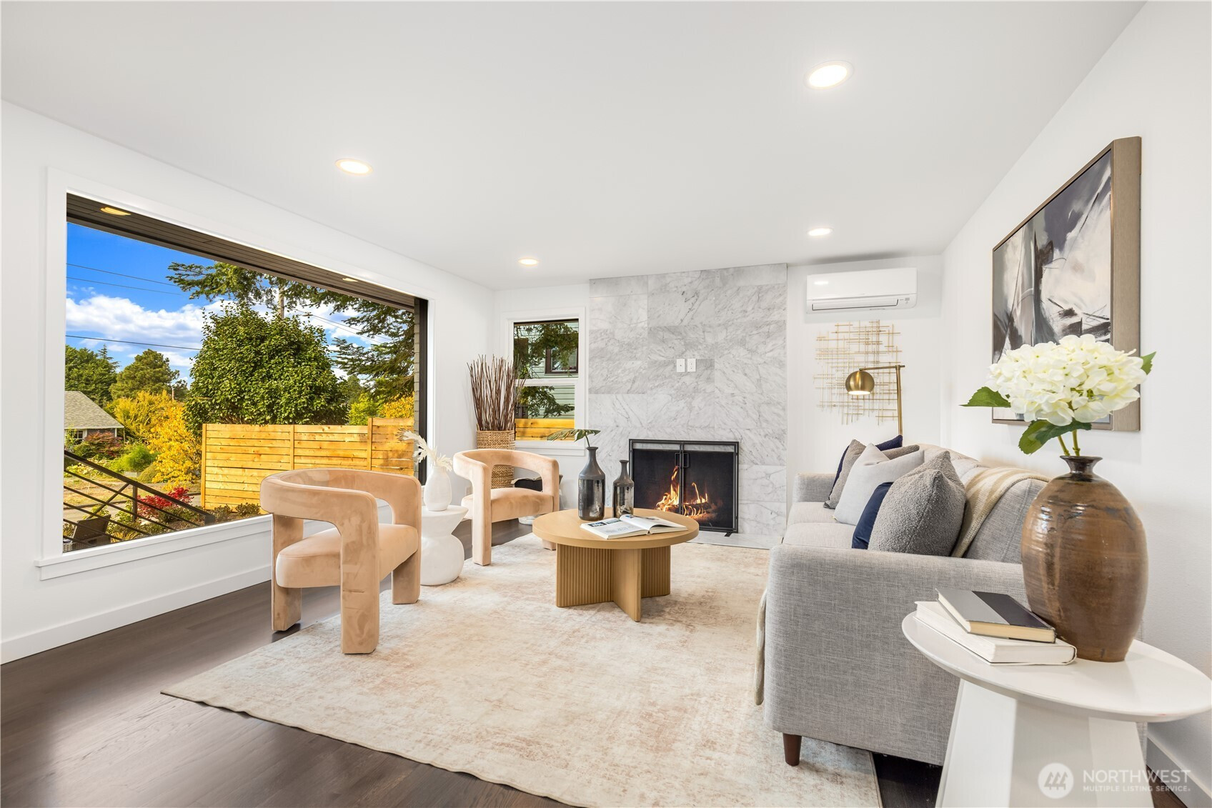 A fresh & sophisticated residence in West Seattle’s Gatewood neighborhood. Every detail modernized with new plumbing, electric, HVAC, roof, windows & siding. The Open, light-filled floor plan showcases graceful living spaces, thoughtful design details, a marble wrapped fireplace & hardwood floors. The primary bedroom features its own fireplace, creating a private retreat. With five bedrooms, this home offers exceptional flexibility for modern living. Two patios extend the living space outdoors. 4.875% buy-down with preferred lender!