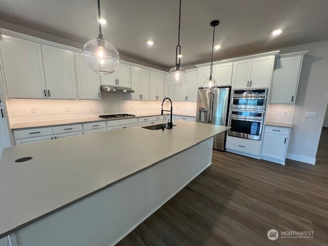 MOTIVATED SELLER- PRICE CUT- 4-CAR Garage PLUS all appliances included! Gorgeous community near the heart of Enumclaw. All one level living with 9-foot ceilings, luxurious primary suite, open concept, island kitchen & ample spaces. This 2333 sft plan is 3 bdrm, 2 bath perfect for storage or flex space. Open chef's kitchen with large island, gas cooktop & pantry. Primary suite with walk-in closet, 5-piece bath including shower with mudset pan, tile surround & frameless barn style doors, dual sinks & free-standing tub. Gas fireplace, spacious laundry w/sink cabinet and uppers for added storage. Covered patio & BBQ stub. All homes feature a Garage Man-Door. Fencing is included! Open Sat-Tues 10-5, Wed 1-5. This plan is very similar to the model home but more spacious. Buyer must register Agent at FIRST visit