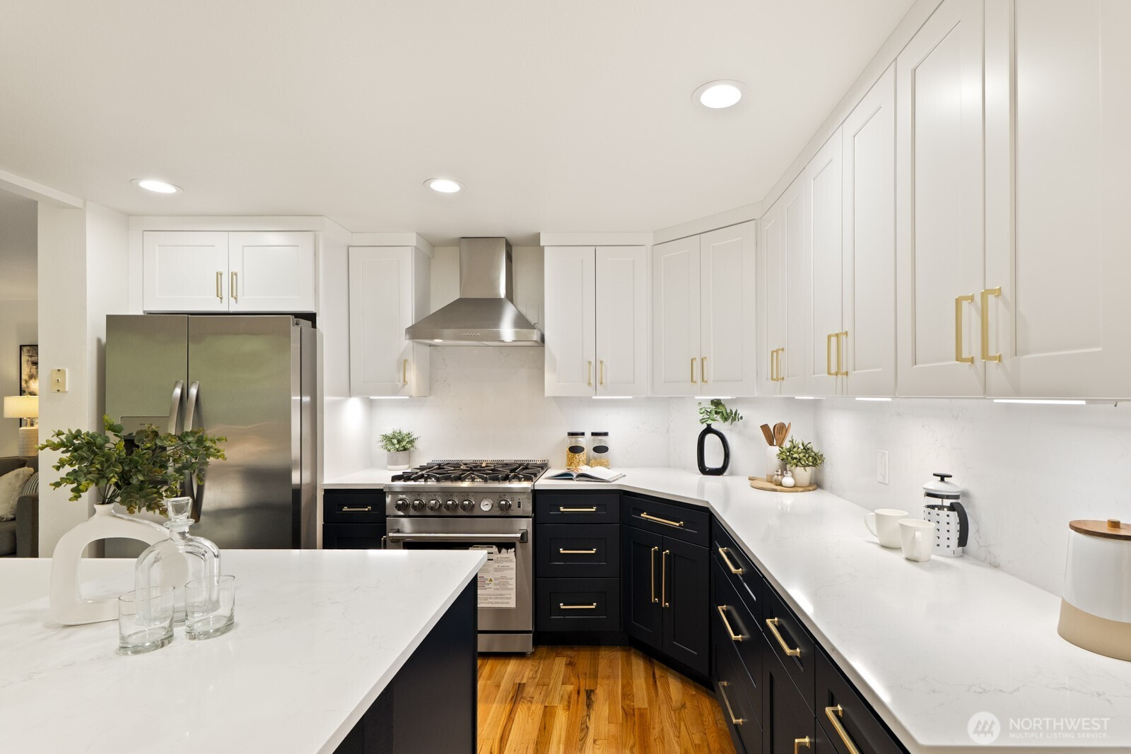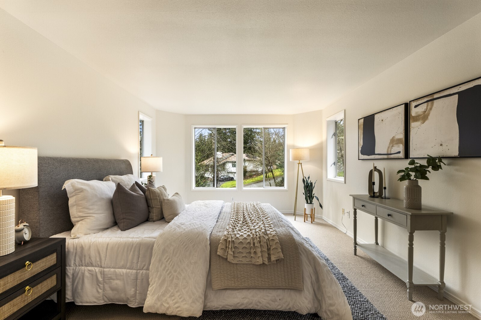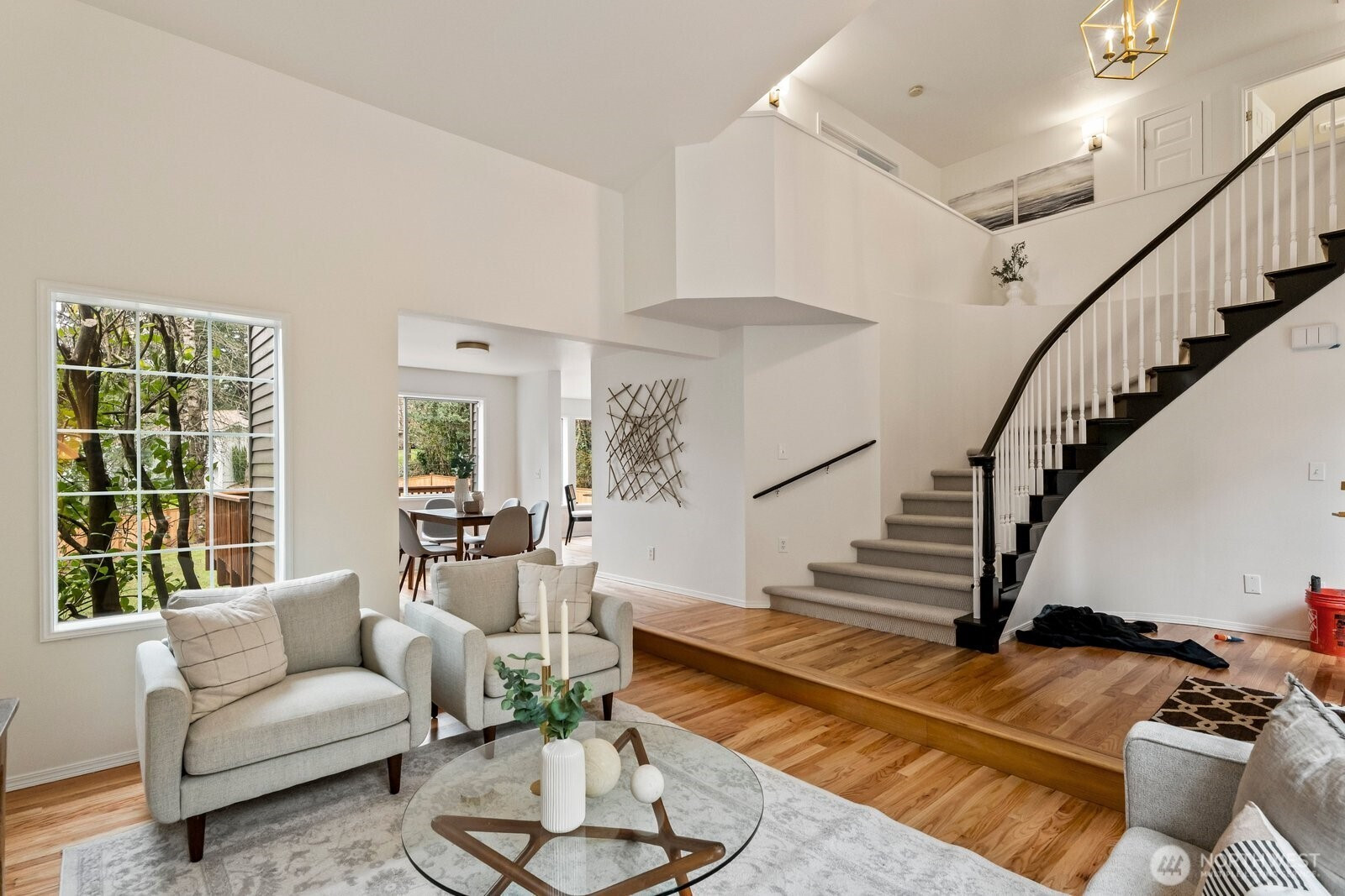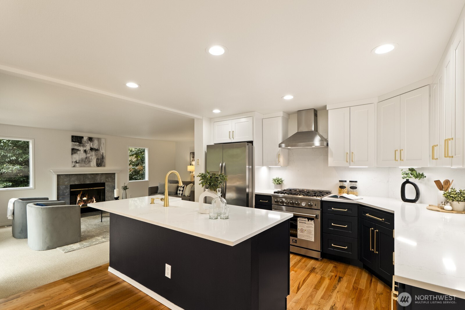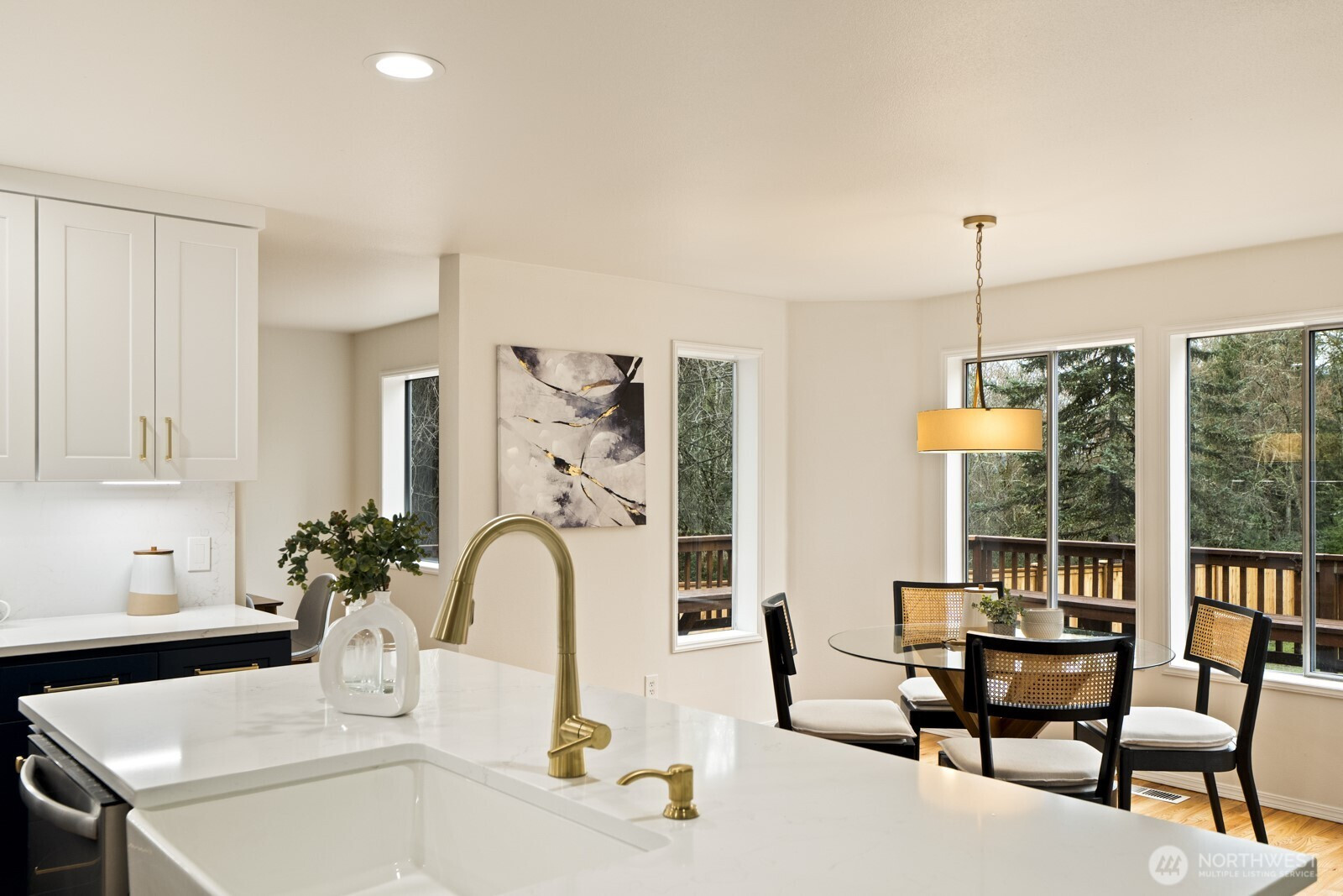 Welcome to a home where comfort, style and everyday convenience come together seamlessly. From the moment you arrive, you’ll appreciate the inviting atmosphere and thoughtful details that make this property truly special from the open living spaces designed for both relaxation and entertaining to the newly remodeled kitchen and bathrooms. Natural light fills the rooms, creating a warm and welcoming ambiance with a layout that flows effortlessly offering the perfect balance of functionality and charm. The new kitchen boasts quartz counters, new cabinetry, island with farm sink, brushed gold fixtures and new gas range with stainless hood to inspire your inner chef. The adjacent family room has a cozy wood burning fireplace and sliding door to the entertaining sized deck; the ideal space for morning coffee, weekend barbecues or simply unwinding at the end of the day. 2 story foyer with bridal stairway leads to the 4 bedrooms that provide peaceful retreats, while the well-appointed bathrooms offer comfort and convenience. The spacious primary suite features an ensuite bath with freestanding tub, designer tiled floor and shower and huge walk-in closet. Ideally located close to great schools, shopping, parks, minutes to Microsoft and Redmond's new transit hub, this home combines tranquility with accessibility. Highlights include new roof, freshly painted exterior and interior, large fully fenced backyard, new carpet, refinished hardwood floors & new lighting & hardware throughout.