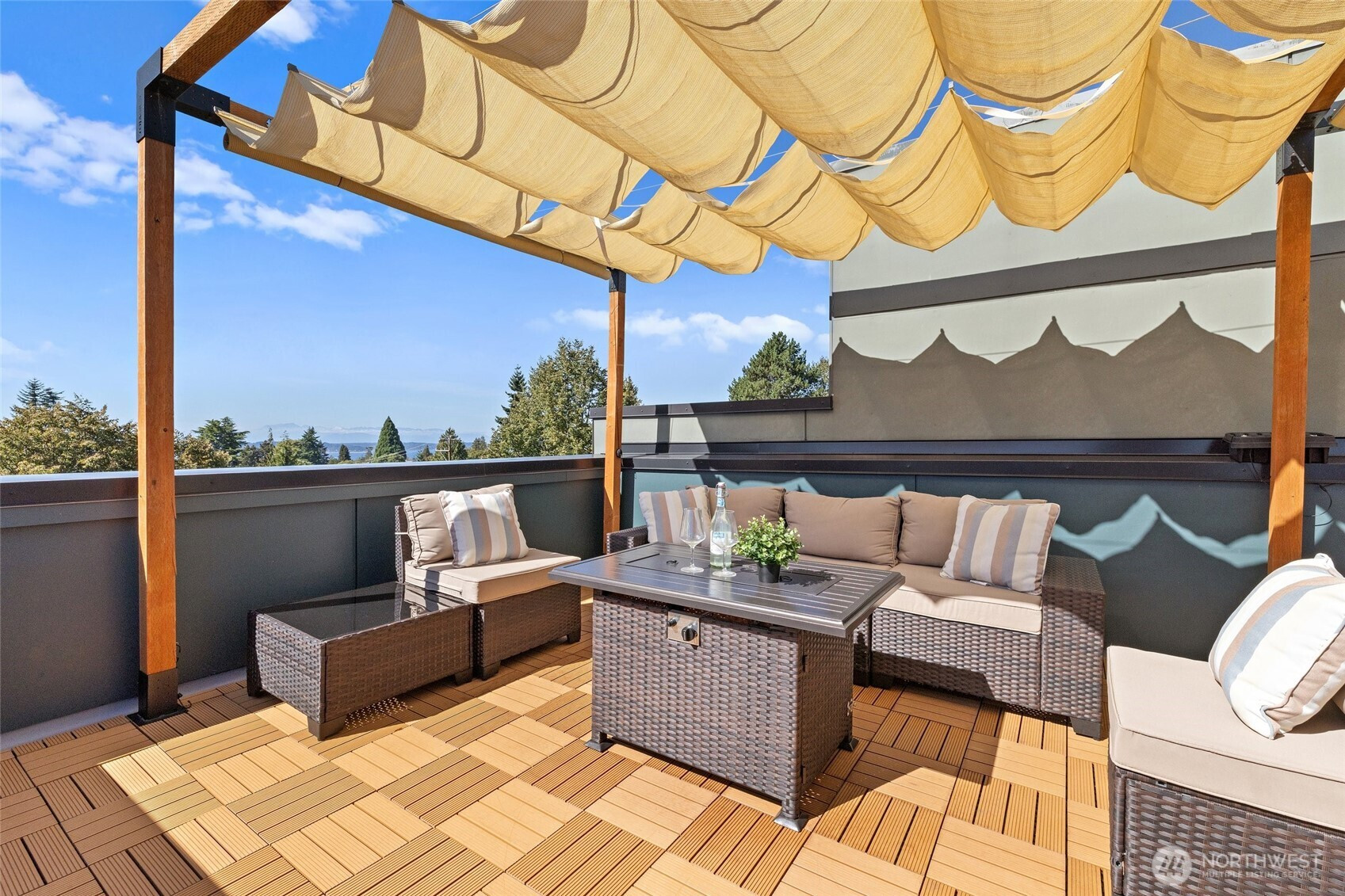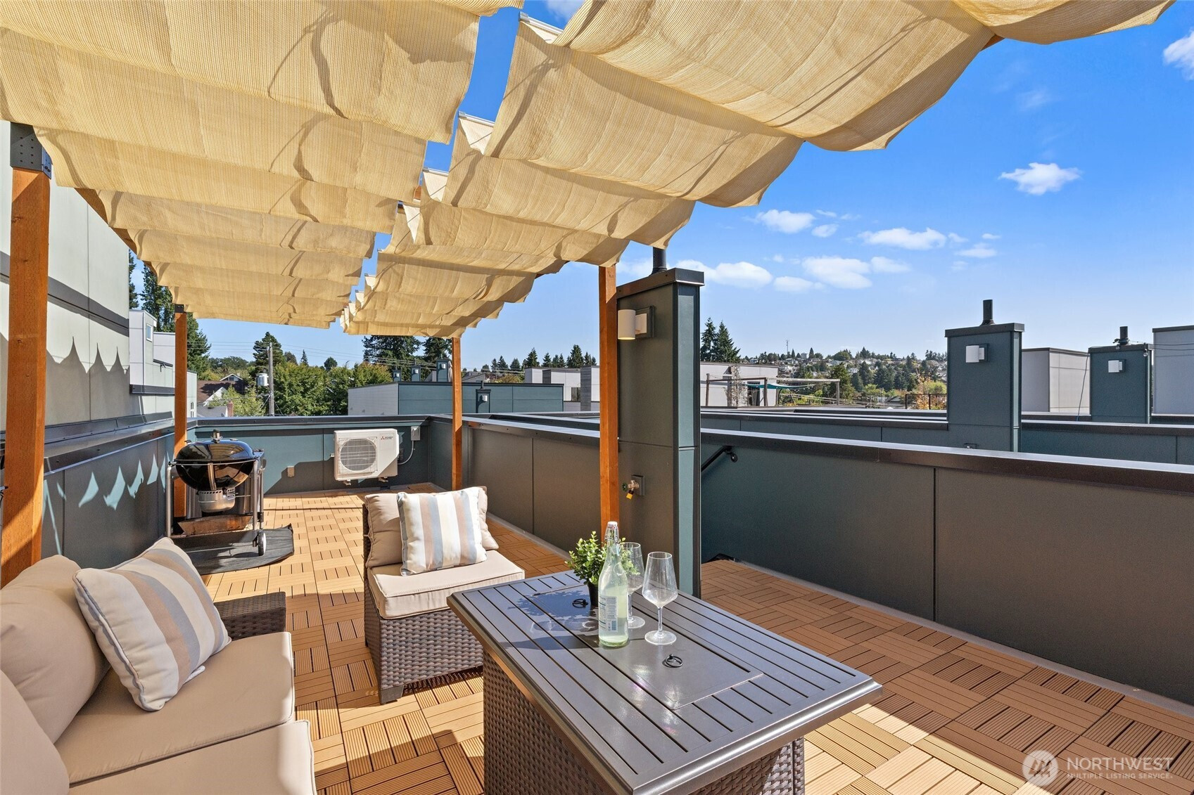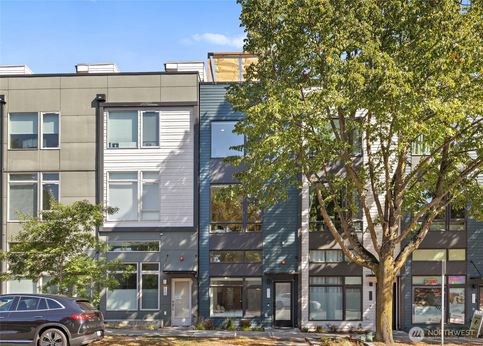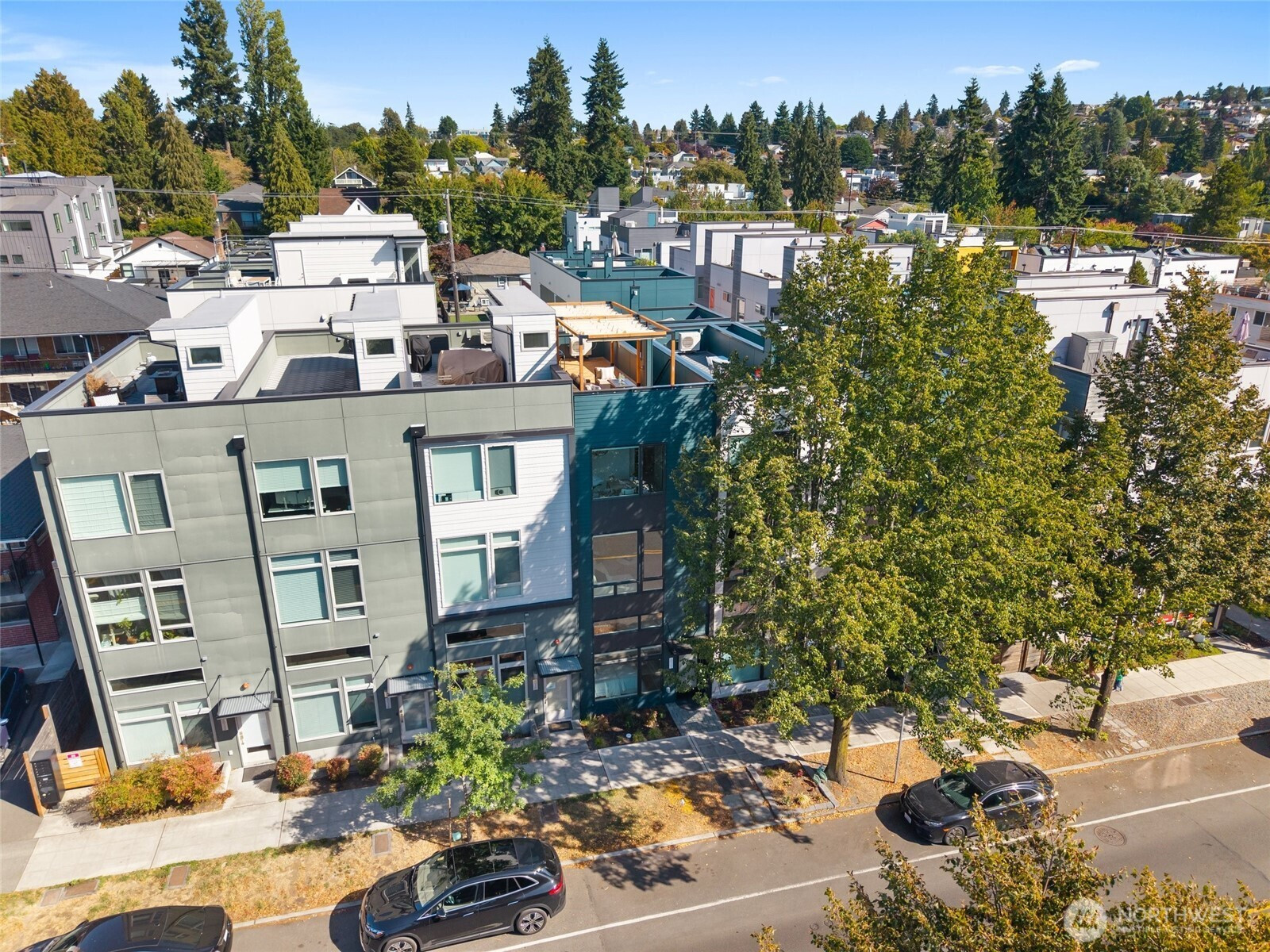 Where Distinction Meets Design in the Heart of West Seattle. A home that stands apart from the ordinary, this single-family residence has no HOA dues, offering 3 bedrooms, soaring ceilings, and walls of natural light. The thoughtful floor plan includes a flex space on the main-level with a dedicated shower, an open-concept great room and gourmet kitchen, plus a primary suite and 3rd BR/office with shower on the upper level. Contemporary upgrades include motorized shades, efficient AC units, and a Level 2 EV charger. Crown your evenings on the rooftop deck with sweeping vistas of the Sound and the Olympics, paired with unparalleled walkability to California Ave's most sought-after amenities. Pre-inspected and move-in ready. Truly noteworthy.