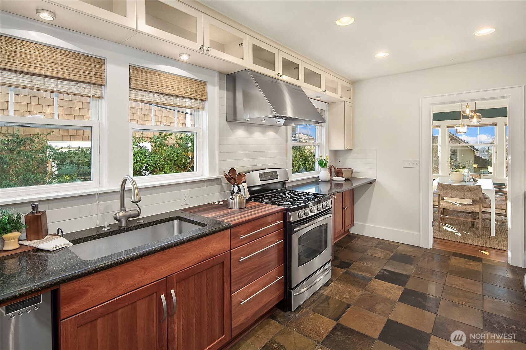 First time on the market in 53 years, this beloved home is ready for its next chapter. Light-filled living with charming period details such as beautiful contrasting inlay hardwood floors & built-in shelving marry with updated lighting for a perfect blend of old world style & modern sensibilities. The updated kitchen features ss appliances, new tile backsplash & French door leading to an outdoor oasis. Two bedrooms on the main level + bath offer easy main-floor living, while three additional rooms upstairs offer space for all. Enjoy mountain & sound views & lots of storage! Downstairs, you’ll find a spacious rec & bonus room, bath, laundry, & dedicated shop space...ideal for hobbies, workouts, or movie nights. Outside find a peaceful water feature + covered pergola for easy entertaining & relaxation. Mature landscaping surrounds home with herbs, flowers, & plants to be enjoyed year round. Covered carport parking with EV charger all set up. New carpet & fresh paint adds a crisp update, & major systems have been taken care of with newer furnace & hot water tank. Stay cool all summer with A/C & enjoy the benefits of solar panels for energy efficiency year-round. Perfectly located blocks from neighborhood favs such as Bambinos, Mainstay & Tin Hat. Head up the hill to explore charming shops & cafes on Phinney Ridge. Just minutes from Green Lake & Woodland Park Zoo. With an easy commute to Downtown Seattle or SLU, you’re perfectly positioned for both work and play!