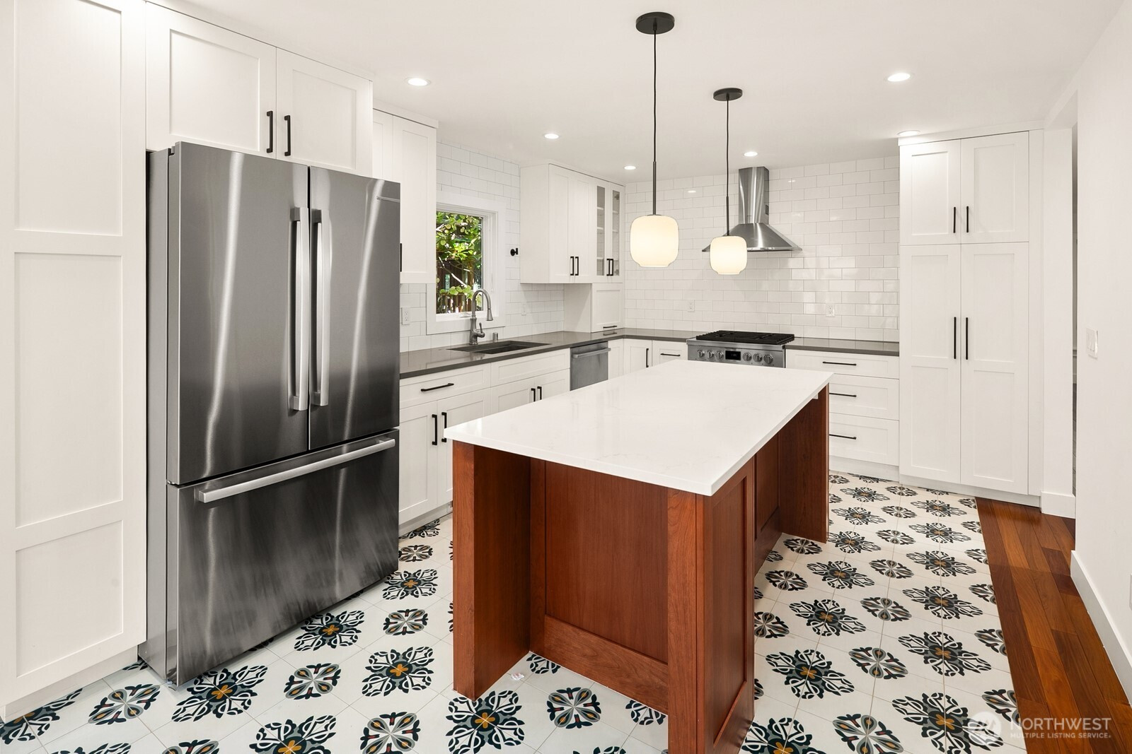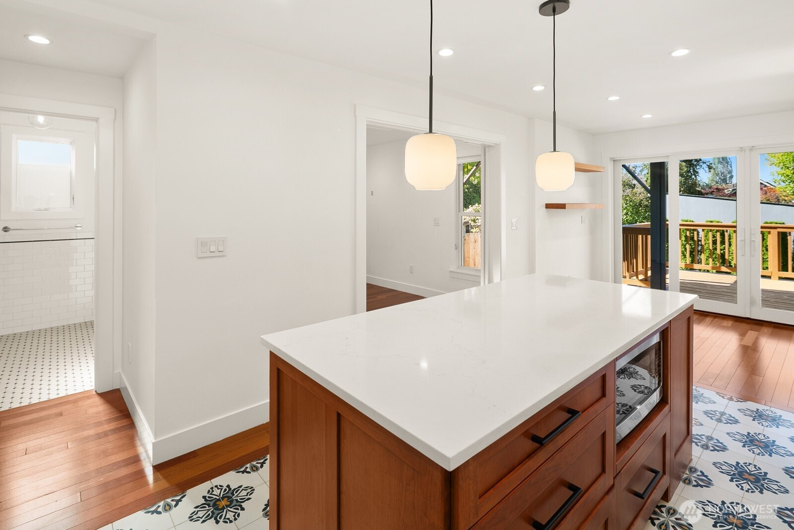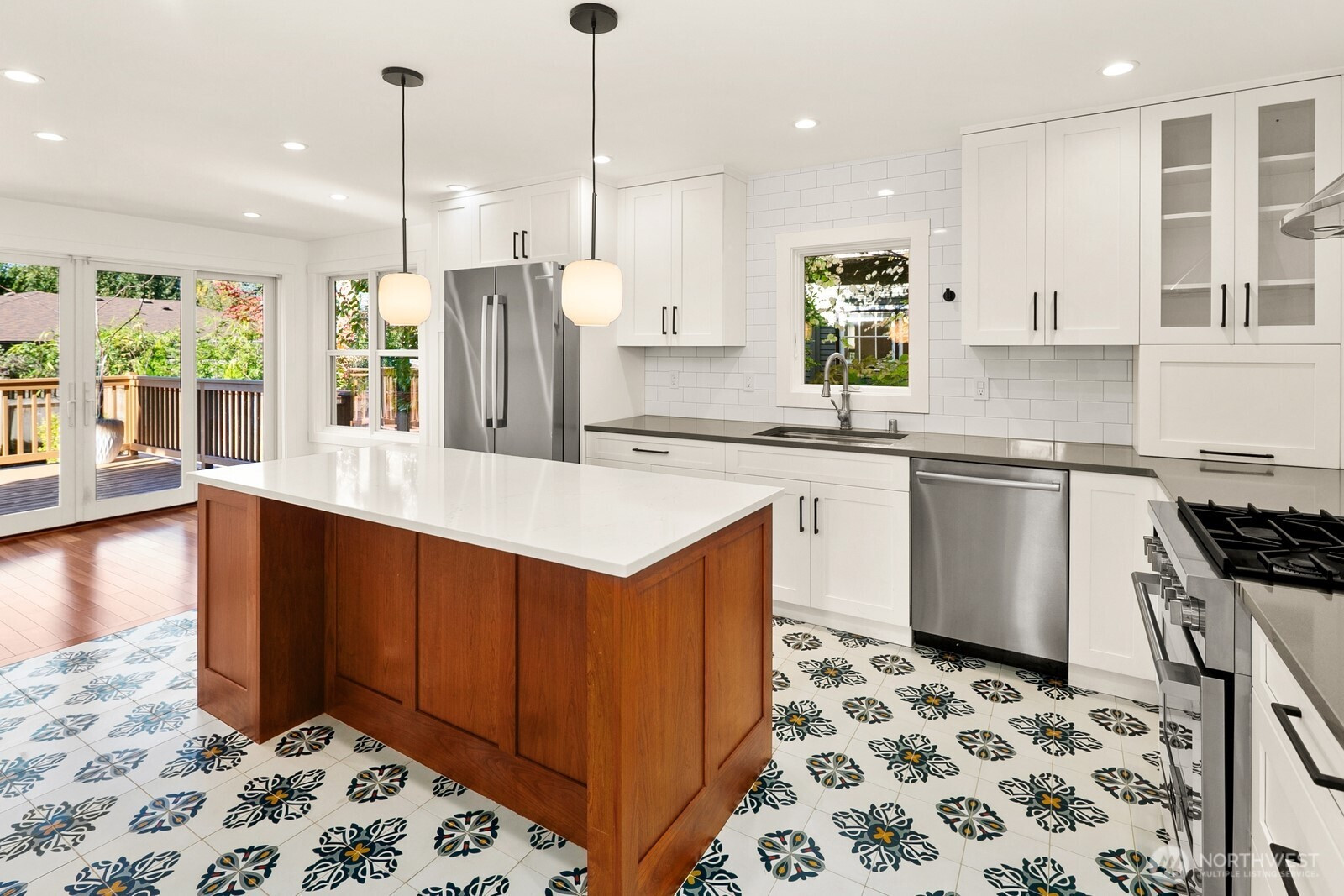 Experience the perfect blend of classic charm and modern living in this beautifully remodeled Ballard Craftsman. Ideally located on a quiet street near the heart of downtown Ballard, this home welcomes you with engineered hardwood floors, skylights, and an open, light-filled layout. The kitchen opens onto a sunny deck, creating seamless indoor/outdoor living for entertaining or relaxation. Upstairs, the primary suite features a walk-in closet, a beautifully tiled shower, and a covered deck. The unfinished basement provides ample storage space. Outside, enjoy a fully fenced yard and garden. Close to Ballard’s parks, shops, restaurants and public transit, this timeless home combines craftsmanship, comfort and convenience in an ideal location.