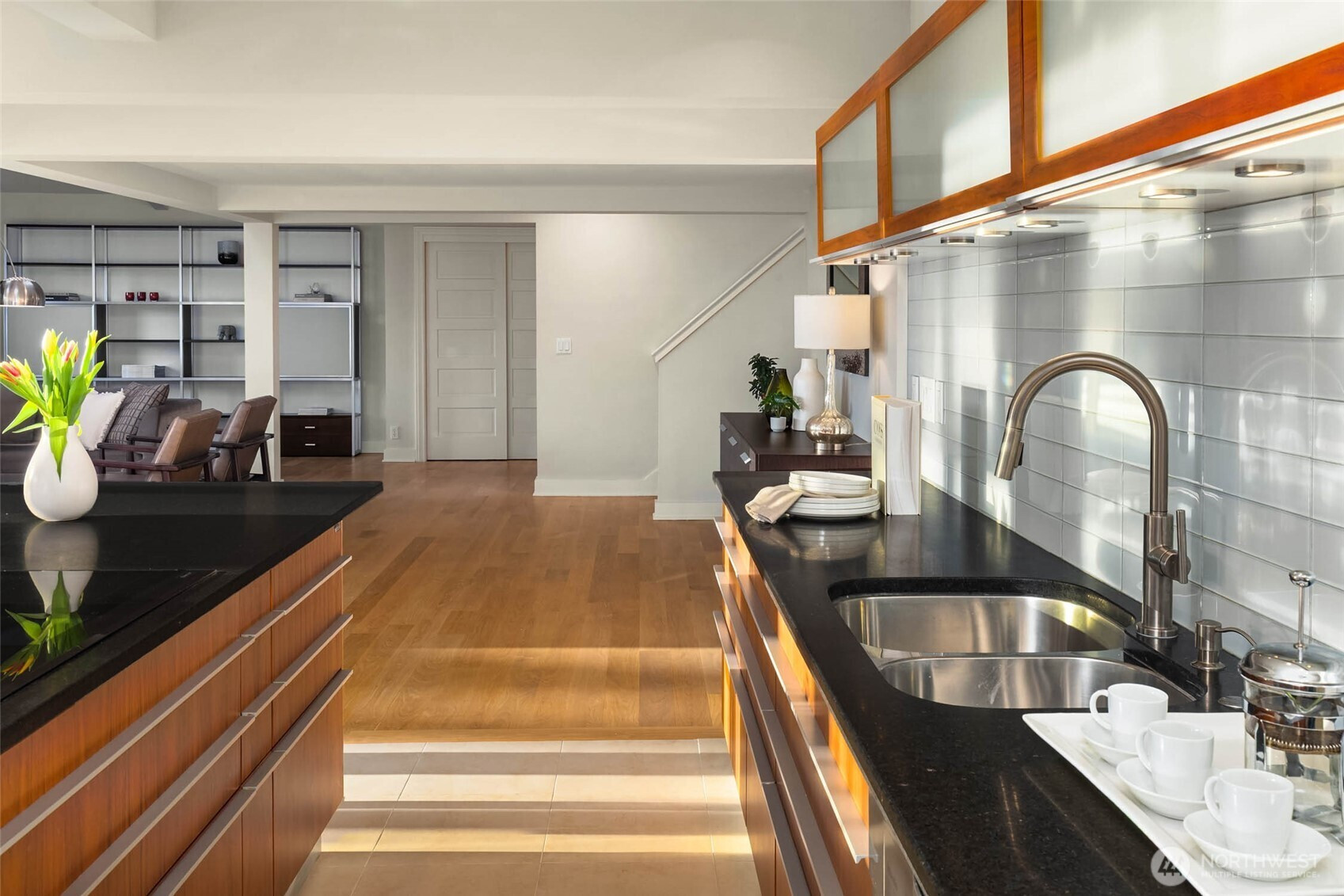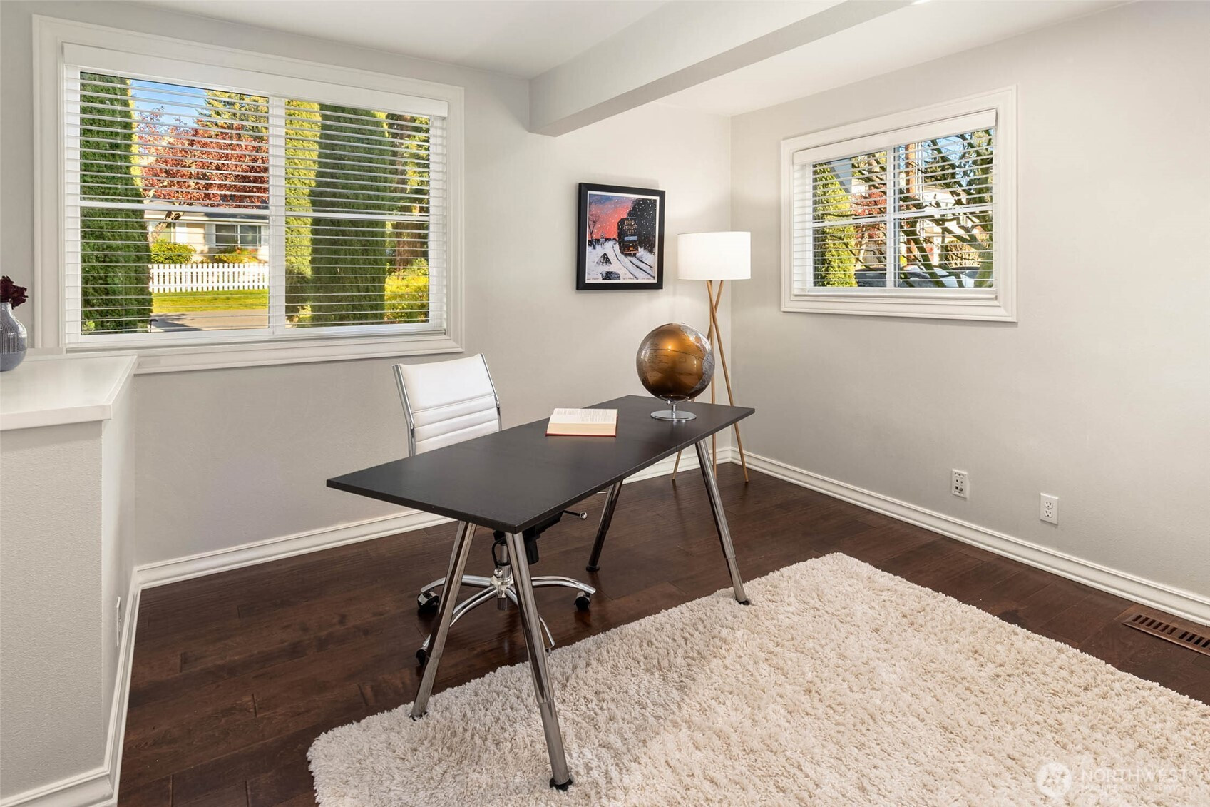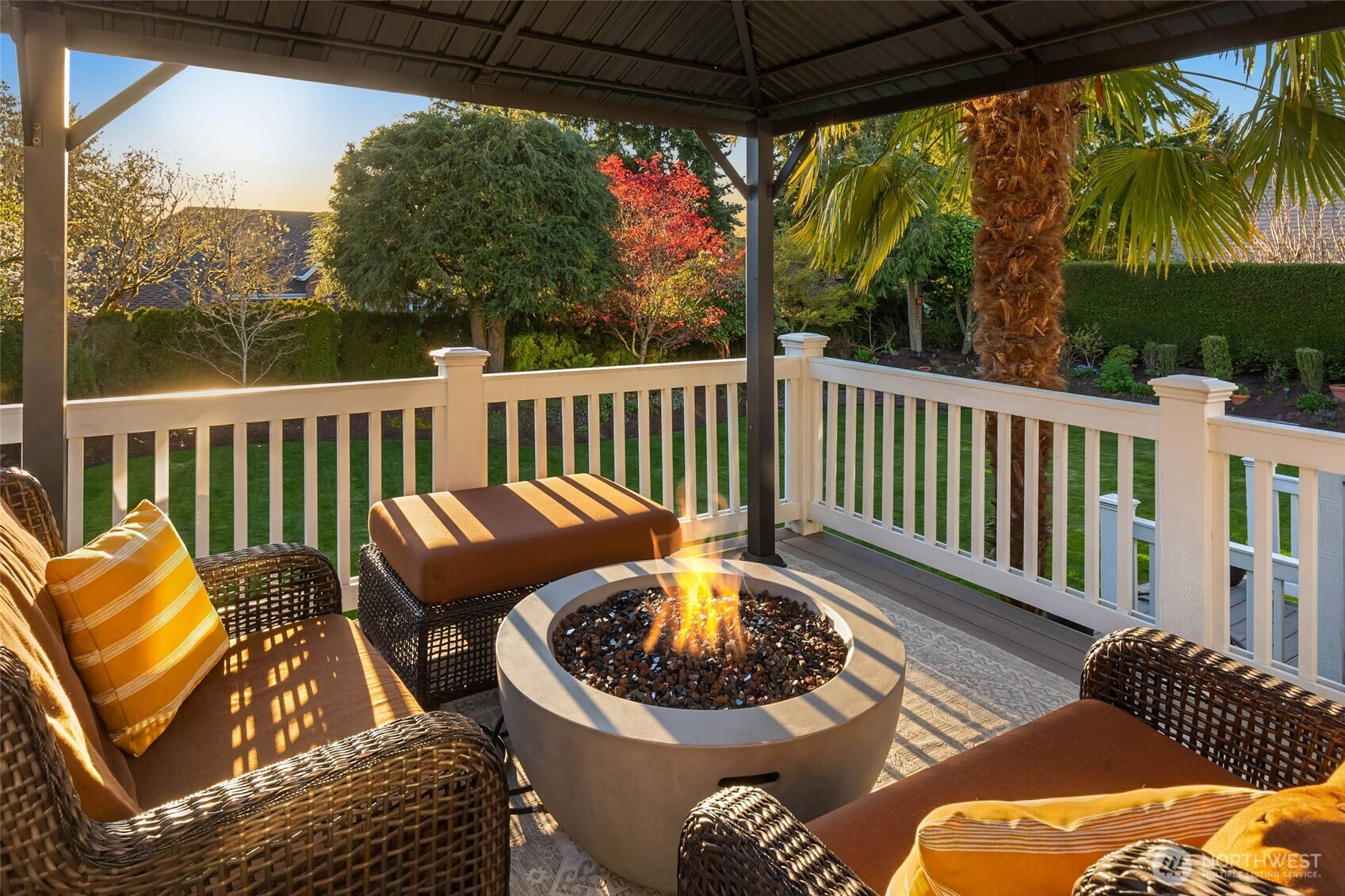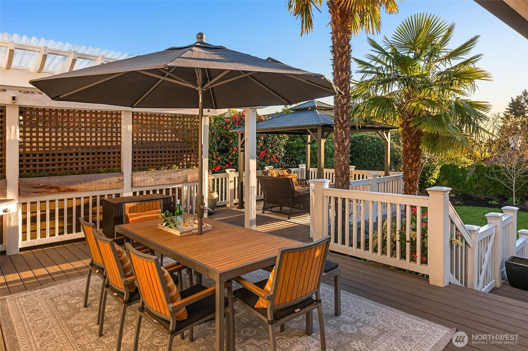 Exceptional Modern Farmhouse with a refined mid-century influence in the heart of Houghton. This 4 bed + office+ den and 2.5 bath home offers sophisticated living and effortless entertaining. The Danish-designed chef’s kitchen features oversized single-slab granite countertops, stainless steel appliances, and an induction cooktop. Radiant heated tile floors warm the kitchen and entry, while solid white oak hardwoods add warmth throughout. Expansive windows fill the home with natural light.A spacious entertainment deck extends off the kitchen, creating seamless indoor-outdoor living surrounded palm trees and a yard with lush greenery for ultimate privacy.The primary suite is a serene retreat with a spa-inspired bath, California Closets, and a private view deck showcasing stunning sunsets, mountain and city views. Daylight basement with separate entrance offers flexibility for guest suite, office, or potential apartment.Set on a rare 12,500 SF level, professionally landscaped, fully fenced and irrigated lot with mature landscaping, landscape lighting, flat lawn (room for sport court or pool), and tranquil waterfall.Generator ready, 2- car garage + 3-car driveway. Minutes to Met Market, Starbucks, International School, Houghton Beach, and Cross Corridor. Easy access to Google, Microsoft & Amazon. Located in award-winning Lake WA School District.