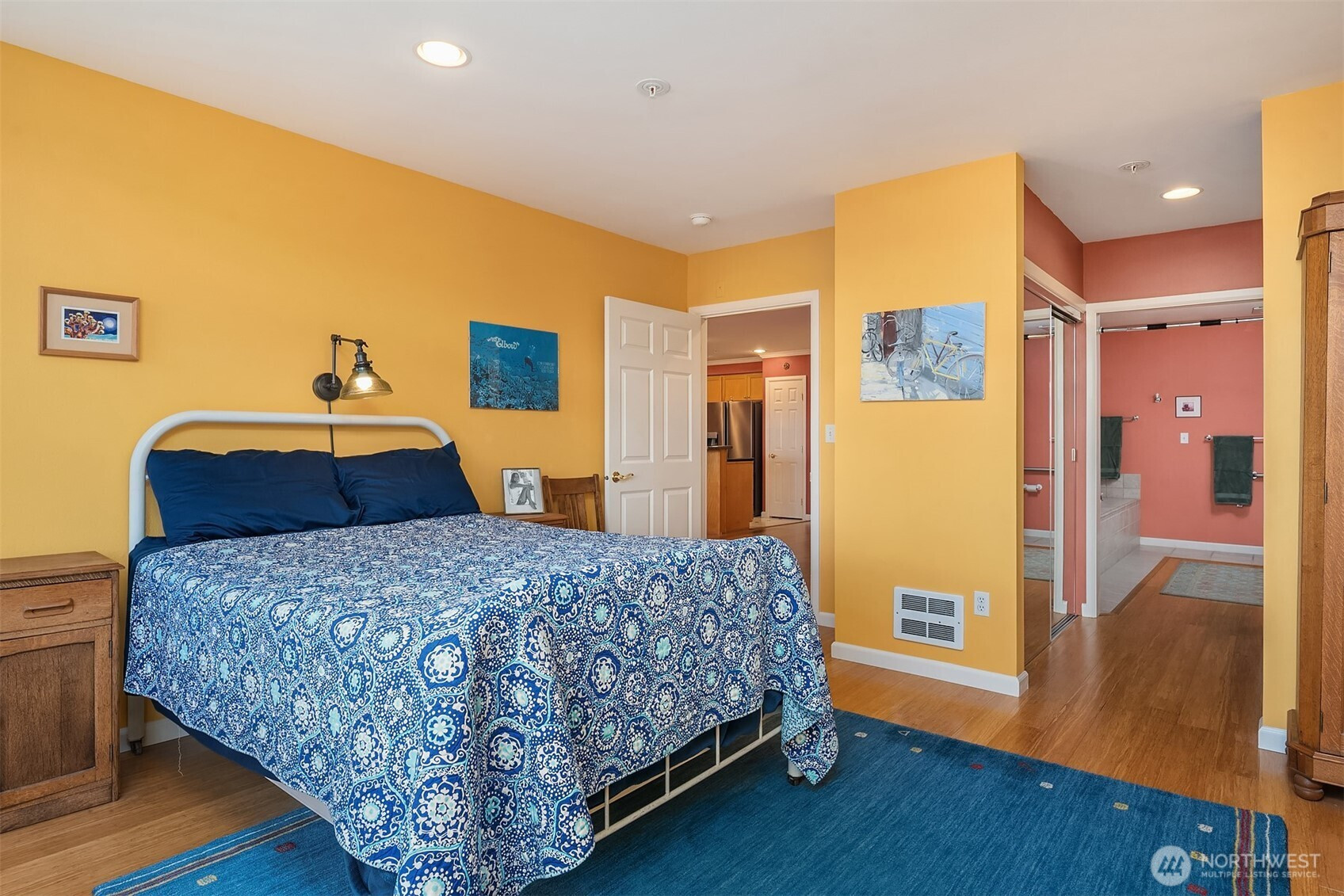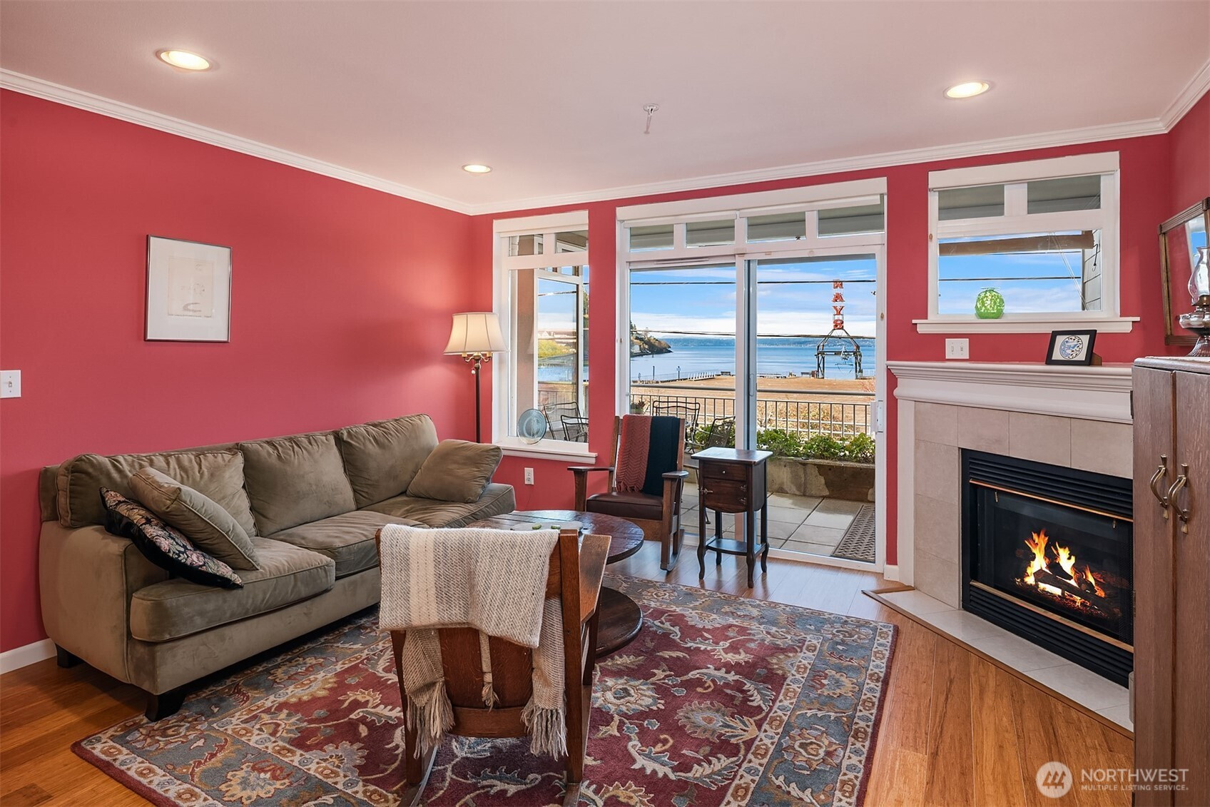Sweeping west-facing views of Puget Sound, the Olympic Mountains, and ever-changing maritime activity take center stage in this beautifully updated condo, ideally located across from Ray’s Boathouse. Floor-to-ceiling windows in the living room and primary suite create a true front-row seat to spectacular sunsets, passing ships, and a gentle marine breeze off the Sound. The open floor plan features a spacious, modern chef’s kitchen with granite counters and an eating bar that flows naturally into the dining and living areas, with access to a lovely private deck. The inviting gas fireplace and rich hardwood floors create an ideal setting for relaxed gatherings, lively dinners, and effortless entertaining. Two generously sized bedrooms, including a luxurious primary with a large five-piece en-suite bath and its own private deck, offer exceptional comfort, while the spacious den provides a flexible home office or guest space. The building offers secure access, two secure parking spaces, pet-friendly policies, and a strong HOA with rental cap not met. Easy access to Shilshole Marina, Golden Gardens Park, the Locks, shopping, and all the fun restaurants, bars and cafes Ballard has to offer. The good life starts here!