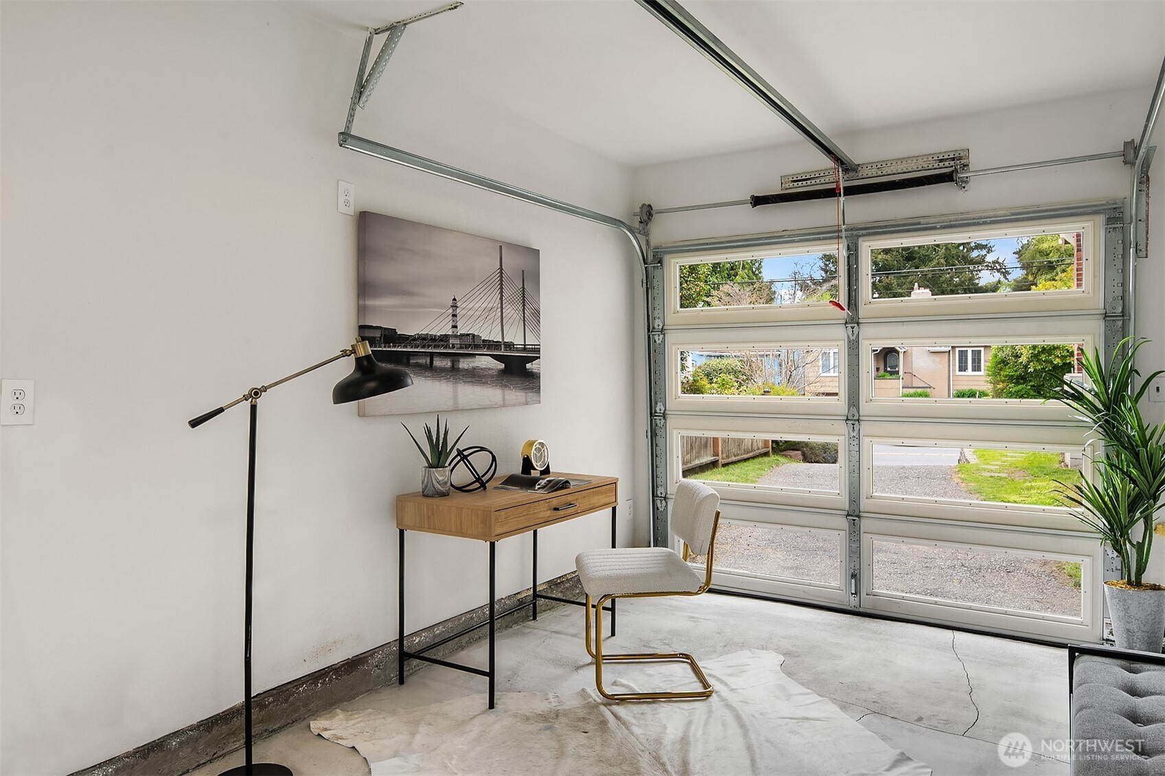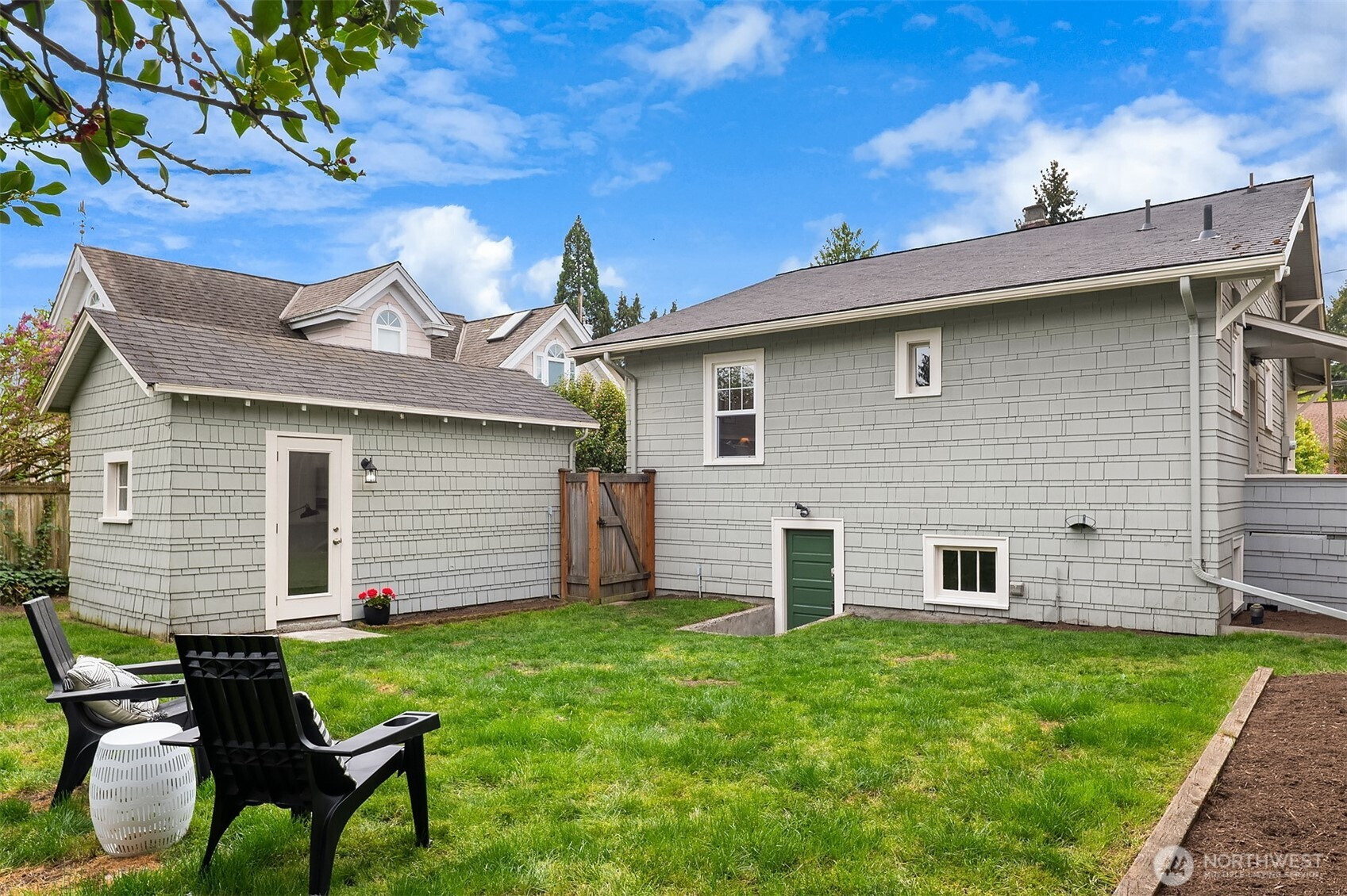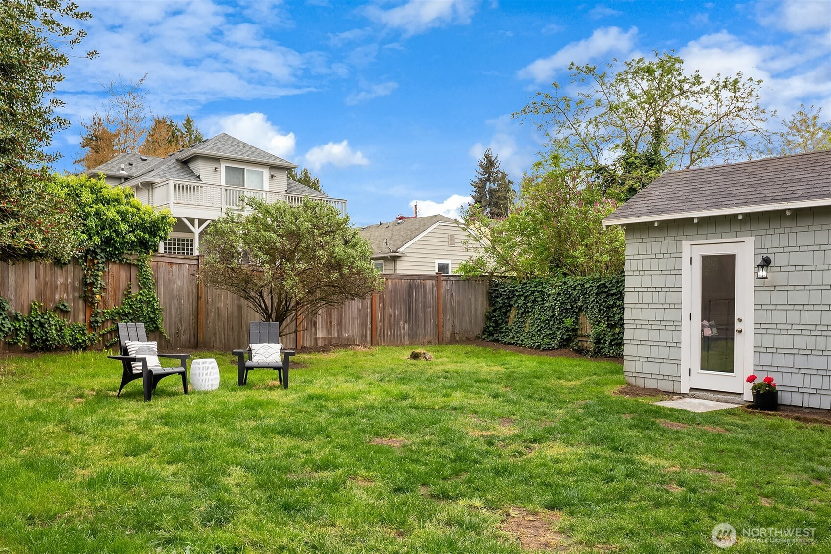 Sitting up off the street, this cheerful bungalow blends classic charm with thoughtful updates. Sunlight pours through updated windows, illuminating the spacious living and dining rooms and highlighting beautiful hardwood floors and tall ceilings throughout the main floor.  Stay comfortable year-round with A/C and enjoy a remodeled bathroom designed with modern touches. The charming kitchen features new appliances, tasteful design upgrades and open shelving. Upstairs, a flexible space offers the ideal second bedroom, home office, or creative retreat. The unfinished basement boasts generous ceiling height and is ready to be transformed into additional living space—think another bedroom, bathroom, and/or media room. A detached garage has already been converted into a work-from-home office and gym space adding even more versatility. Set on a large level lot, the fully fenced yard provides plenty of room to relax, garden, play or to add a DADU potentially. With ample off-street parking and close proximity to the U Village, light rail, shops, and restaurants, this home offers both convenience and future potential. A true Ravenna gem with enviable proximity to everything!