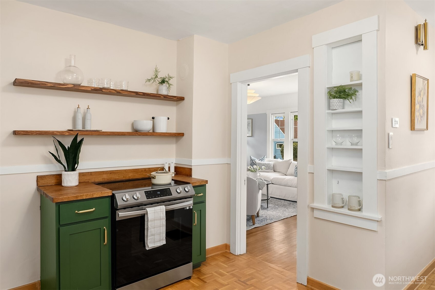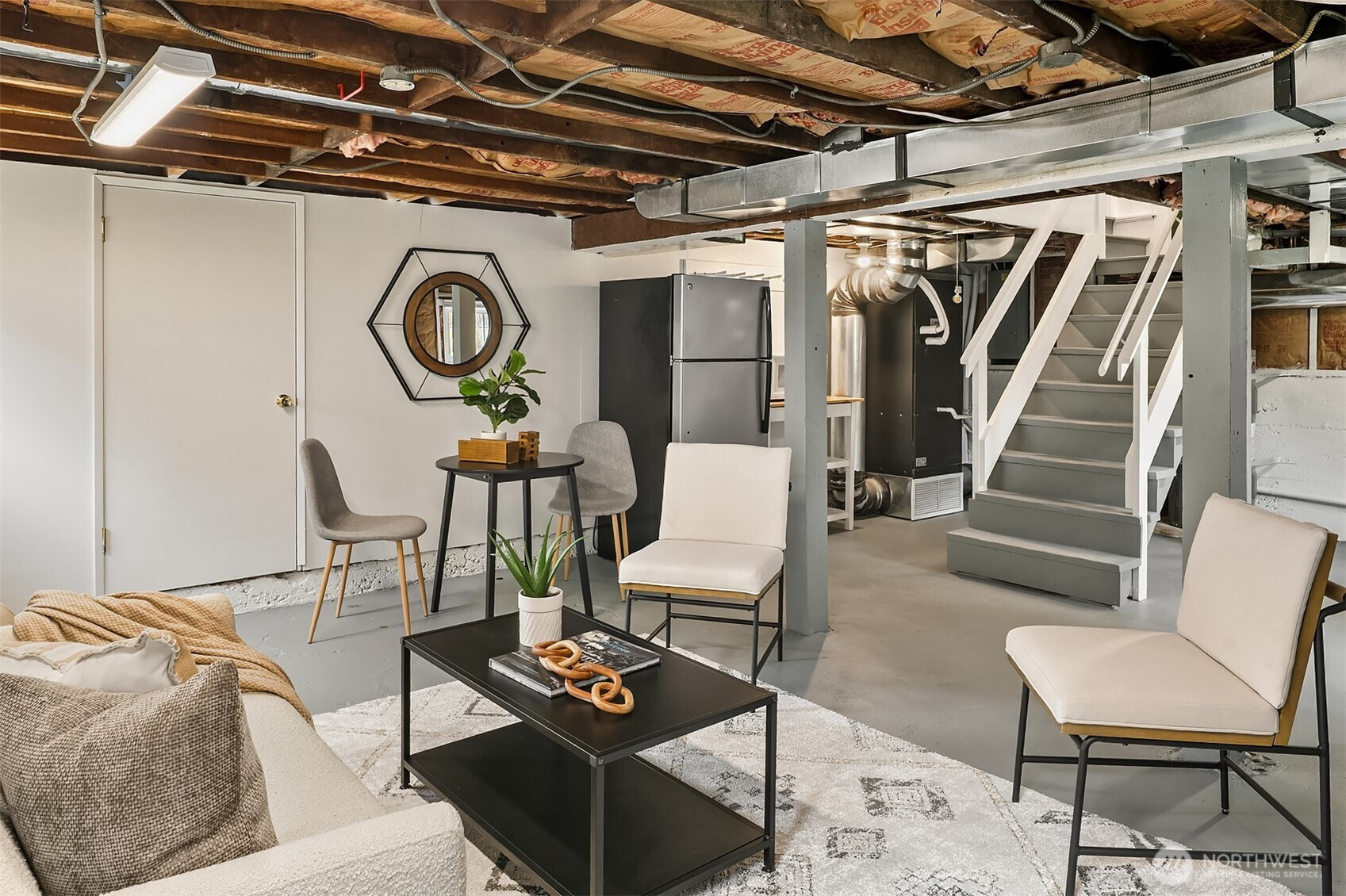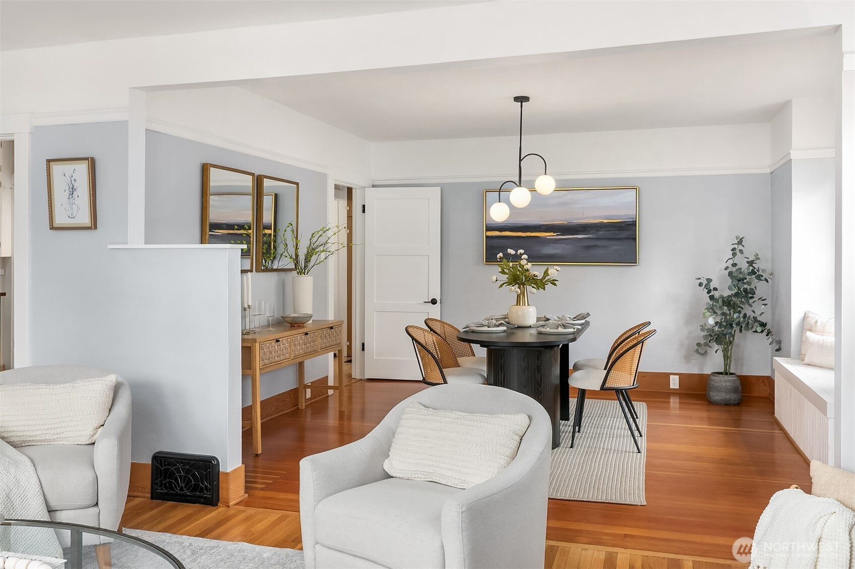 Sitting up off the street, this cheerful bungalow blends classic charm with thoughtful updates. Sunlight pours through updated windows, illuminating the spacious living and dining rooms and highlighting beautiful hardwood floors and tall ceilings throughout the main floor.  Stay comfortable year-round with A/C and enjoy a remodeled bathroom designed with modern touches. The charming kitchen features new appliances, tasteful design upgrades and open shelving. Upstairs, a flexible space offers the ideal second bedroom, home office, or creative retreat. The unfinished basement boasts generous ceiling height and is ready to be transformed into additional living space—think another bedroom, bathroom, and/or media room. A detached garage has already been converted into a work-from-home office and gym space adding even more versatility. Set on a large level lot, the fully fenced yard provides plenty of room to relax, garden, play or to add a DADU potentially. With ample off-street parking and close proximity to the U Village, light rail, shops, and restaurants, this home offers both convenience and future potential. A true Ravenna gem with enviable proximity to everything!