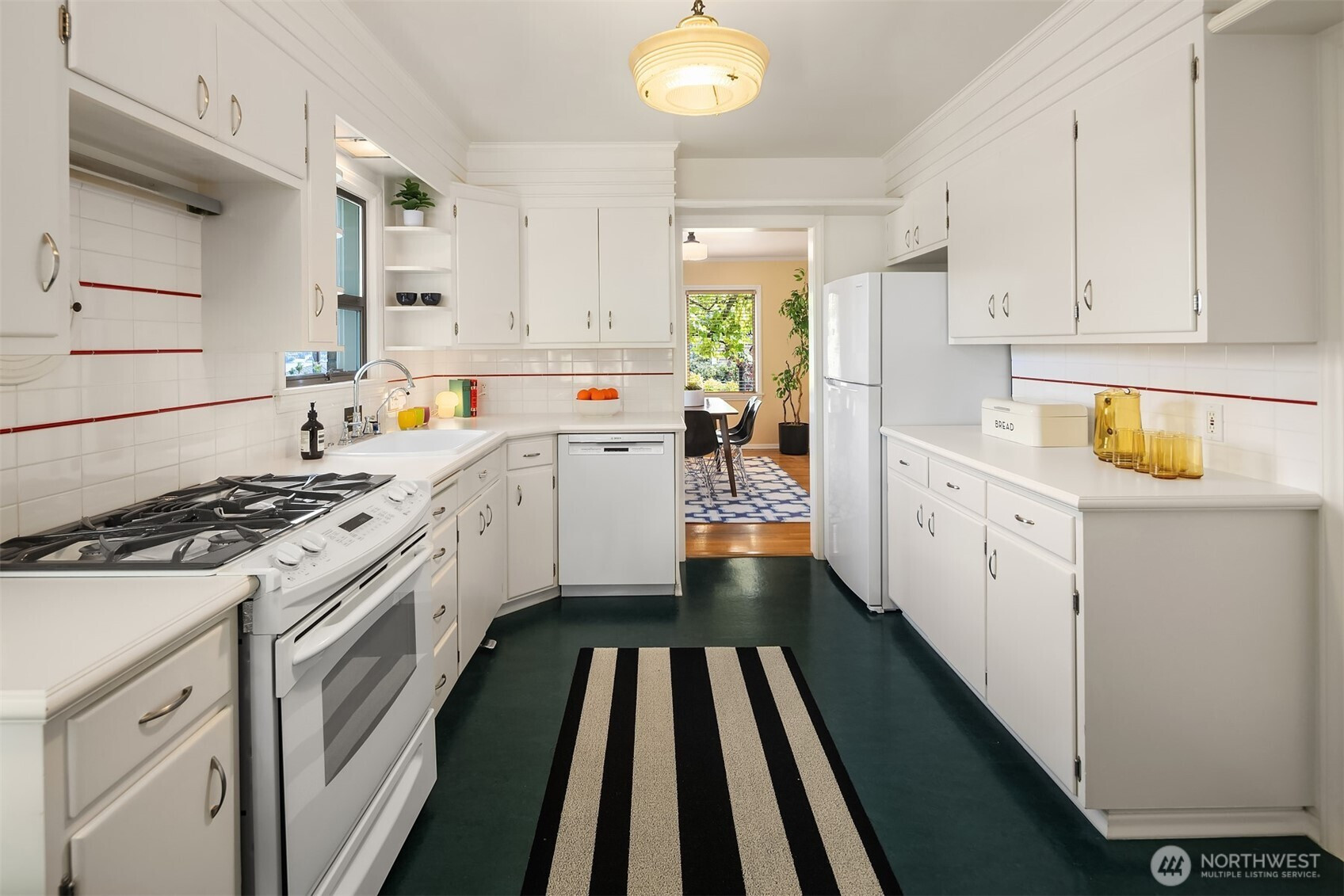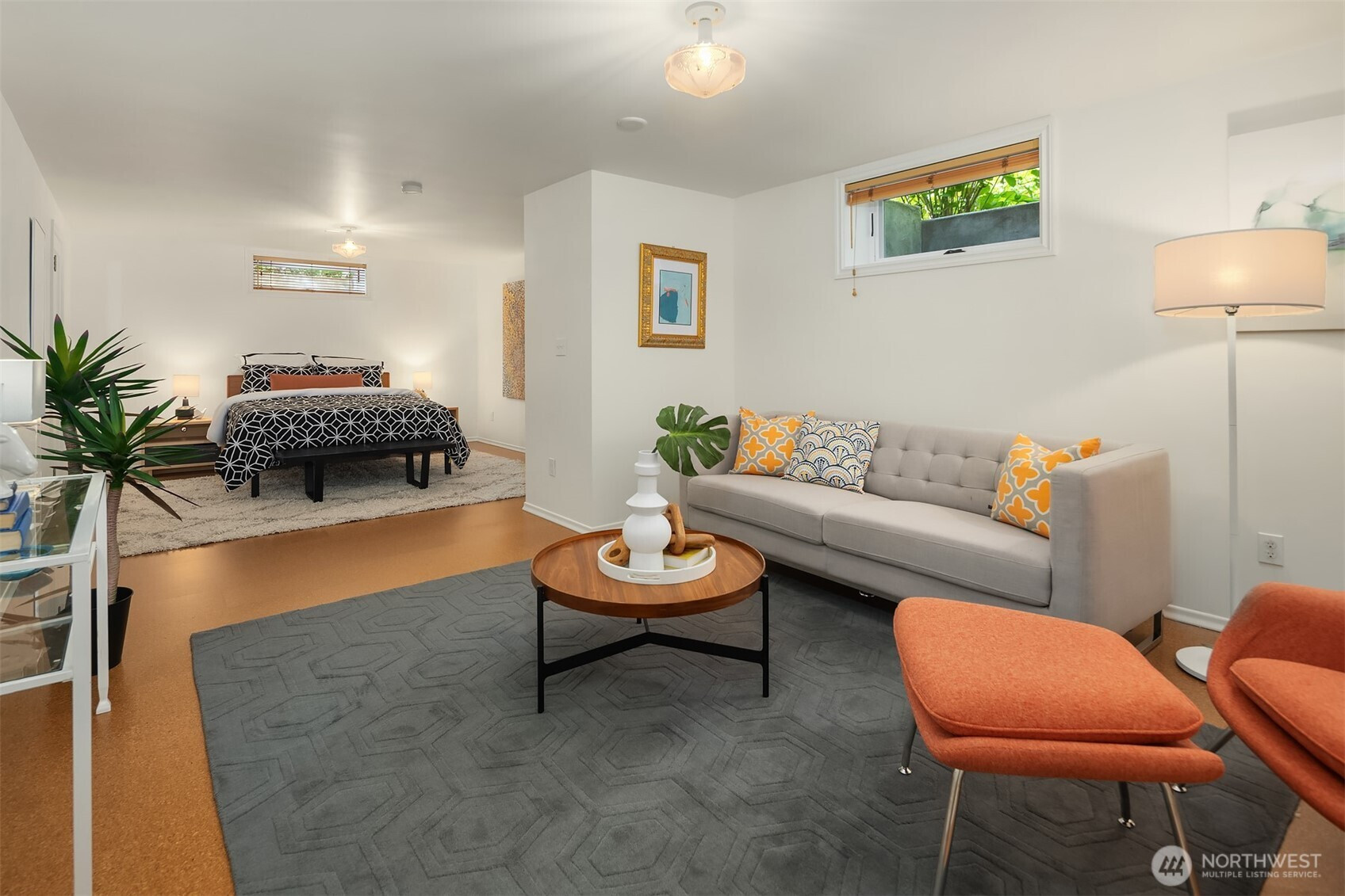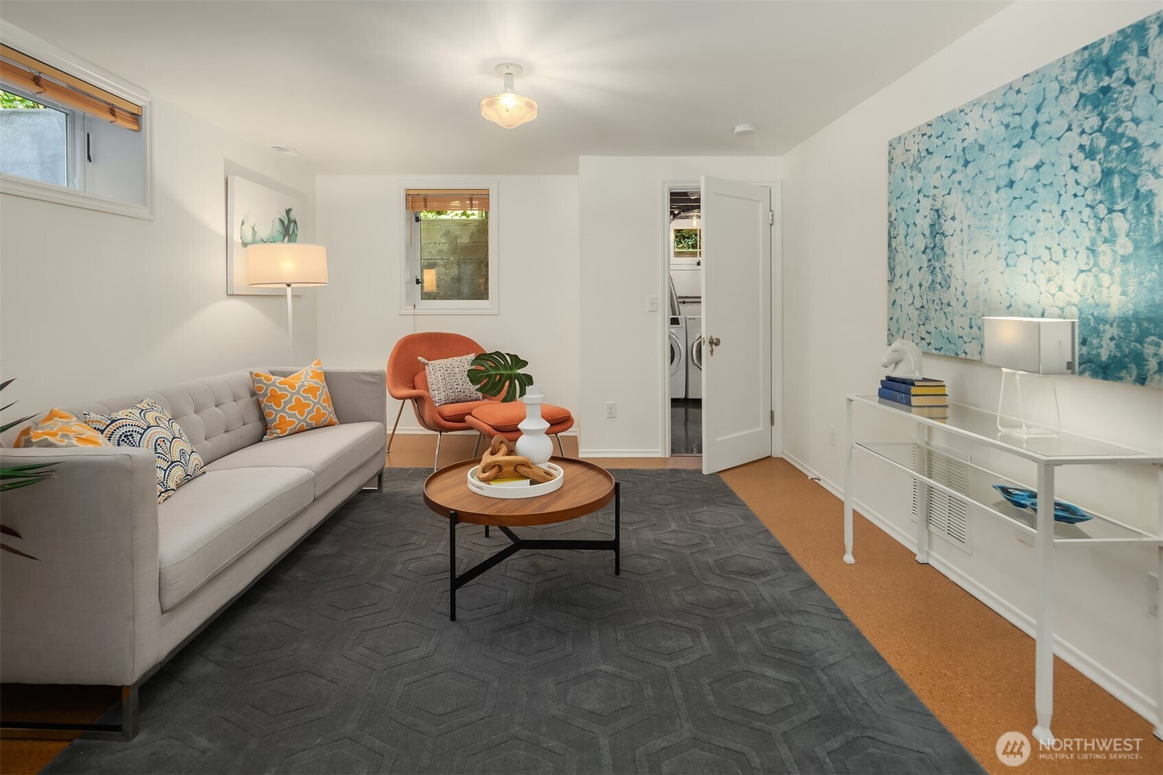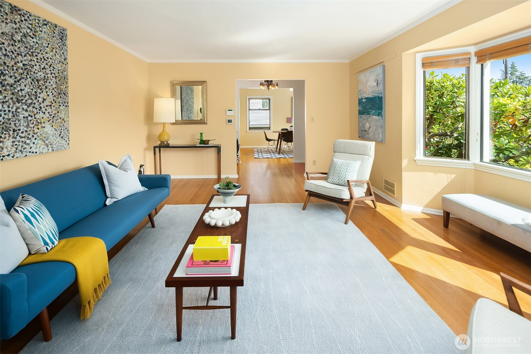Impeccably maintained and thoughtfully upgraded, this residence captures sweeping vistas and offers effortless proximity to Lake Washington and Seward Park. Outfitted with a fully integrated solar system, heat pump, HVAC, backup furnace, and timeless Spanish tile roof. The lush, irrigated grounds are a year-round jewel, with an automated system keeping the gardens vibrant. Two serene bedrooms and a full bath on the main floor include a sunlit primary retreat that opens to flourishing organic gardens of apples, blueberries, and roses—an enchanting setting of beauty and privacy. The lower level offers a cozy fireside media lounge, guest suite, ¾ bath, and abundant storage. This is a rare chance to own an extraordinary urban sanctuary!