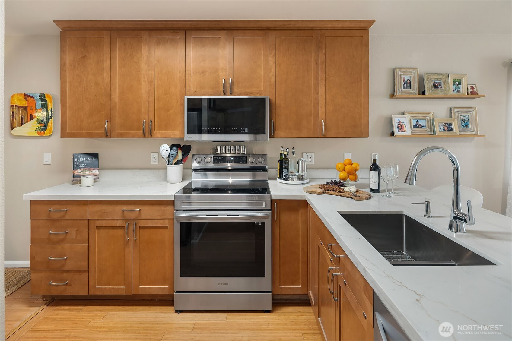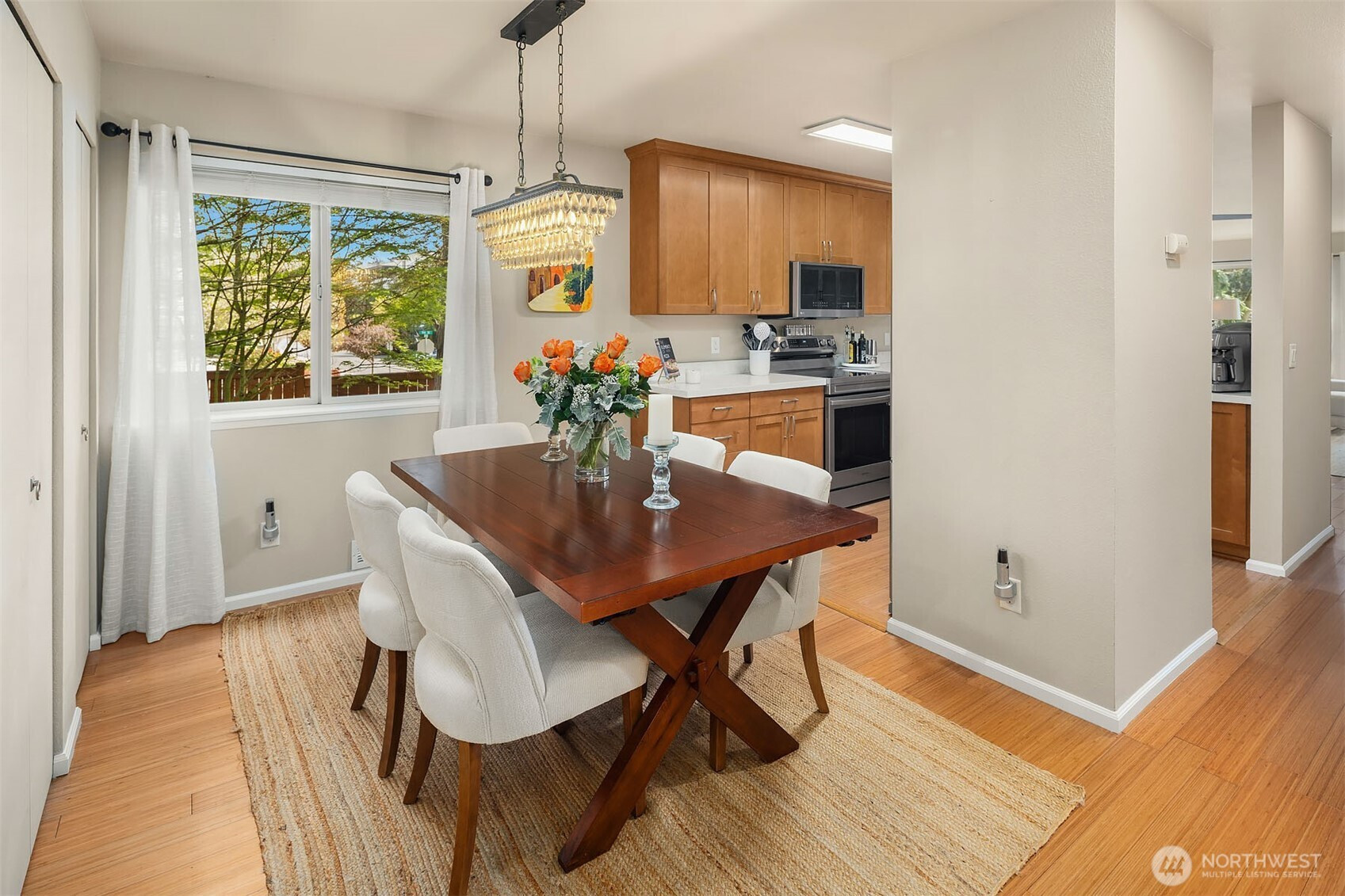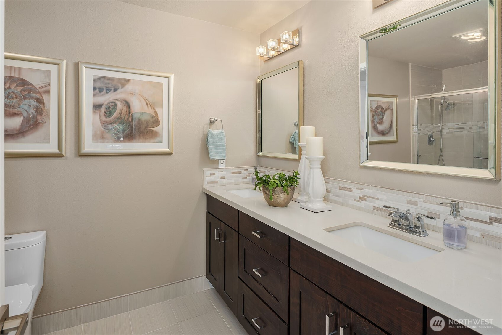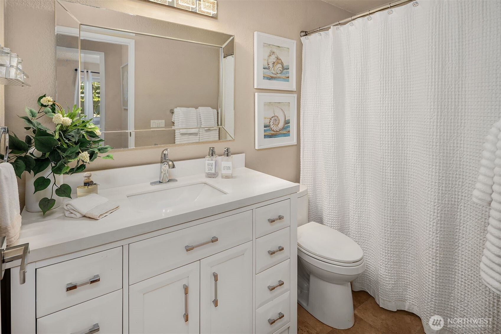Downtown Kirkland living at its best. Just steps to the waterfront, Kirkland Urban, PCC, parks, shops, restaurants, and transit, this home offers the best of city living with a relaxed neighborhood feel. This 2-bedroom offers a thoughtful layout so you can simply enjoy the easy lifestyle. End-unit home with windows on 4 sides. Open-concept living areas are bathed in natural light, the over-sized living room offers a cozy fireplace & access to the private deck w/the chef’s kitchen as the star of the show in the middle w/new quartz countertops, SS appliances & bar seating that invites connection. The generous primary suite includes patio access, a walk-in closet with built-ins, and a beautifully remodeled 4-piece ensuite. The second bedroom also offers a walk-in closet. New carpets in both BDR’s, updated guest bath & lots of storage complete this move-in-ready home. Rental cap has not been met so investors welcome. Nestled just blocks from the Google campus, enjoy convenient access to 405 and Eastside tech hubs. Affordable luxury awaits!