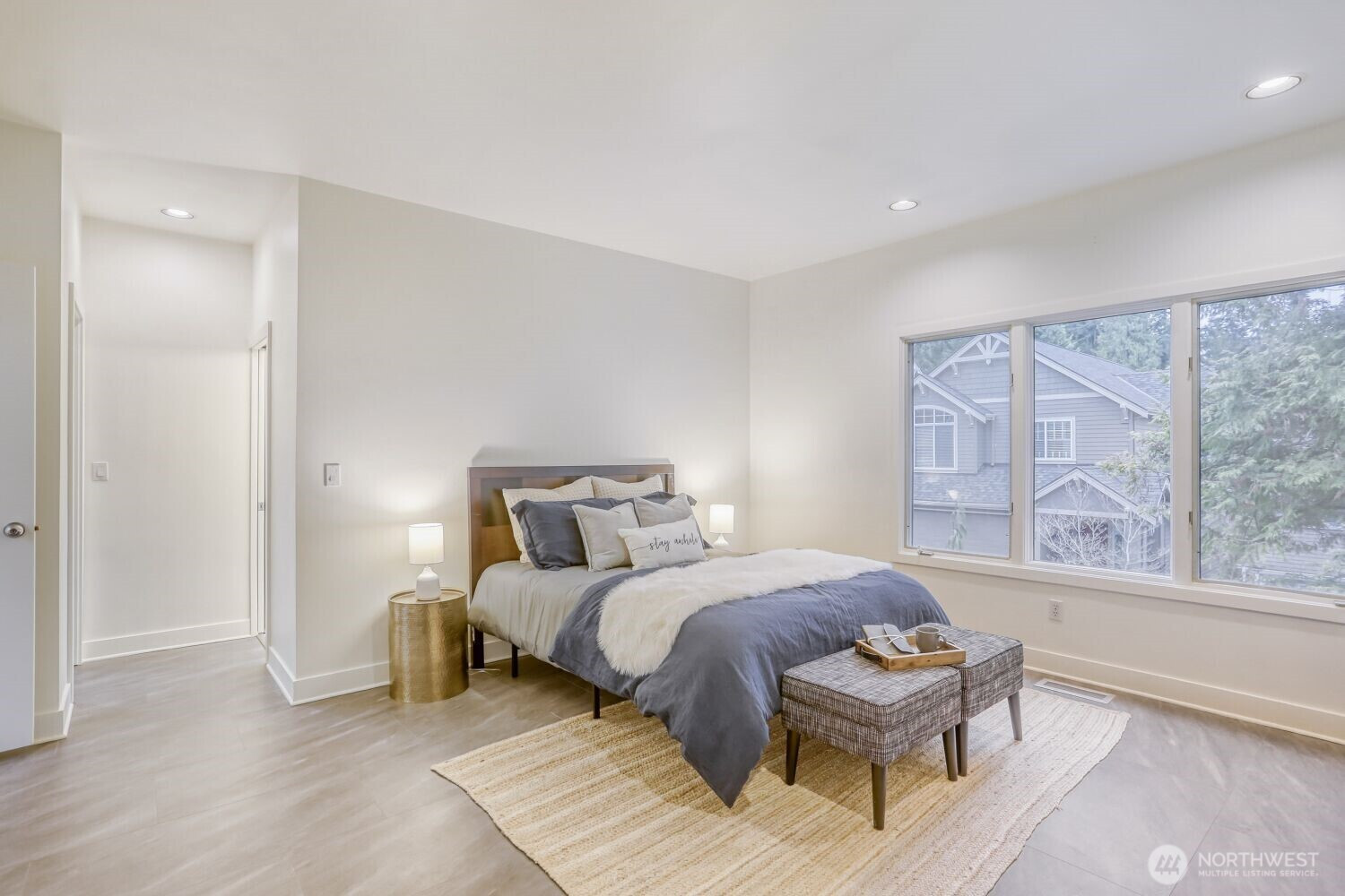 Live in the heart of Downtown Bellevue without sacrificing privacy or peace. This beautifully updated Park Terrace residence offers a rare attached 2-car garage, private entry, and no shared walls—creating the feel of a single-family home in an urban setting. Inside, soaring ceilings and expansive windows fill the open layout with natural light, highlighting refined designer finishes throughout. The remodeled kitchen seamlessly connects to elegant living and dining spaces, ideal for entertaining or quiet evenings in. Upstairs, the primary suite is a true retreat with a spa-inspired five-piece bath, sitting area, walk-in closet, and private deck. Step outside and enjoy effortless access to Downtown Park, premier shopping, dining, and entertainment. HOA covers exterior maintenance, roof, and insurance. New roof in 2024. No rental cap. Schedule your private showing today and experience downtown living done right.