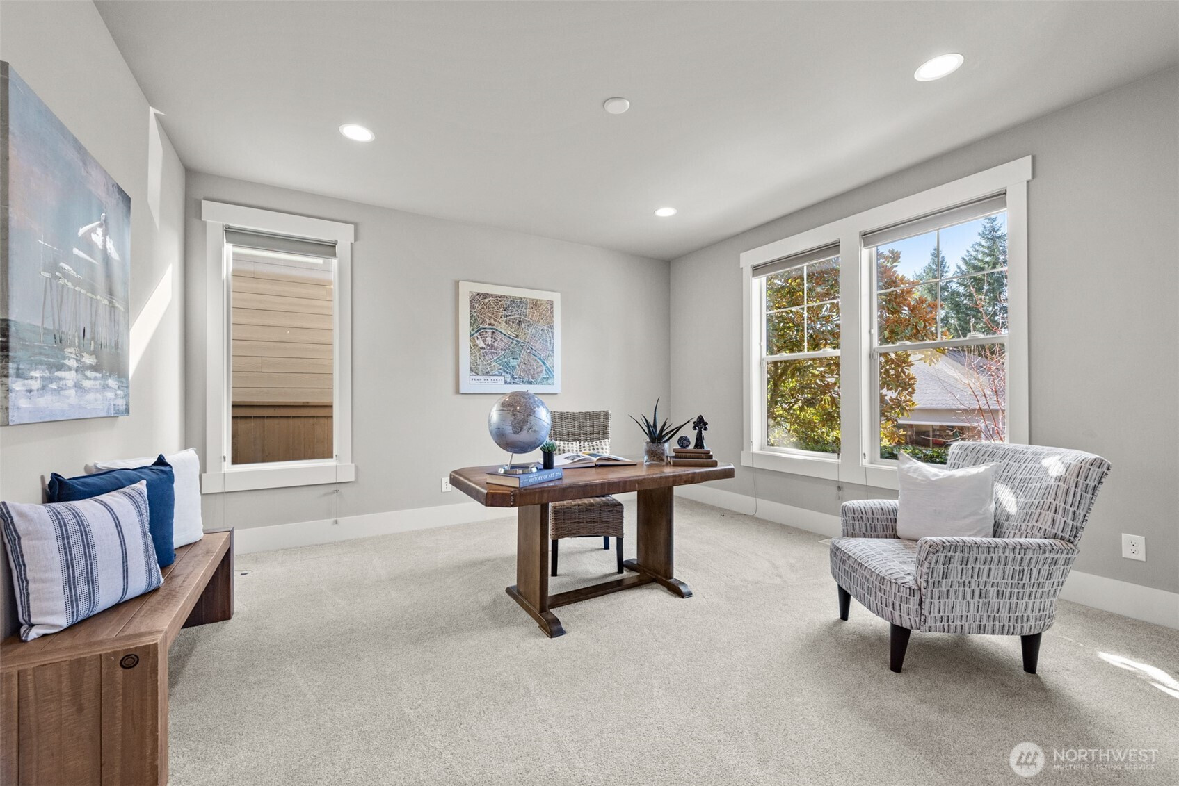 Pride of ownership shines throughout this exceptionally cared-for home that truly feels better than new. Thoughtfully maintained, this move-in-ready residence offers refined comfort and effortless living.A grand double-door entry welcomes you into a light-filled foyer with soaring ceilings, setting the tone for the elegant interior. The oversized main-level office, framed by glass French doors, provides the perfect work-from-home retreat. At the heart of the home, the chef-inspired kitchen features a generous island, coordinated stainless appliances, and seamless flow into the inviting living area highlighted by a beautifully detailed fireplace.Upstairs, a spacious loft offers flexible bonus or game room space, while the luxurious primary suite delivers a true sanctuary. Enjoy a spa-like five-piece bath with an oversized soaking tub and a substantial walk-in closet designed for both style and function.Outside, the fully fenced and professionally landscaped yard offers level green space ideal for play, pets, or entertaining. Recent upgrades include exterior paint (2022), new carpet (2023), EV charging capability, high-efficiency HVAC, tankless water heater, and a security system — providing both modern convenience and peace of mind.A rare combination of condition, upgrades, and thoughtful design — this is one you won’t want to miss.