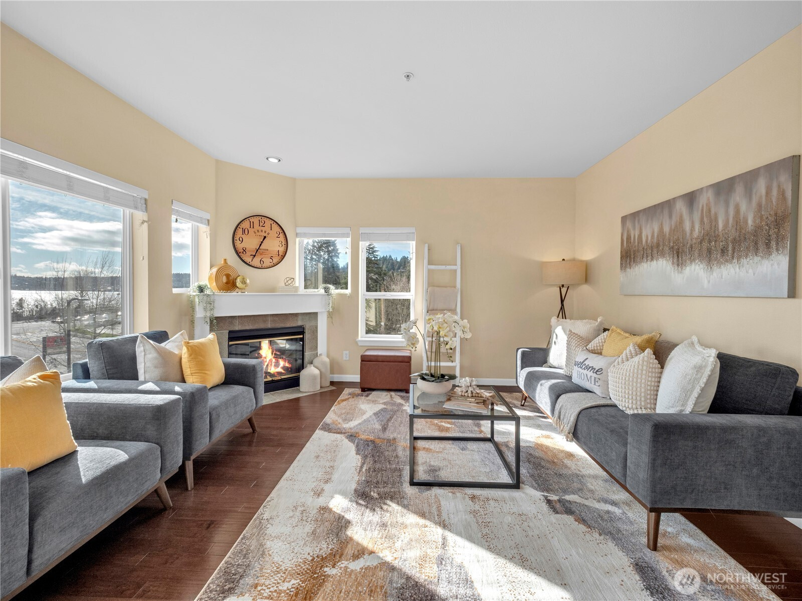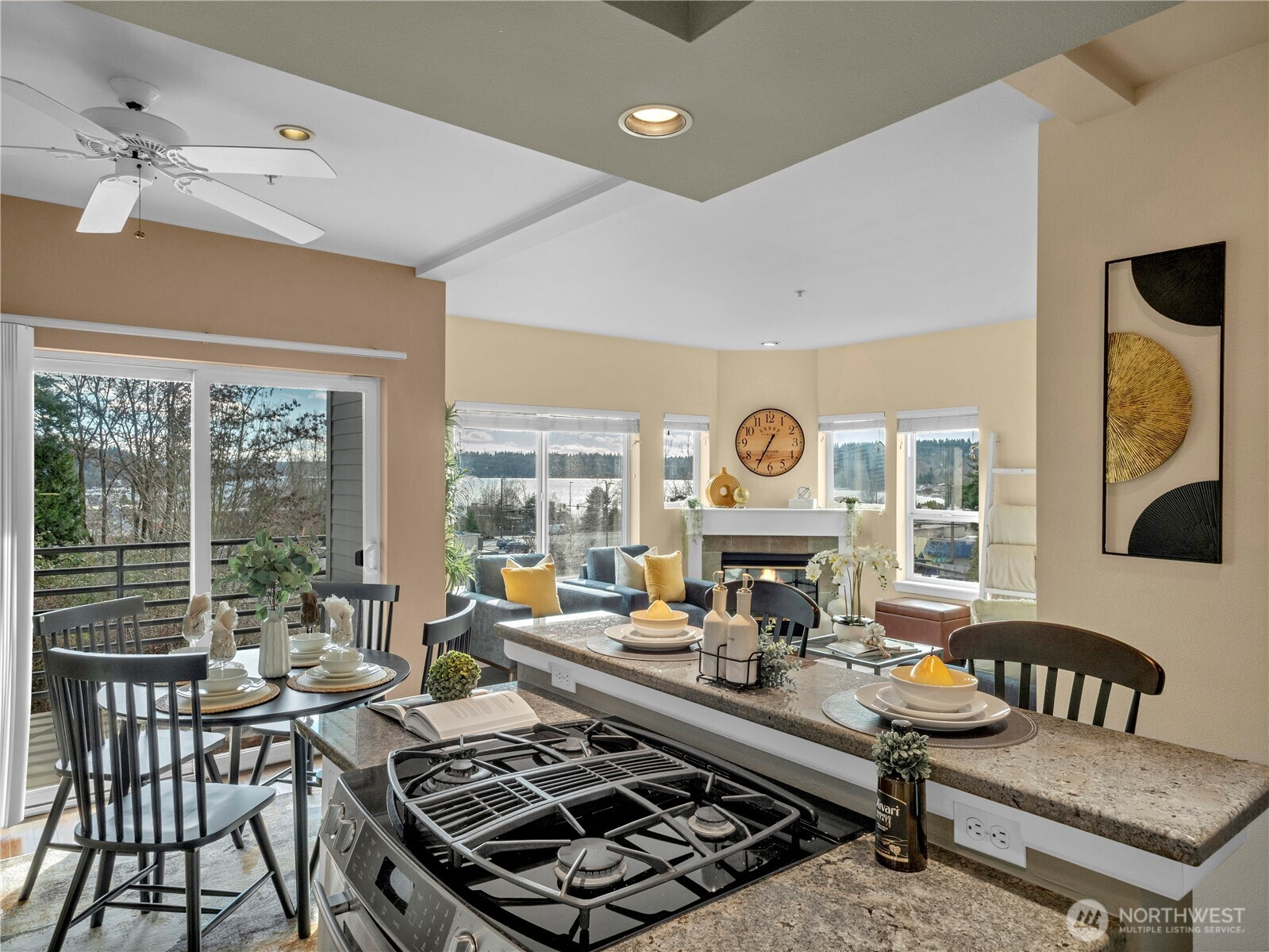 Elevated condo living with BIG, north end, Lake Washington views! This well-maintained 2 bedroom, 2 bath home sits perched above Kenmore's waterfront soaking in the natural beauty and incredible daylight. The functional layout features a spacious primary suite with en suite bath and walk in closet. Bright kitchen with gas range, updated countertops and backsplash, ample cabinetry, and a breakfast bar opening to the dining and living areas. Relax by the gas fireplace or step onto the covered deck to take in the views and watch the float planes come and go at Kenmore Air. Ideally located near Log Boom Park and just steps to the Burke-Gilman Trail for walks, jogs or bike rides. Several walkable dining options. Easy access to Seattle, Kirkland, Bothell or Edmonds. Nearby light rail just 10 minutes away for effortless commuting. One car private covered garage with storage unit. Well maintained HOA with low dues, recently painted with a new roof. Come to Compass Pointe to see what all the hypes about!