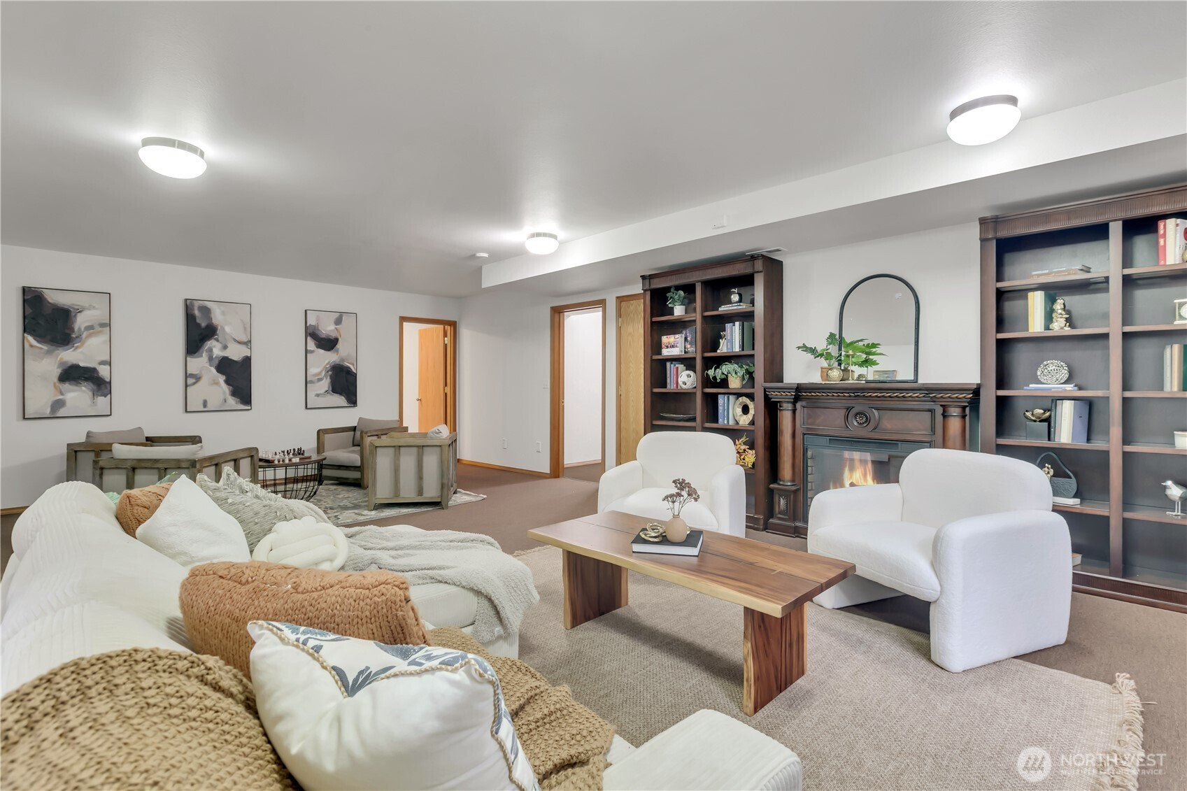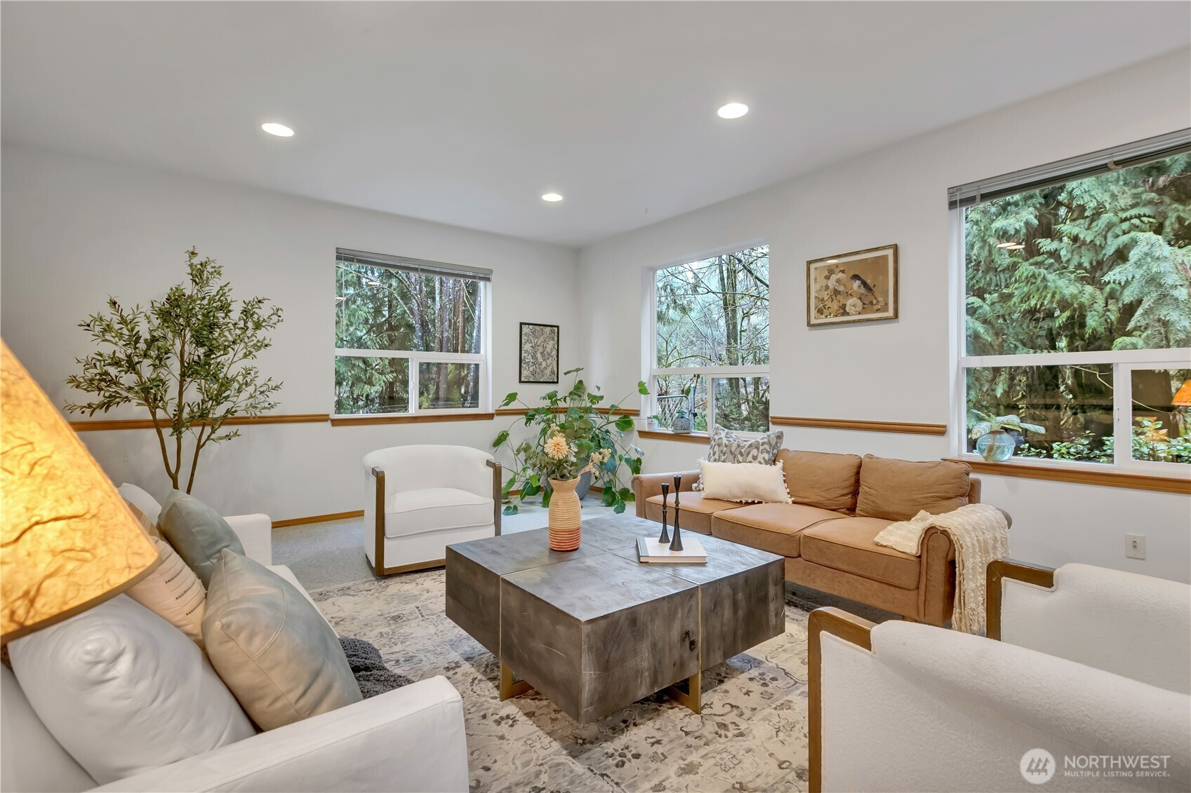 Find peace and serenity in this stunning Carnation home. Set on 5 beautiful acres, this 4,540 sqft home offers space, light, and Northwest beauty at every turn. Featuring 4 bedrooms (Plus an Office) and 3.5 baths, each room is filled with natural light from expansive windows, and vaulted ceilings. A grand foyer welcomes you with warm wood floors and an elegant wood banister, while the living room is bathed in sunlight. The oversized kitchen boasts Cambria counter tops, a brand new double oven, and opens seamlessly to a generous dining area. The thoughtful layout of the home lets you host large gathers and the patio space creates a unique indoor-outdoor entertainment space. The spacious primary suite easily accommodates a king bed and sitting area, complete with a cozy stove, large walk-in closet, and private ensuite with dual sinks and a walk-in shower. The finished lower level offers a massive bonus space ideal for a library, game room, or second living room, featuring a fireplace and bookshelves, plus a private bedroom with an en-suite. With a separate exterior entrance, the basement offers ADU potential. Don't forget about the large two-car garage (new garage door) & ample storage, an indoor storage room perfect for a workshop or home gym, and plentiful extra parking. The meticulously maintained grounds include a fully fenced pet area, a charming front-yard fish pond, and a peaceful creek. Call this peaceful home your own. Buyer walked, can't build permanent fence.