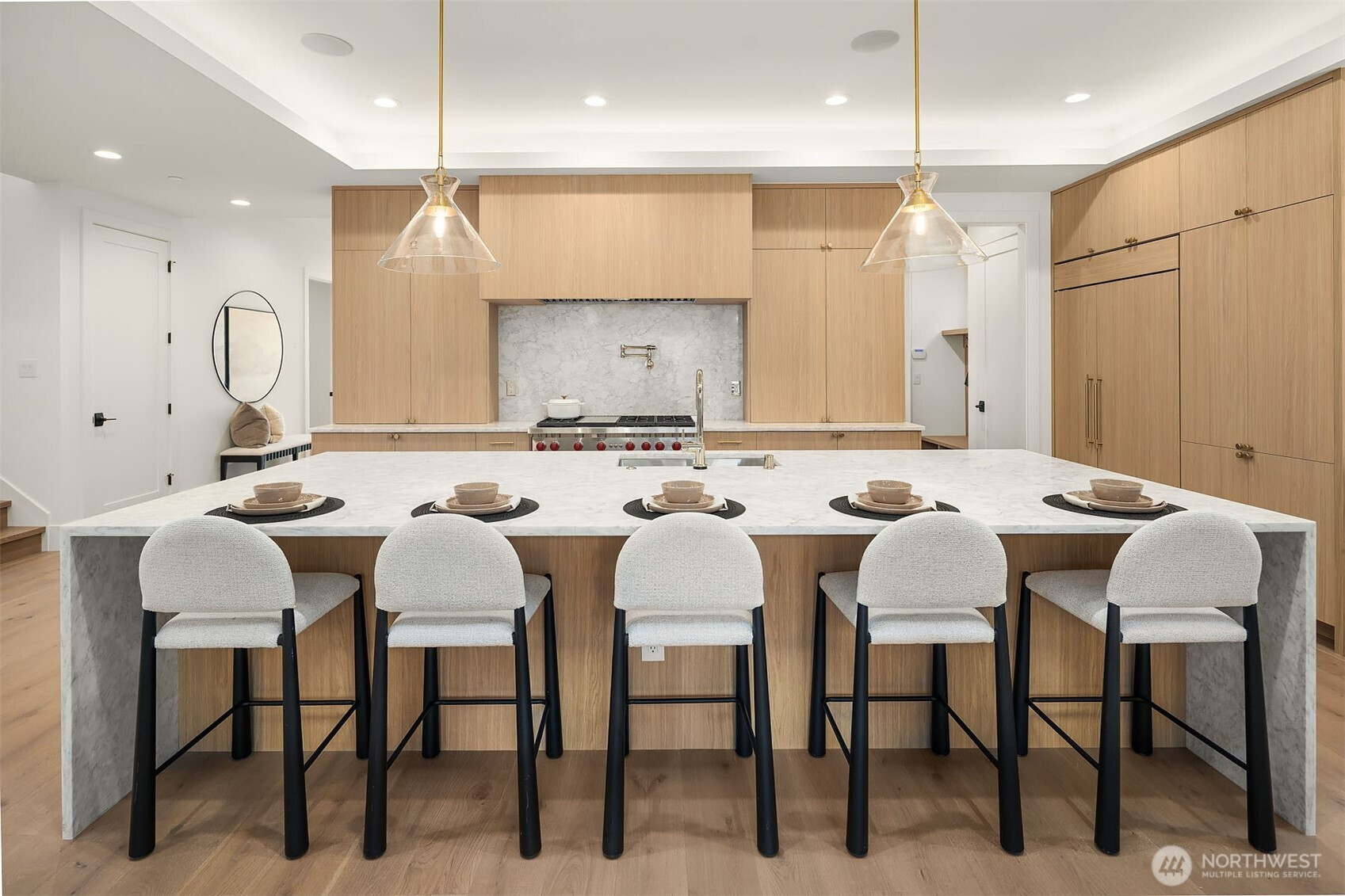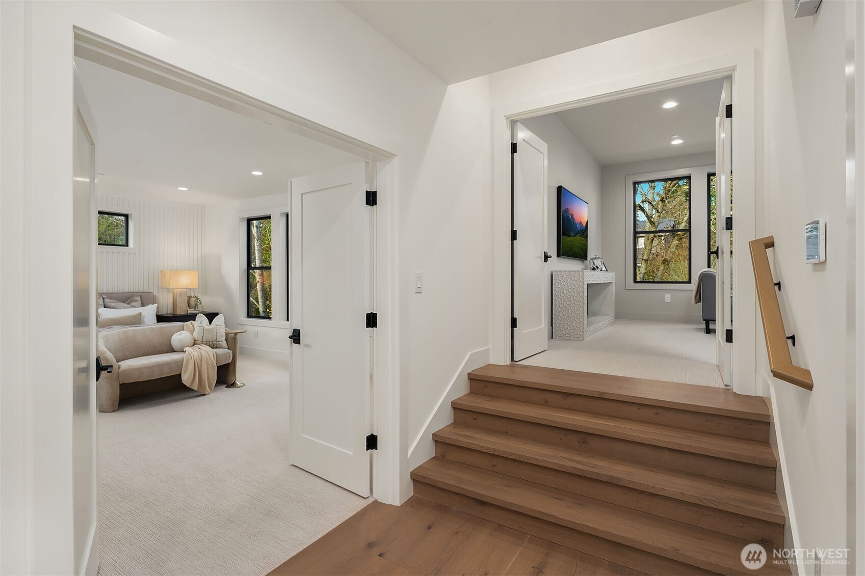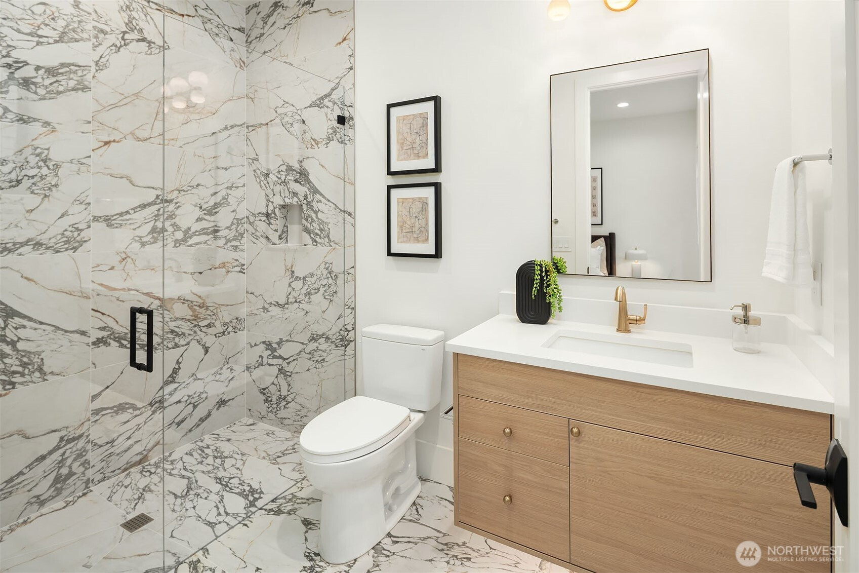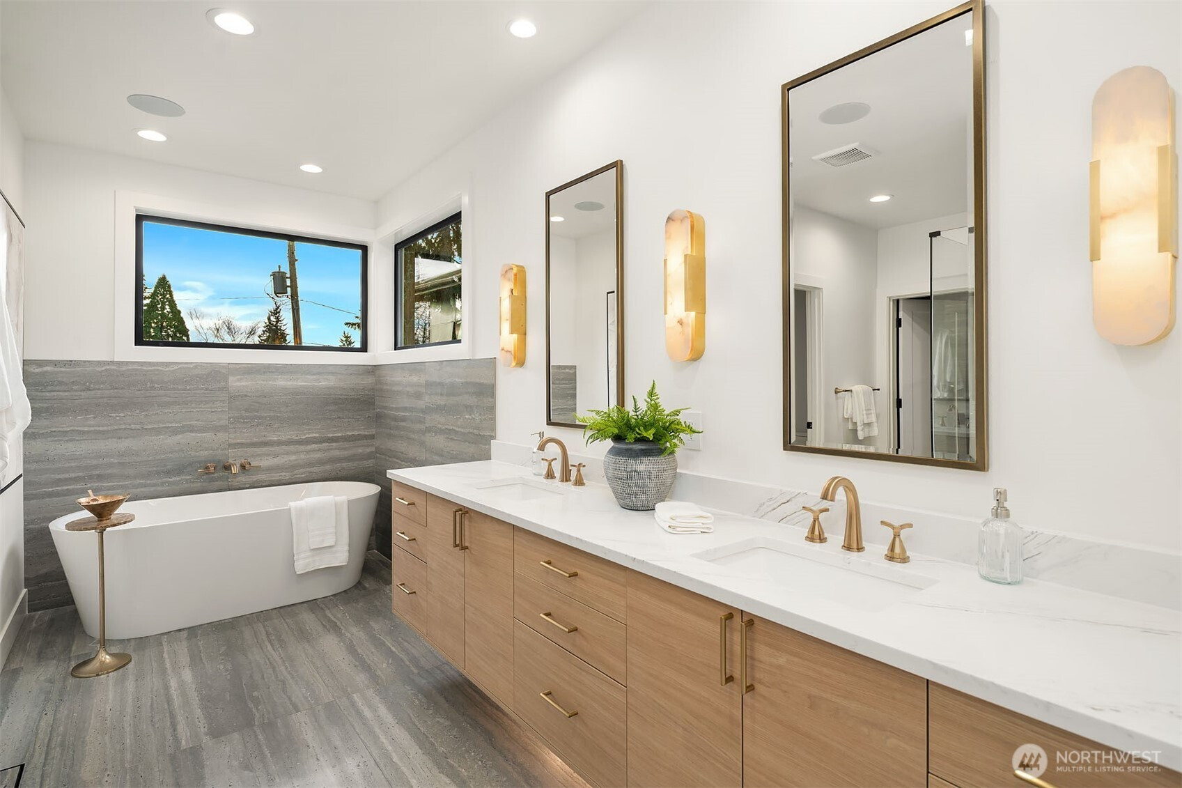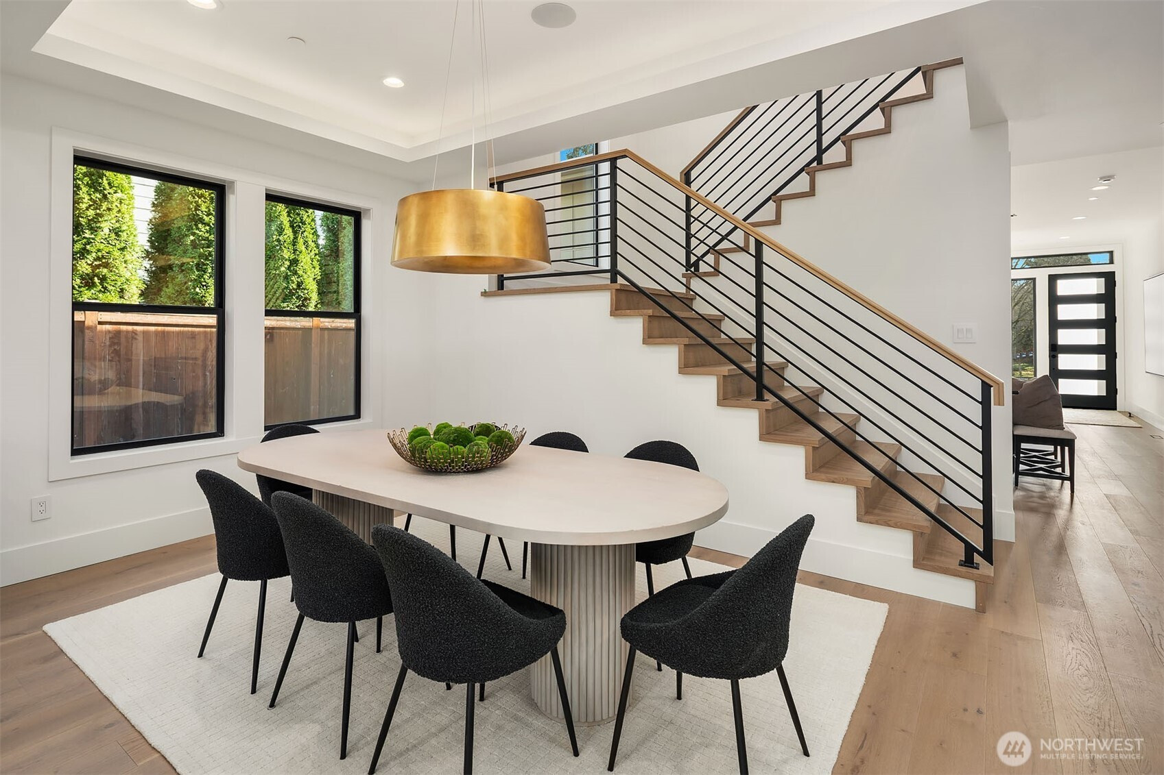 MN Custom Homes presents a stunning transitional design in the sought-after East of Market neighborhood. Ideal floor plan for today's living: vaulted great room, outdoor covered living area with fireplace & upper-floor bonus room. Chef's kitchen seamlessly connects to the great room. Main level guest en-suite and formal dining room. Light and bright. Private, spacious backyard. Smart & green home features throughout, including solar panels. Close proximity to parks, schools, Google Campus & all that DT Kirkland has to offer.
