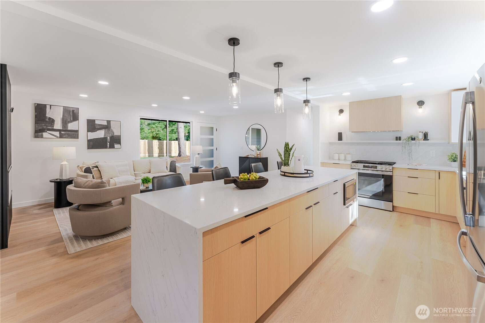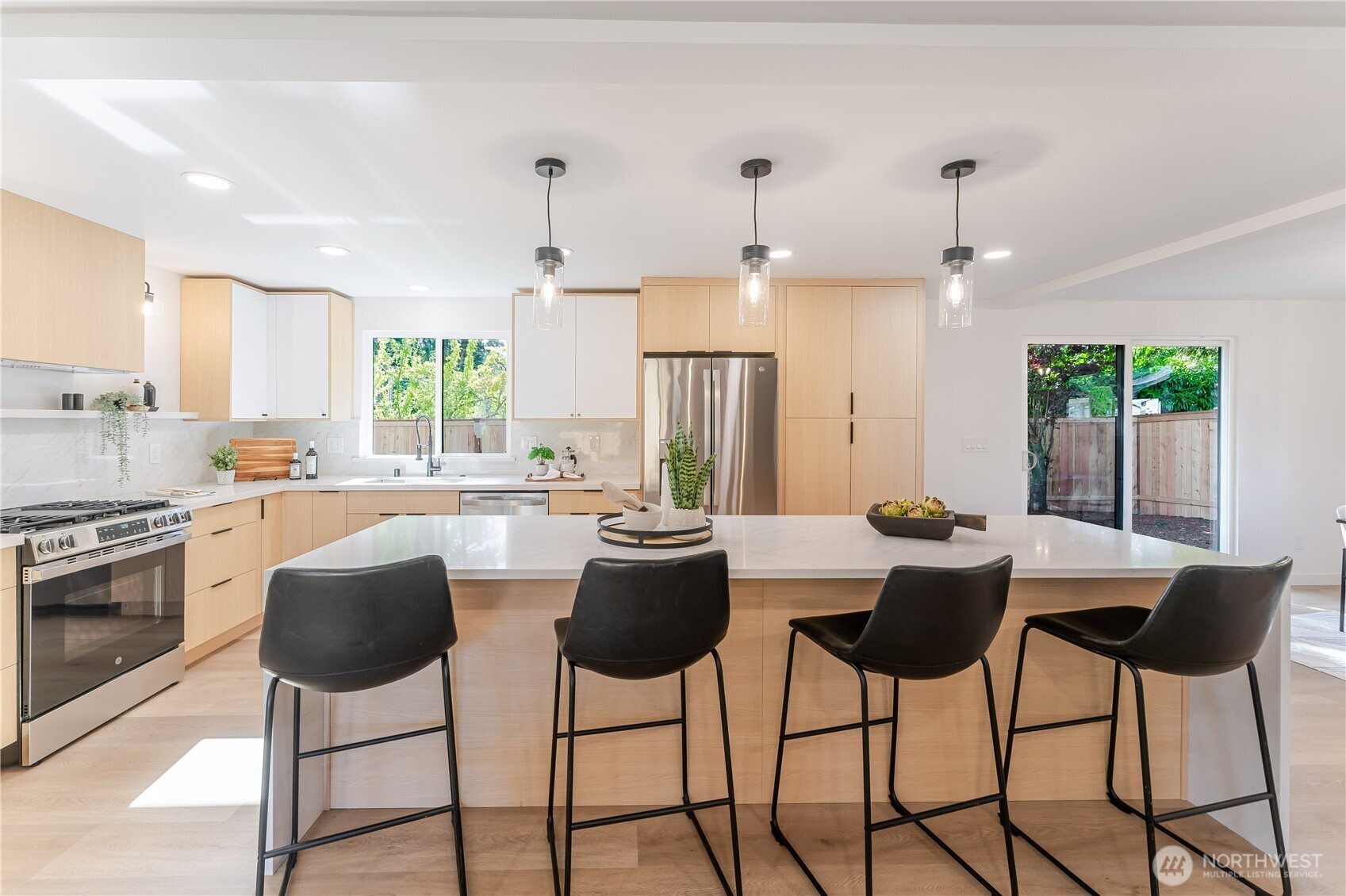 Charming, fully remodeled 3 bed, 2 bath Kenmore rambler with 1,320 sq ft of beautifully updated living space on a large, fully fenced lot in the sought-after Northshore School District! This fully permitted remodel features an open-concept layout with all-new flooring, paint (inside & out), roof, windows, plumbing, and electrical. Enjoy brand-new landscaping and stylish finishes throughout. Nestled in a welcoming neighborhood just minutes from downtown Kenmore, parks, trails, and stunning views of Lake Washington. A perfect blend of comfort, convenience, and move-in-ready quality—don't miss this gem!