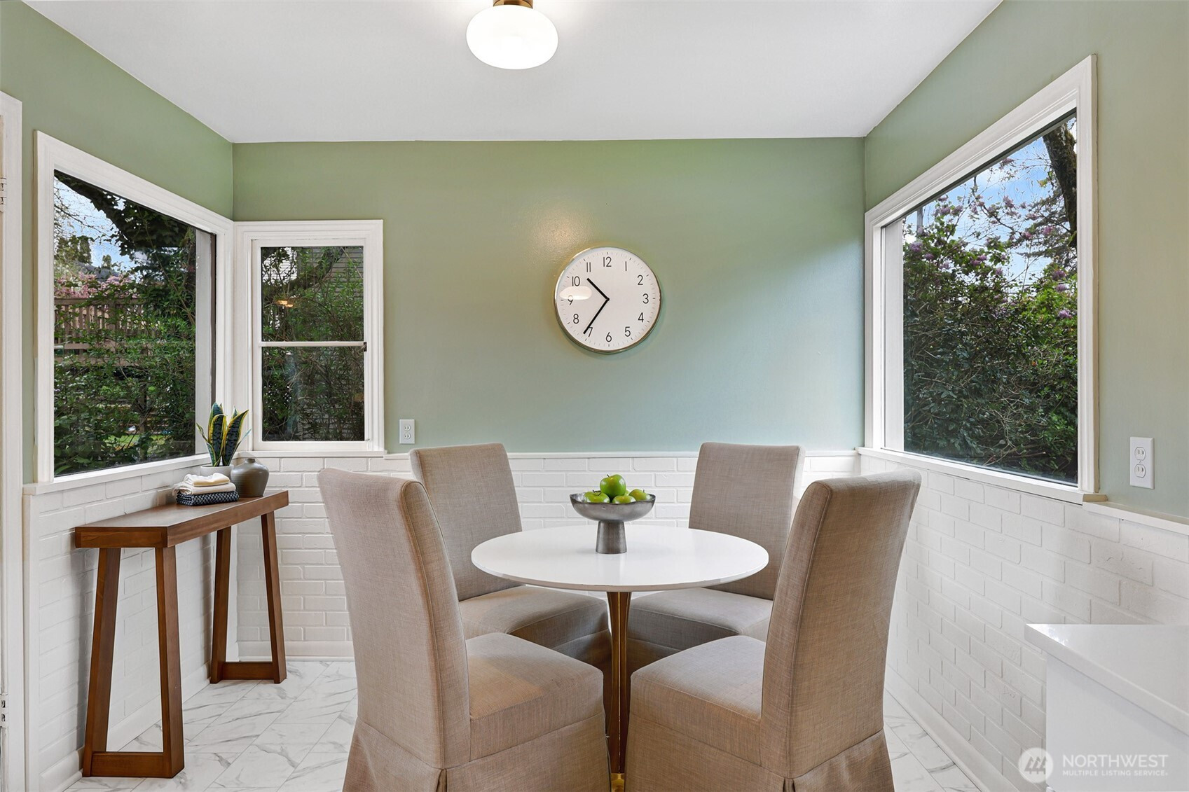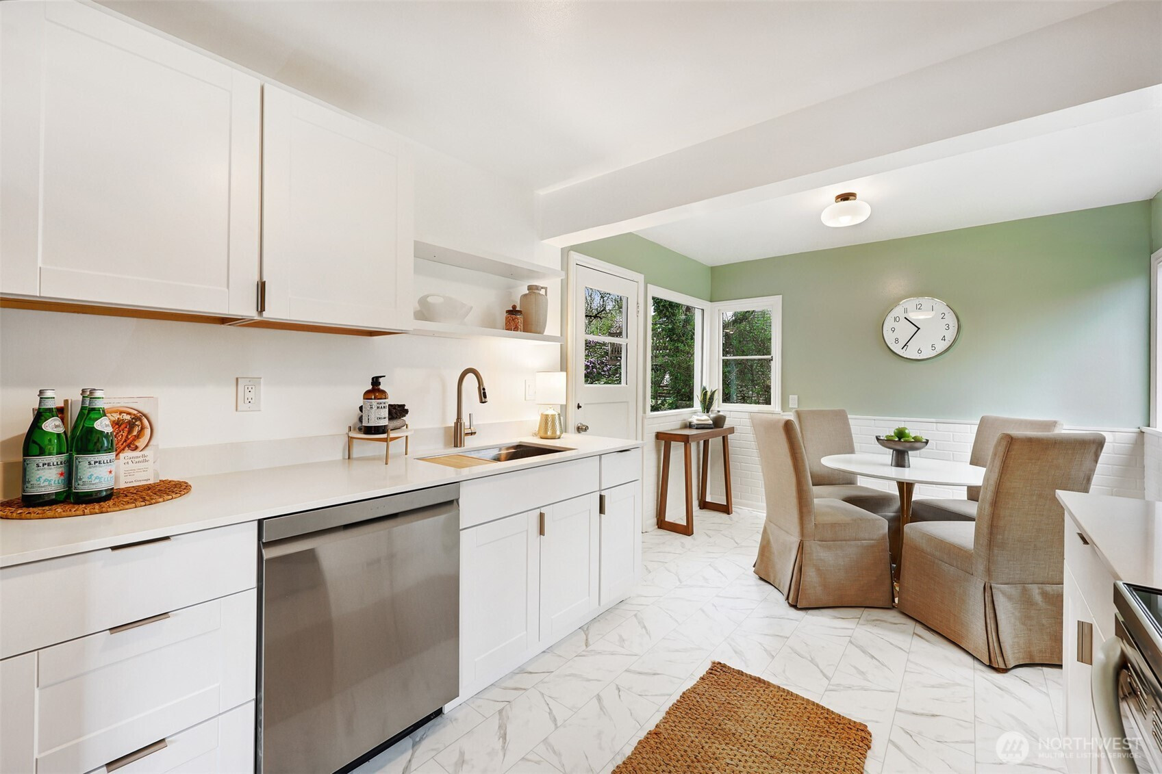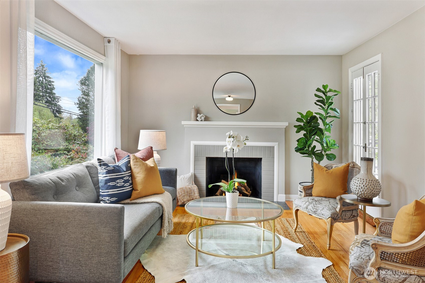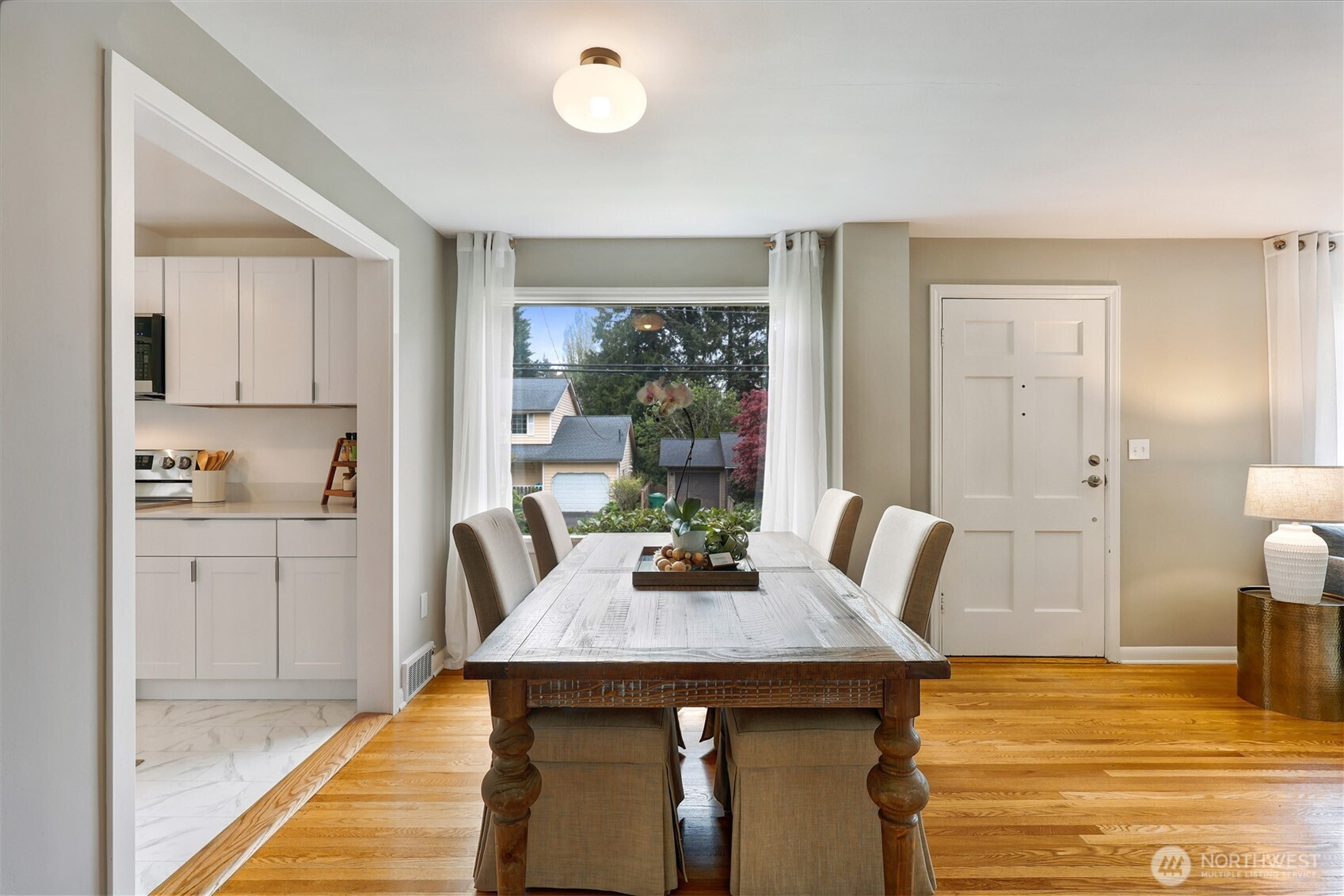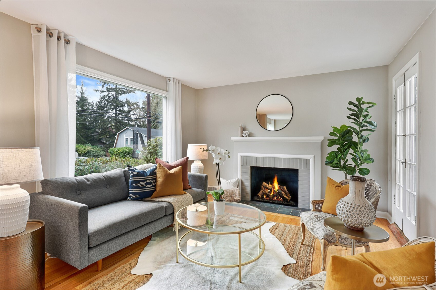 Updated copy per seller requests: Thoughtfully maintained Bryant home situated on a corner lot with elegant, mature landscaping. A gracious living room bathed in natural light and featuring a fireplace and hardwoods welcomes you at the front door. Chefs will love the newly updated kitchen with all new appliances and cabinets. Entertainers will enjoy the dining room adjoining the kitchen and living room, as well as the two outdoor decks for year-round pleasure. The first, accessible right off the kitchen's breakfast nook, offers ample shade for outdoor relaxation. The second is a south-facing rooftop deck off the living room, ideal for enjoying sunny PNW days. Two bedrooms and a full bath are on the main level. Upstairs features a newly updated primary bedroom with an ensuite bath. Lower level flex room, laundry area, non-conforming fourth bedroom, storage space, and a large attached garage. New heat pump HVAC system with central heat and AC. Ideally located on a quiet residential street near popular amenities, including University Village, PCC, Bryant Playground Park, and more. Welcome home!