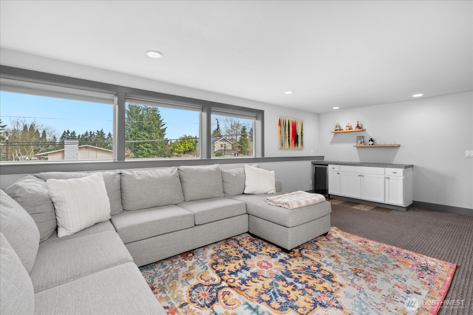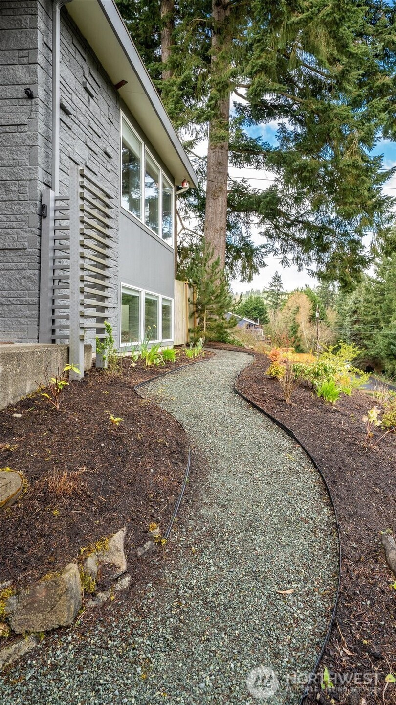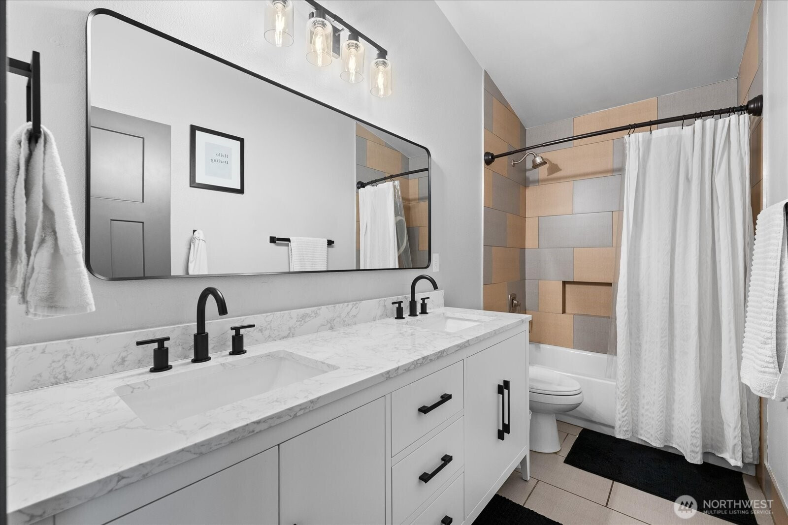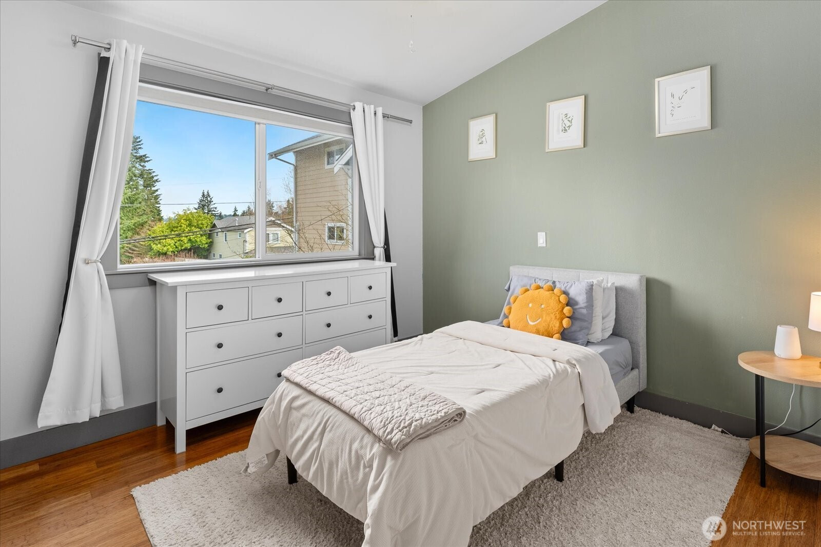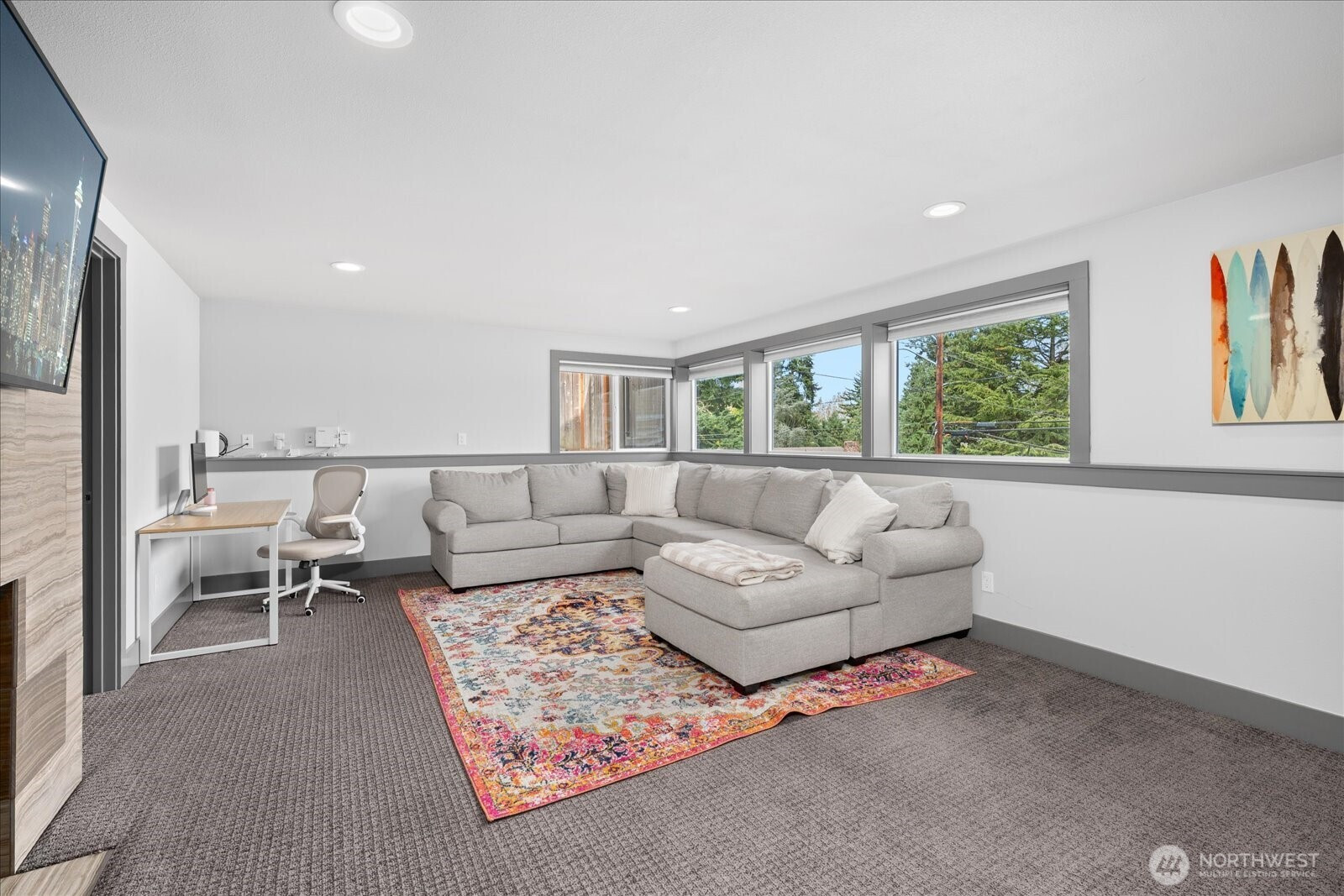 Move in ready! This 4-bedroom, 3-bath home sits on a spacious corner lot, elevated above the street for added privacy and curb appeal. The fully fenced, low-maintenance yard and expansive deck create the perfect setting for outdoor living and entertaining. Inside, vaulted ceilings and abundant natural light highlight the home’s warm, Northwest contemporary style. Stunning bamboo hardwood floors flow throughout the main living areas, while the living room is anchored by a striking stone gas fireplace. The dining area seamlessly connects to the outdoors through a sliding door, opening to a full-length deck that extends your living space. The contemporary kitchen features sleek quartz countertops, large-format tile flooring, and stainless steel appliances—designed for everyday living and hosting. The serene primary suite offers a private retreat with its own sliding door access to the deck, primary bath with heated floors. Downstairs, the lower level boasts a spacious family room with a second gas fireplace, a large laundry room with ample storage, a study/work alcove, and a versatile fourth bedroom with a Murphy bed alongside a ¾ bath. Additional highlights include a garage with built-in sink and work areas, and a location that’s hard to beat—just a short walk to the park and minutes from downtown Kenmore. Fully remodeled in 2015, including a new gas furnace and hot water heater, this home blends modern updates with timeless comfort. Coveted Northshore school district!