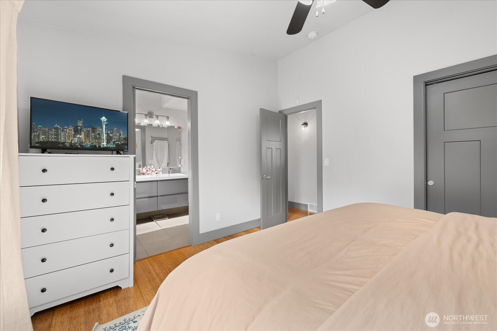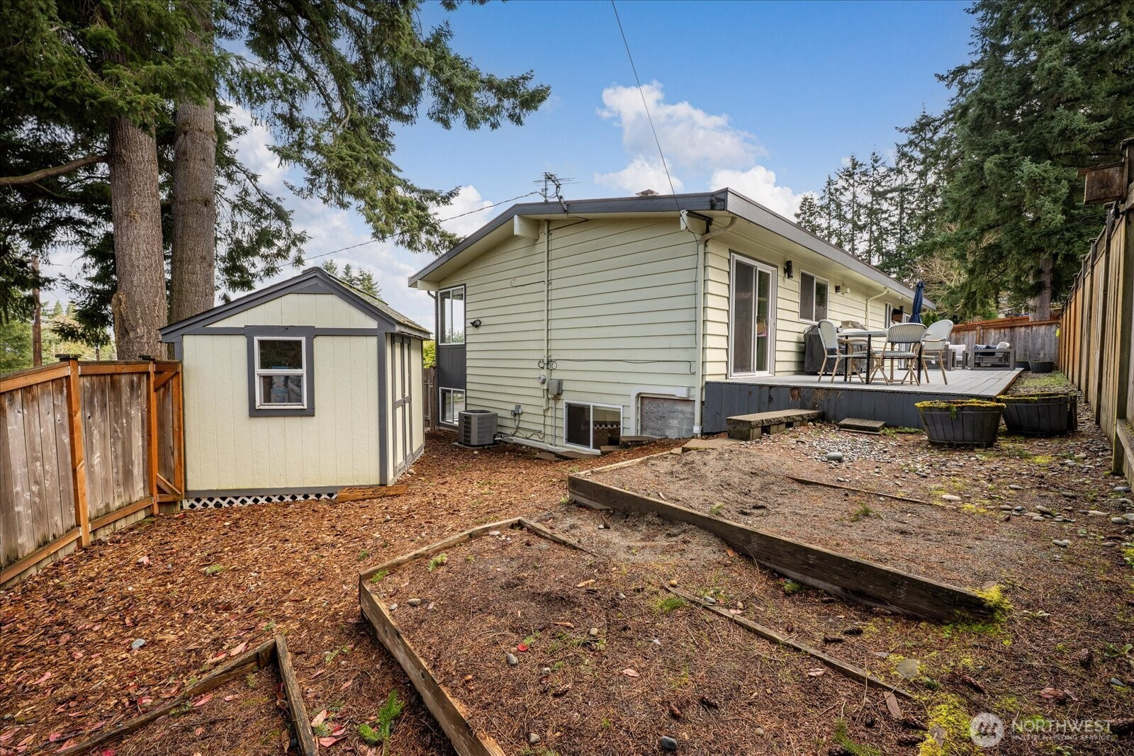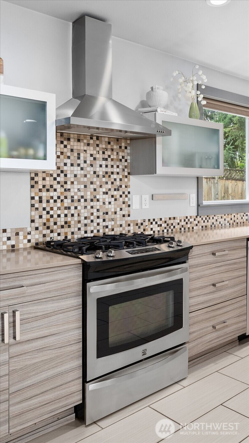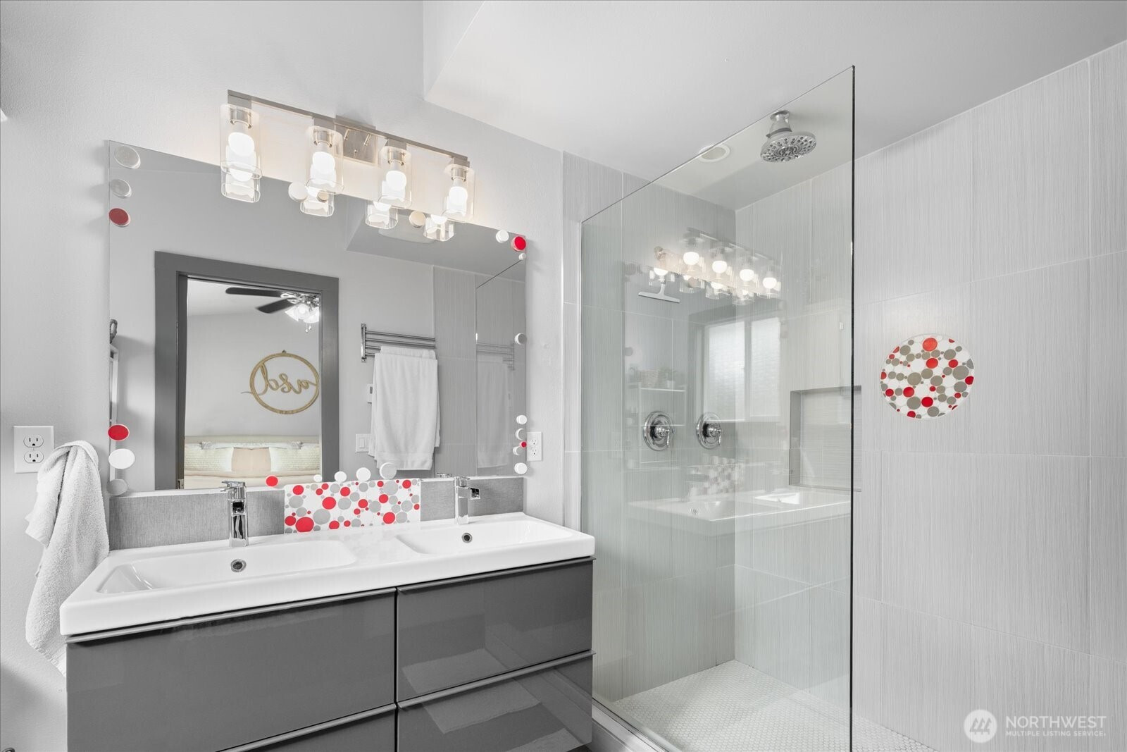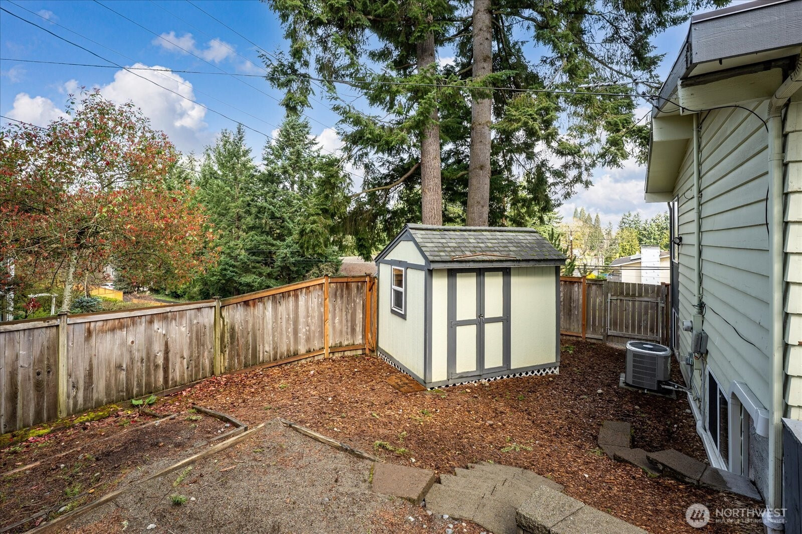 Move in ready! This 4-bedroom, 3-bath home sits on a spacious corner lot, elevated above the street for added privacy and curb appeal. The fully fenced, low-maintenance yard and expansive deck create the perfect setting for outdoor living and entertaining. Inside, vaulted ceilings and abundant natural light highlight the home’s warm, Northwest contemporary style. Stunning bamboo hardwood floors flow throughout the main living areas, while the living room is anchored by a striking stone gas fireplace. The dining area seamlessly connects to the outdoors through a sliding door, opening to a full-length deck that extends your living space. The contemporary kitchen features sleek quartz countertops, large-format tile flooring, and stainless steel appliances—designed for everyday living and hosting. The serene primary suite offers a private retreat with its own sliding door access to the deck, primary bath with heated floors. Downstairs, the lower level boasts a spacious family room with a second gas fireplace, a large laundry room with ample storage, a study/work alcove, and a versatile fourth bedroom with a Murphy bed alongside a ¾ bath. Additional highlights include a garage with built-in sink and work areas, and a location that’s hard to beat—just a short walk to the park and minutes from downtown Kenmore. Fully remodeled in 2015, including a new gas furnace and hot water heater, this home blends modern updates with timeless comfort. Coveted Northshore school district!
