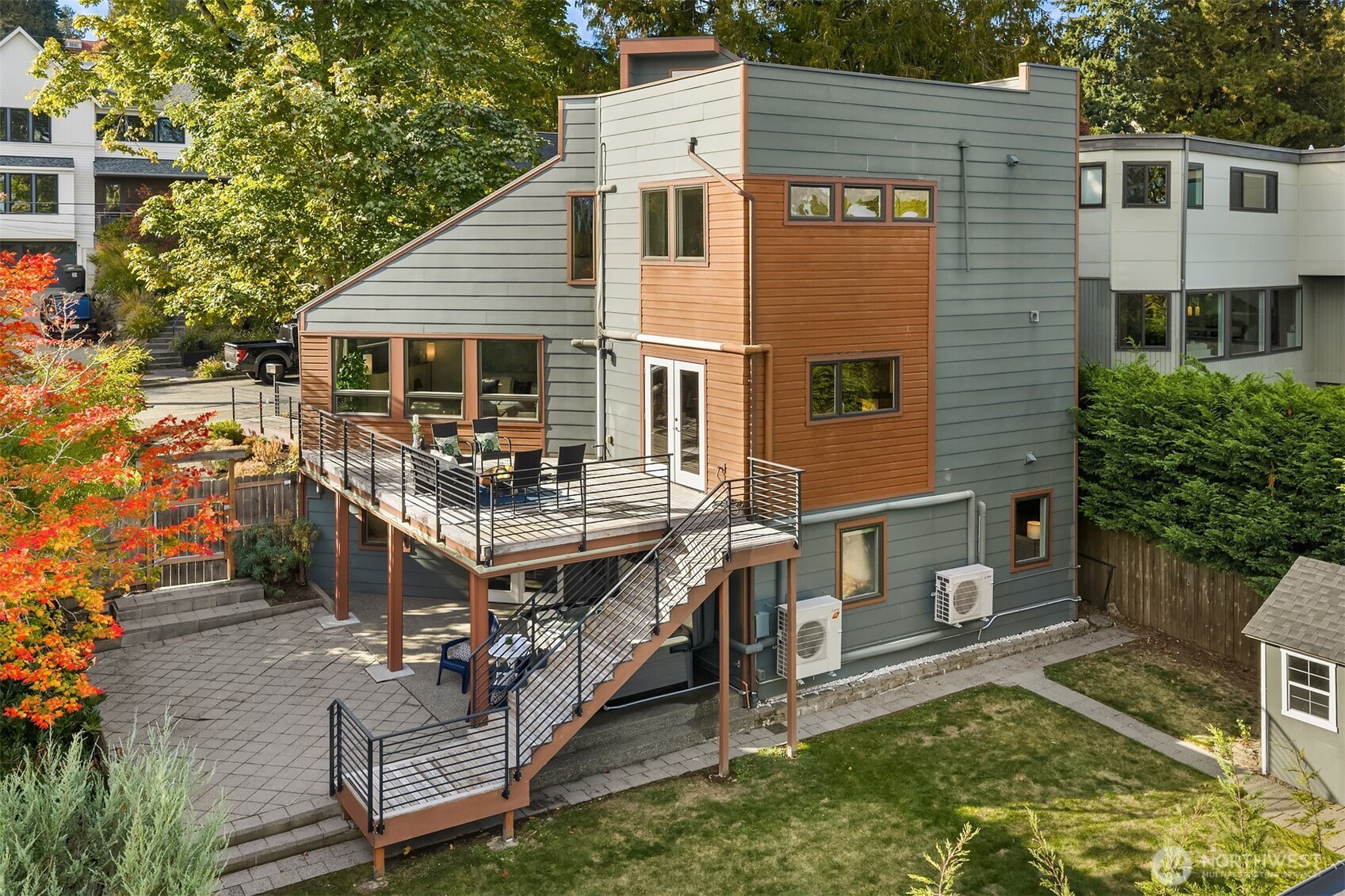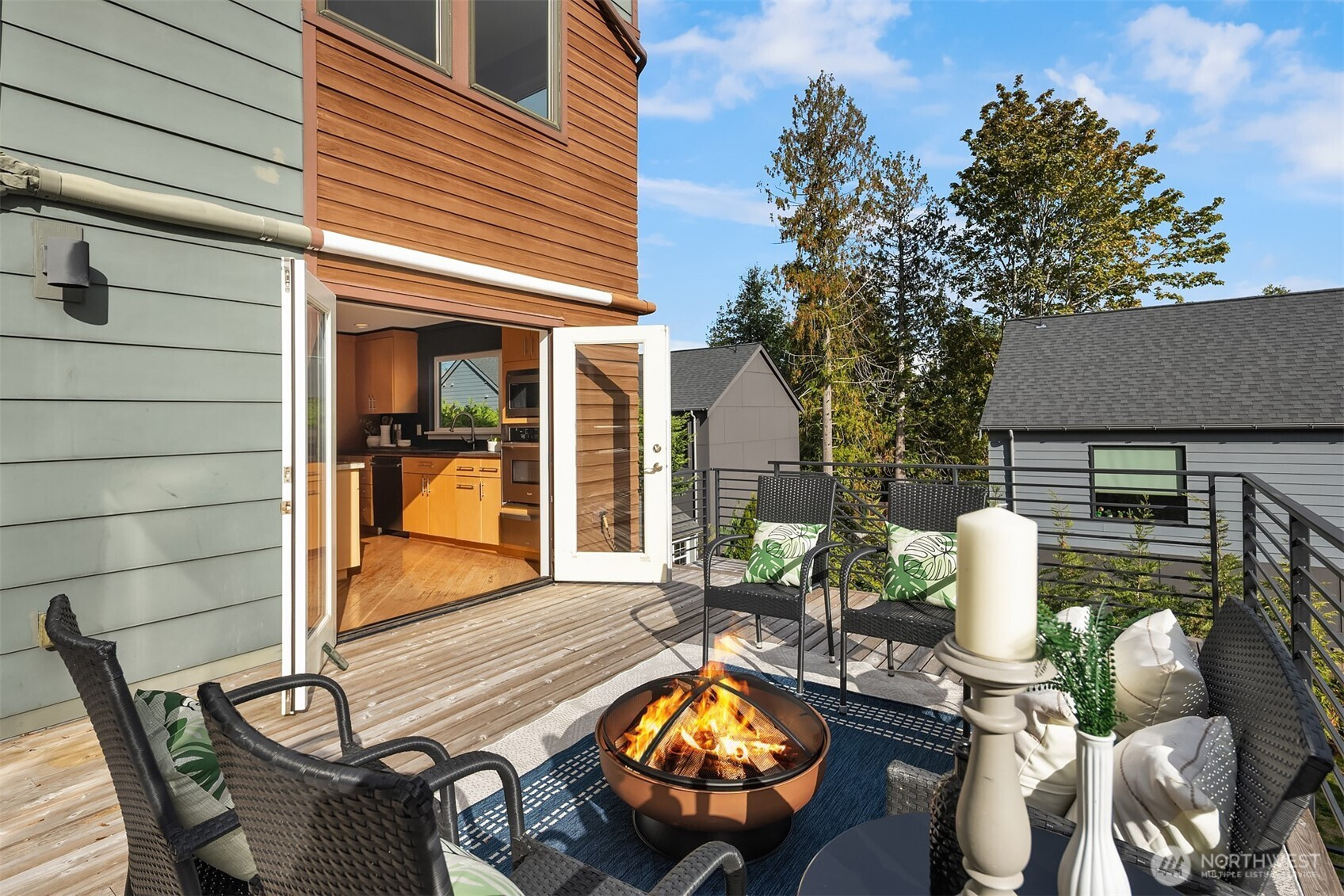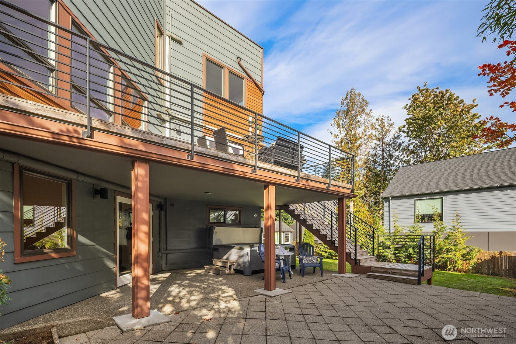 Cool, contemporary, and full of light. Vaulted ceilings, and lots of windows. This home offers open-concept living at its best. The stylish kitchen features granite and concrete counters, stainless appliances, a wet bar, and a walk-in pantry/utility room. Kitchen opens to a spacious deck made for entertaining. Upstairs, the primary suite feels like a retreat with its soaking tub, rain shower, and walk-in closet. The rooftop deck takes it up a notch with its own wet bar and gas BBQ hookup — perfect for sunset hangouts. Downstairs offers flexible space with 3 bedrooms, full bath, and a cozy rec room that opens to a large patio, private yard and newer salt water hot tub. Fresh paint, new carpet, beautifully staged — this home is a total gem.