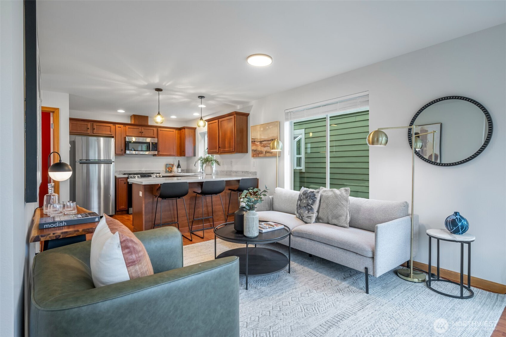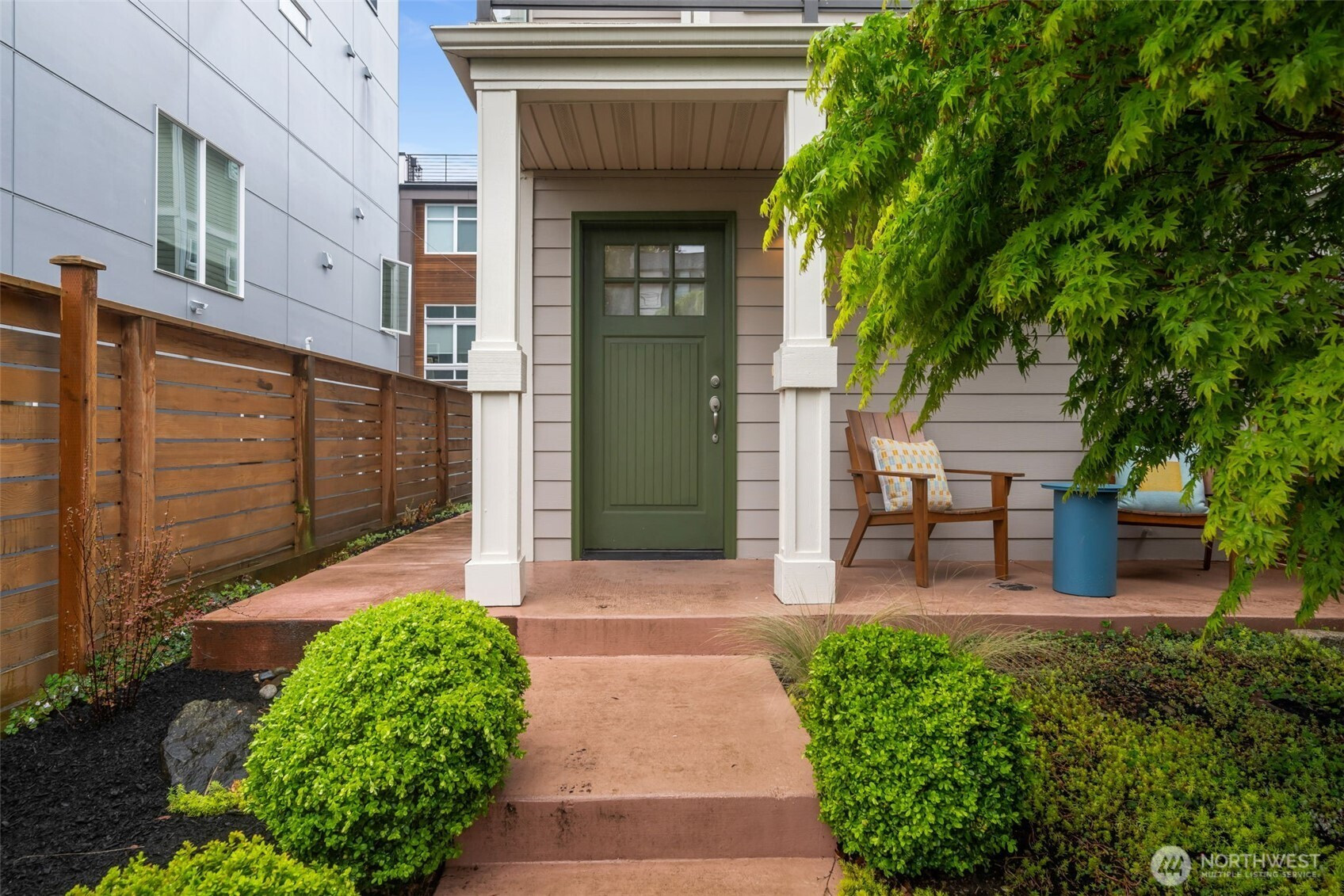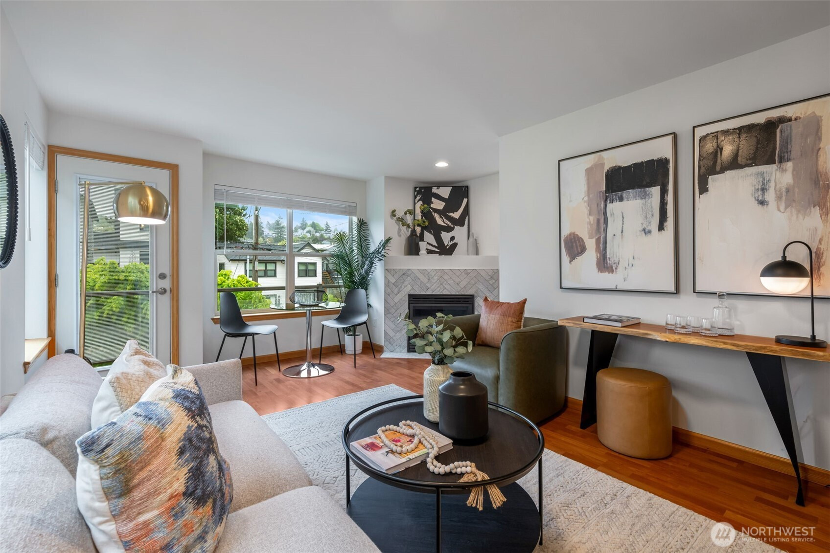 Rare stand-alone home with no shared walls, no HOA, and an attached garage—an exceptional find! Ideally located in the sought-after Stumbletown micro-neighborhood of West Woodland, quaintly tucked between Phinney Ridge and Ballard. The main living level on the second floor features an open-concept layout with an updated kitchen, eating bar, dining space, and a spacious living room anchored by a cozy gas fireplace. Upstairs, the vaulted ceiling primary suite offers an en-suite bath and is complemented by a second vaulted guest bedroom. Enjoy morning coffee on your balcony or gardening in the private, fenced front yard. Leave the car behind and explore nearby parks, cafes, and the vibrant 65th Street corridor—home to local favorites like Mainstay, Ginger & Scallion, and Bambino. Easy access to Hwy 99 and nearby transit makes commuting downtown seamless.