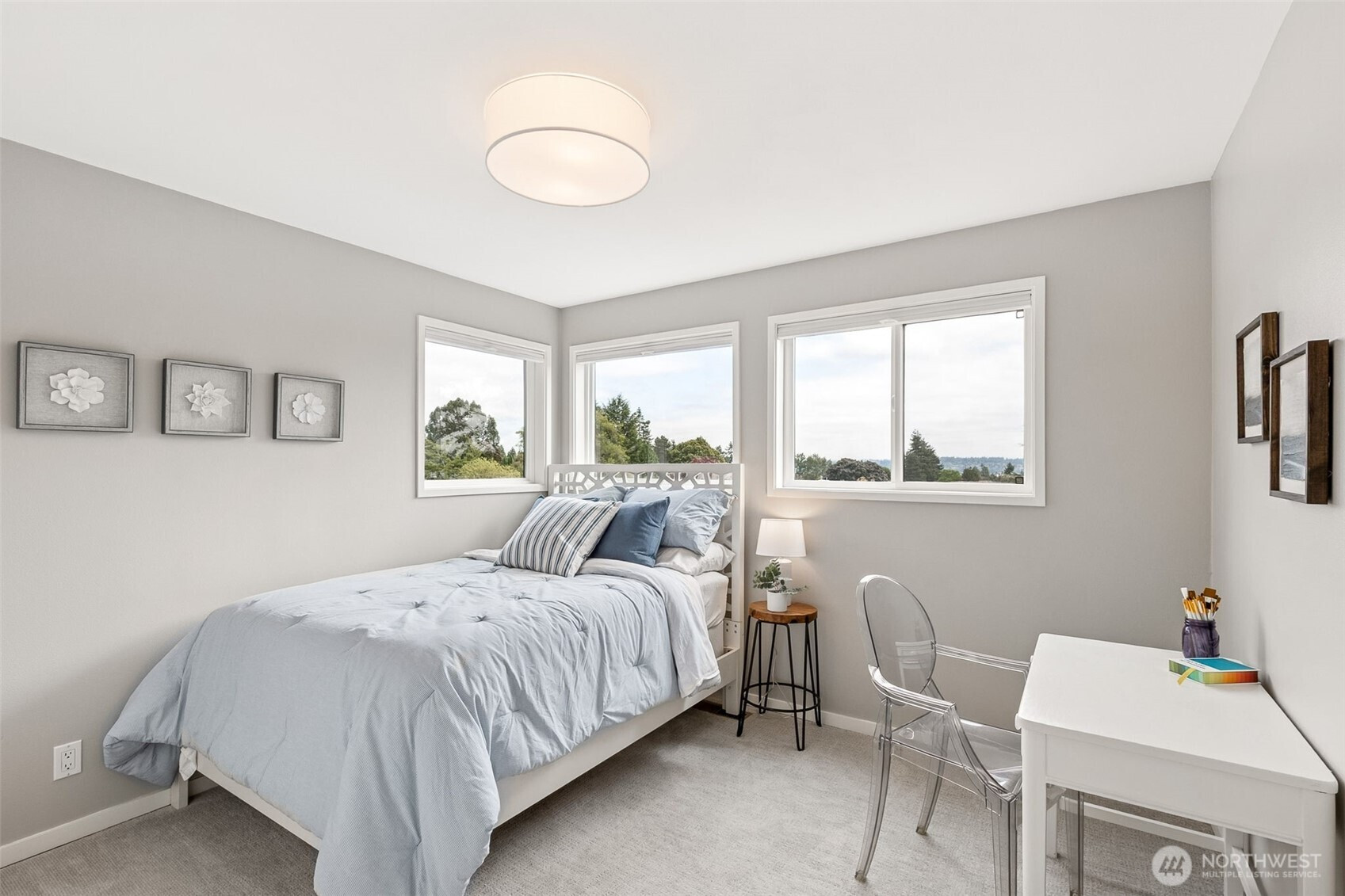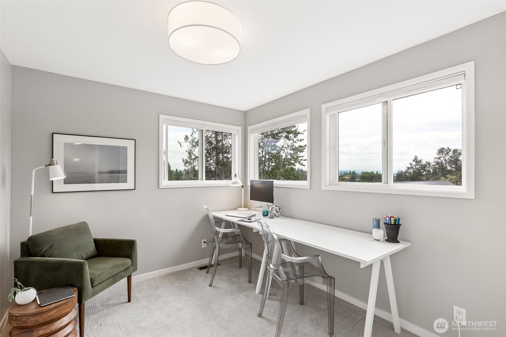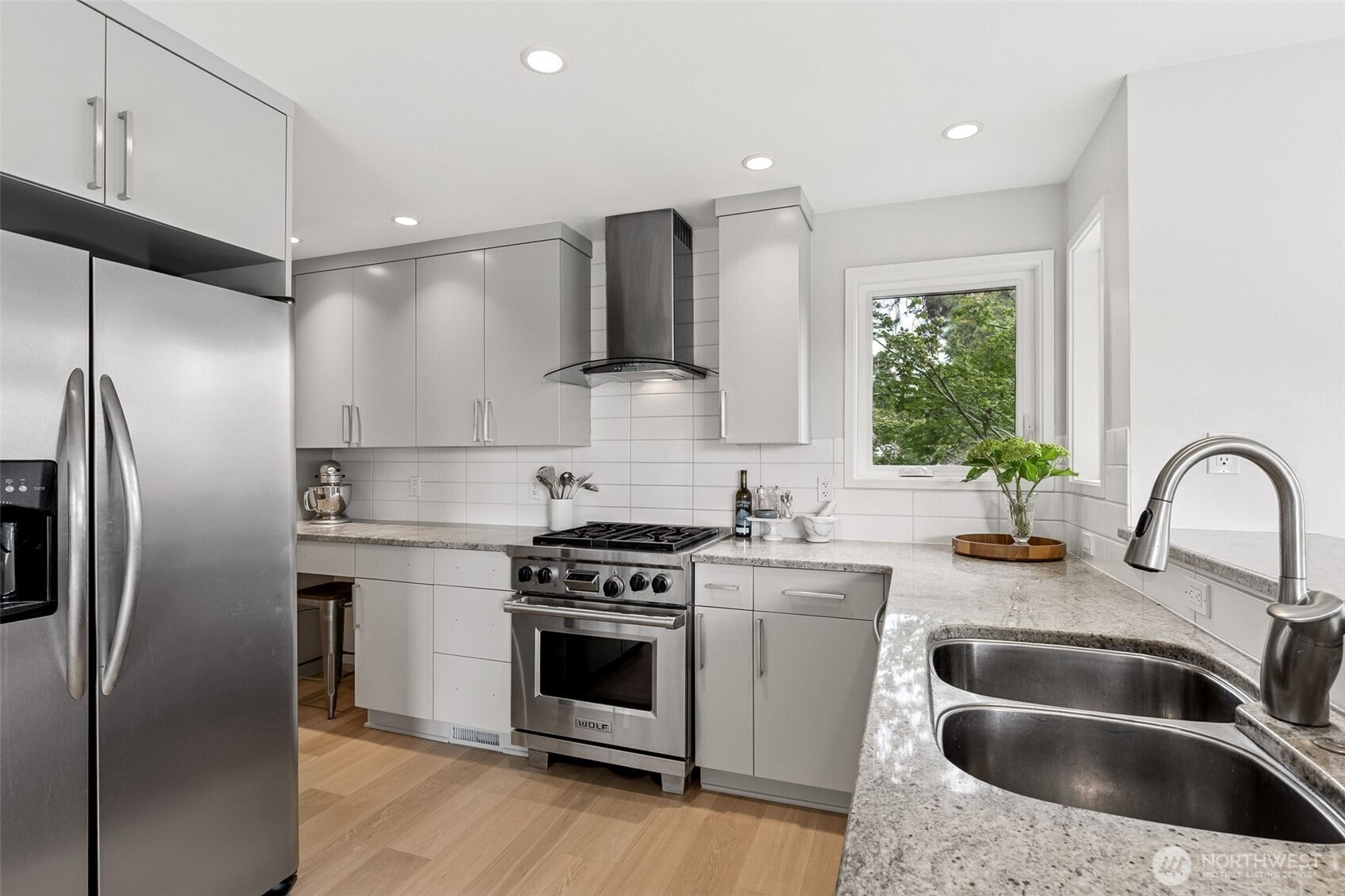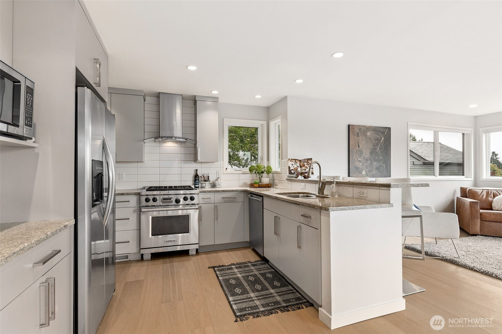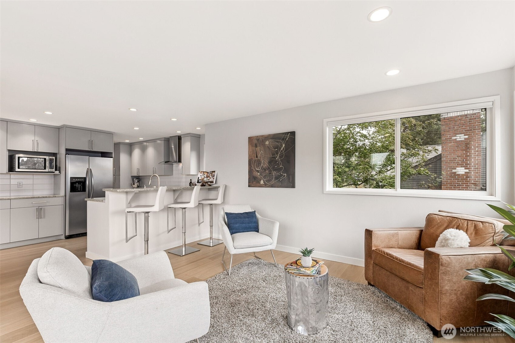 Modern and beautifully updated Contemporary in the heart of Hawthorne Hills, known for its top-rated schools, nearby parks, and convenient shopping. This home offers 4 bedrooms all on the same floor, including a spacious Primary Suite. The open-concept layout is ideal for modern living and entertaining, with stunning new hardwood floors and new carpet throughout. New roof, newer windows and thoughtful updates in every room. Step outside to a large, fully fenced backyard with mature landscaping, ideal for relaxing or hosting, and enjoy gas hook-up at the grill for easy outdoor dining. Large 2-car garage and bonus storage. Mountain & peekaboo lake views. This turnkey home blends comfort, style, & location. Close to Children's, UW & U Village.