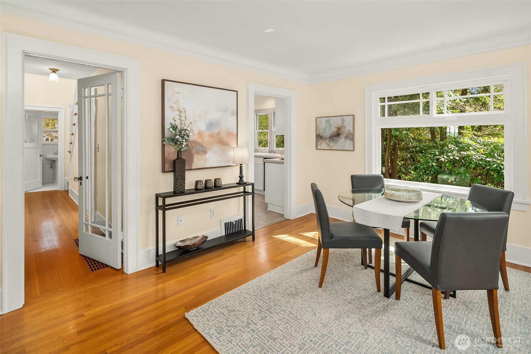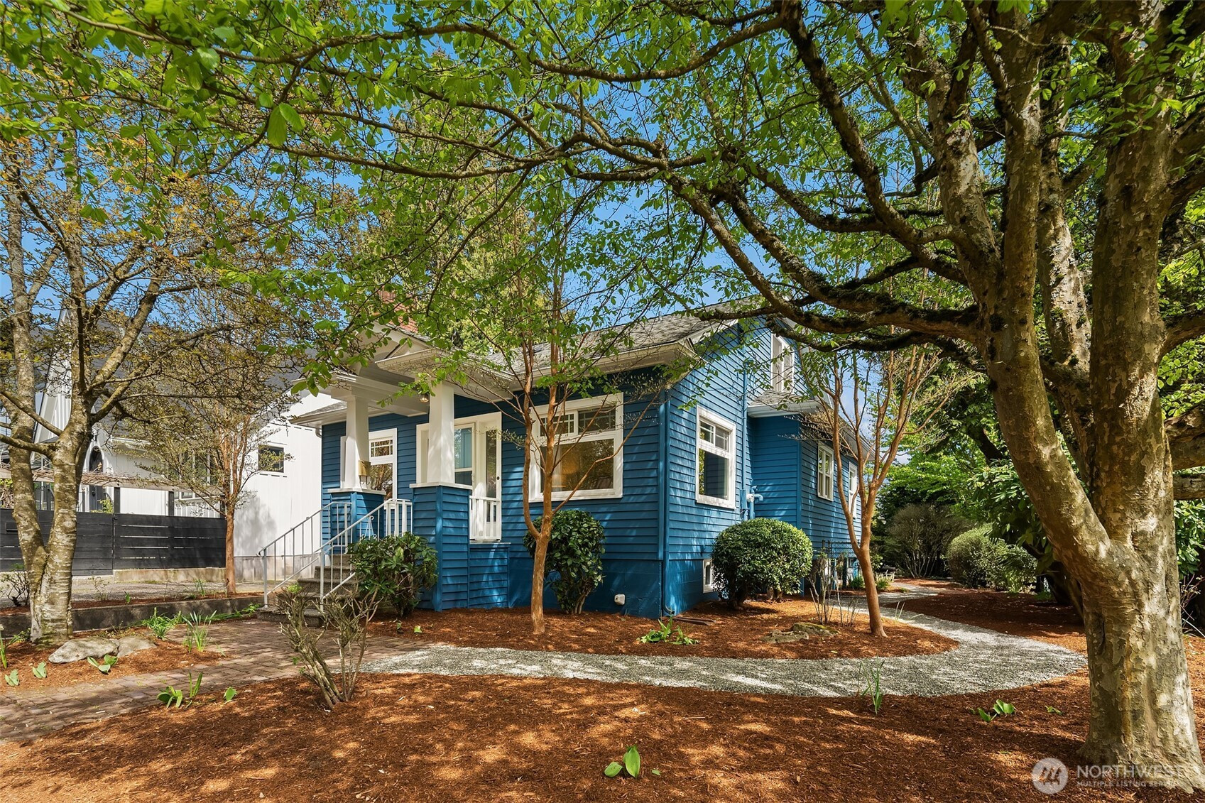 Welcome to the quintessential Seattle neighborhood of Bryant! This charming 1926 craftsman home exudes timeless appeal and is nestled on a beautiful, scenic street in this wonderful neighborhood. The bright and cheerful living room features large picture windows, coved ceilings, beautiful hardwood floors, built-in bookcases, and a cozy gas fireplace. A vaulted staircase illuminated by a gorgeous skylight leads you to the upper floor, where the spacious primary suite is located. This inviting suite includes a generous bathroom with two pedestal sinks, a deep bathtub, and a walk-in closet. The main floor welcomes you with an open, inviting layout, two comfortable bedrooms, and an office with classic wainscoting that opens to a fully fenced backyard—perfect for relaxing or entertaining. The delightful covered porches at the front and back truly enhance the character of this beautiful craftsman home. Downstairs is a large basement with tons of potential. There is an attached one-car garage plus additional off-street parking. Imagine living just minutes from University Village, where you can enjoy a variety of shops and wonderful restaurants. Nearby, you'll find beautiful neighborhood parks, the UW campus, the Burke-Gilman Trail, Children’s Hospital, and the convenient light rail. This home has everything you need for a comfortable, vibrant, and welcoming lifestyle!