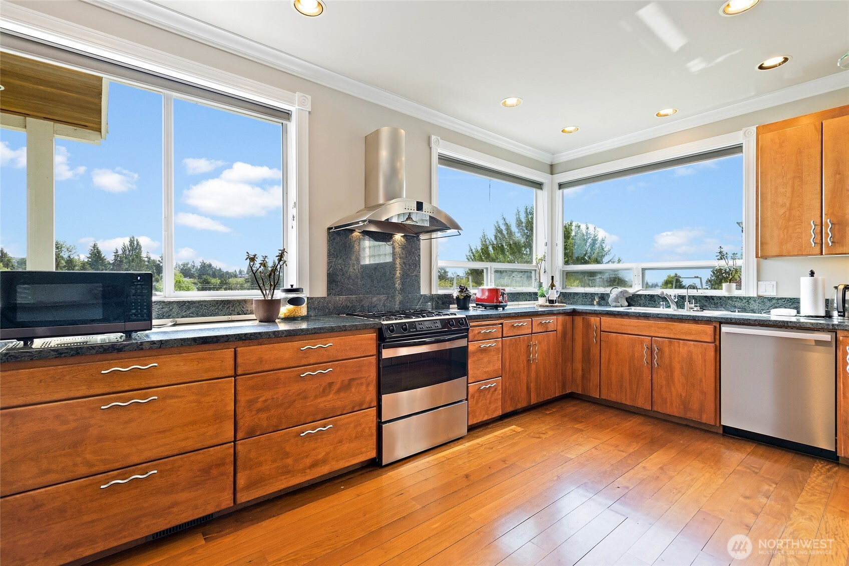 Stunning home in the sought-after Bryant neighborhood, thoughtfully updated throughout with sweeping territorial views from multiple vantage points. The main floor showcases an open layout that seamlessly connects the chef’s kitchen, living, and dining areas, creating an inviting space for gatherings and daily living. French doors open to a spacious covered deck, perfect for year-round enjoyment. A bedroom and full bath on this level provide flexibility for guests, work-from-home needs, or multi-generational living. Upstairs, the primary suite offers a serene retreat with vaulted ceilings, a cozy sitting area, fireplace, office nook, walk-in closet, bonus loft, and two private decks. The spa-inspired five-piece ensuite features a soaking tub for ultimate relaxation. The lower level includes a legal ADU with a private entrance, full kitchen, two bedrooms, and a full bath with steam shower—ideal for rental income or extended living options. Mortgage savings may be available for buyers of this exceptional property.