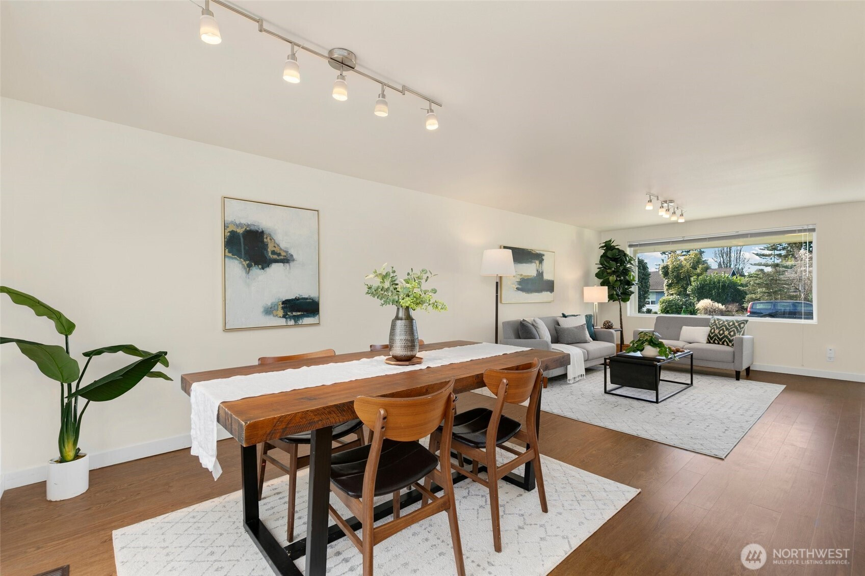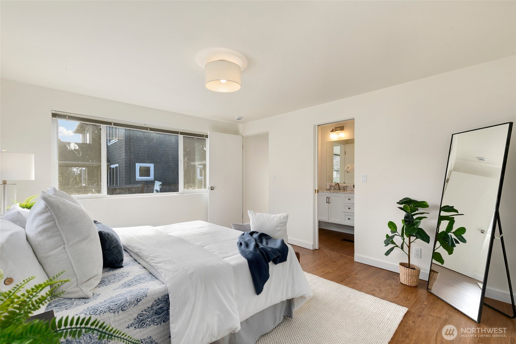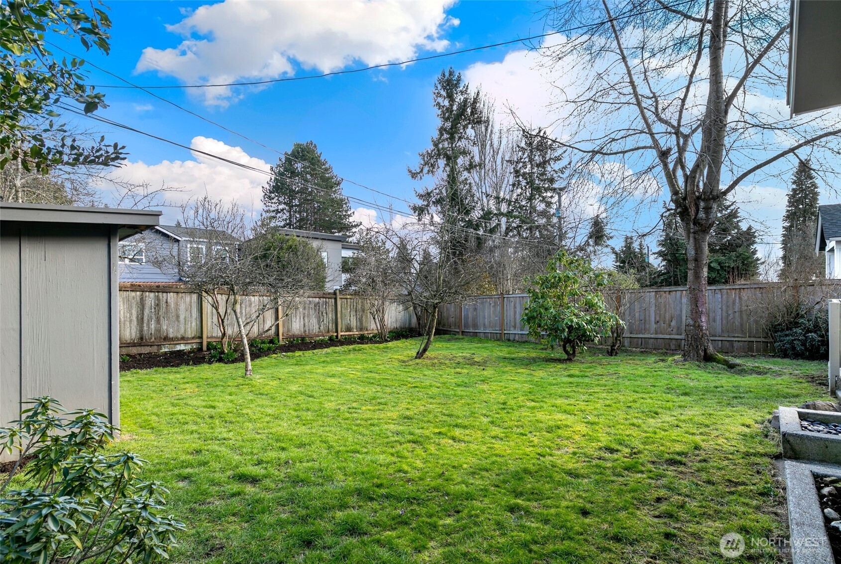 Tucked along a quiet Hawthorne Hills street, this refreshed Midcentury rambler offers effortless one-level living on a generous 6,750 sq ft lot. Sunlight pours through expansive windows highlighting wide-plank luxury vinyl flooring and a classic brick fireplace that anchors the living space. The open layout flows seamlessly into a thoughtfully updated kitchen with crisp cabinetry, butcher block counters, and modern finishes. Sliding doors extend the dining area outdoors to an oversized patio, perfect for summer dinners and relaxed entertaining. The fully fenced backyard features mature landscaping, garden space, and room to roam. Three bedrooms include a spacious primary suite with en-suite bath, plus an additional full guest bath. Attached garage with lofted storage. Updated systems, roof, paint, and stylish kitchen/baths make this move-in ready. Located in sought-after Hawthorne Hills with top-rated schools and unbeatable convenience, you're just minutes to Metropolitan Market, PCC, University Village, neighborhood parks, and everyday amenities. Enjoy quick access to downtown Seattle, the Eastside, UW, and Children's Hospital—making this an exceptional place to call home.