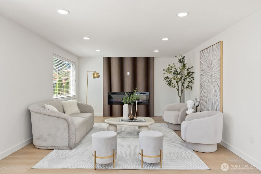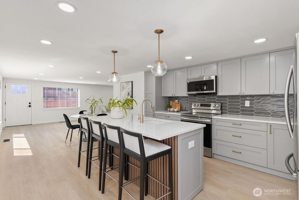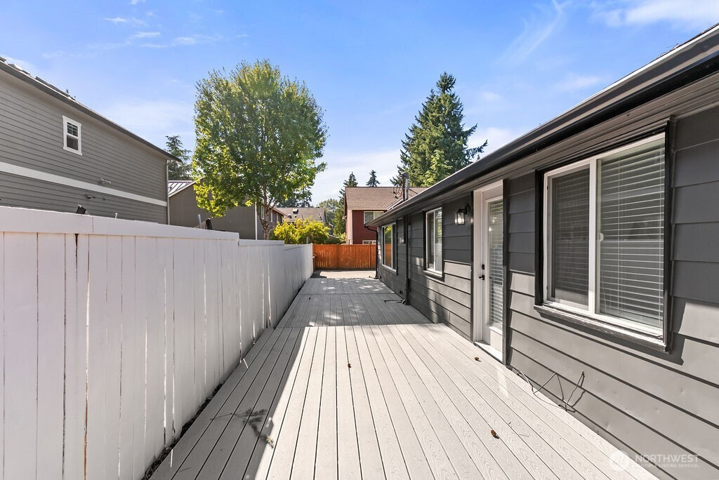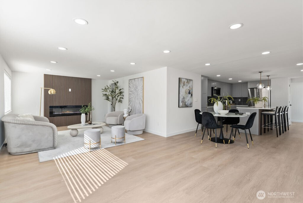 Midcentury rambler featuring 3 bedrooms and 2 bathrooms in the highly rated Northshore School District. Nestled in the heart of a welcoming neighborhood, this private oasis is just minutes from Lake Washington, close to scenic parks, trails, and local amenities. The open-concept layout showcases an accent electric fireplace, gourmet kitchen with stainless steel appliances, Shaker cabinets, custom backsplash, and durable LVP flooring. Both bathrooms are beautifully customized, and the home includes a fully fenced yard, lush landscaping, and a spacious Trex deck perfect for entertaining. 10 min to I-405 and I-5. A true gem you won’t want to miss! Come See TODAY!