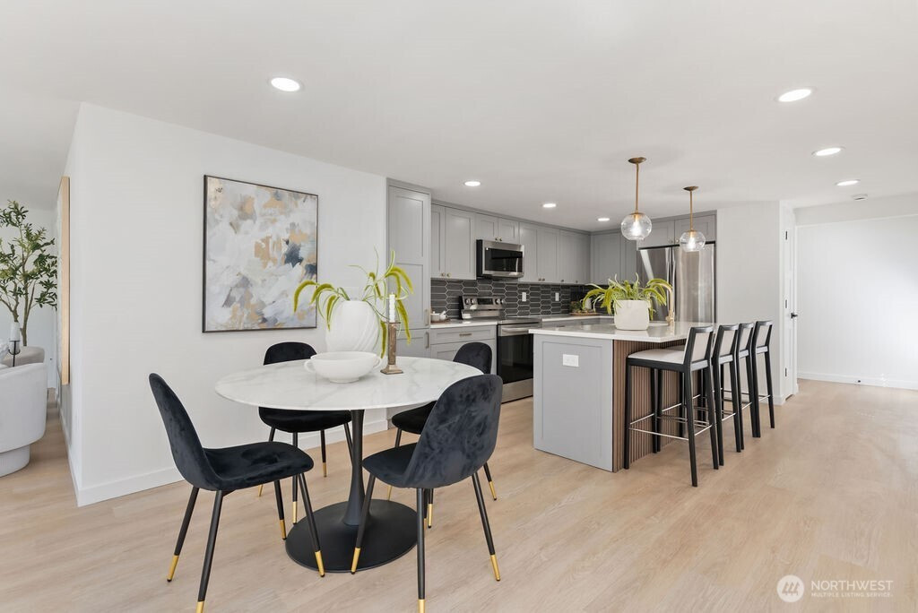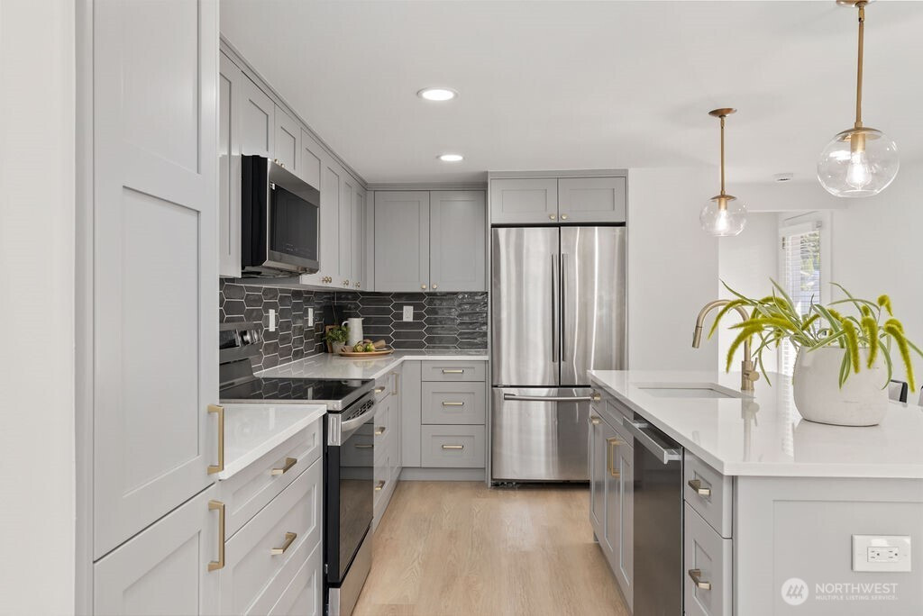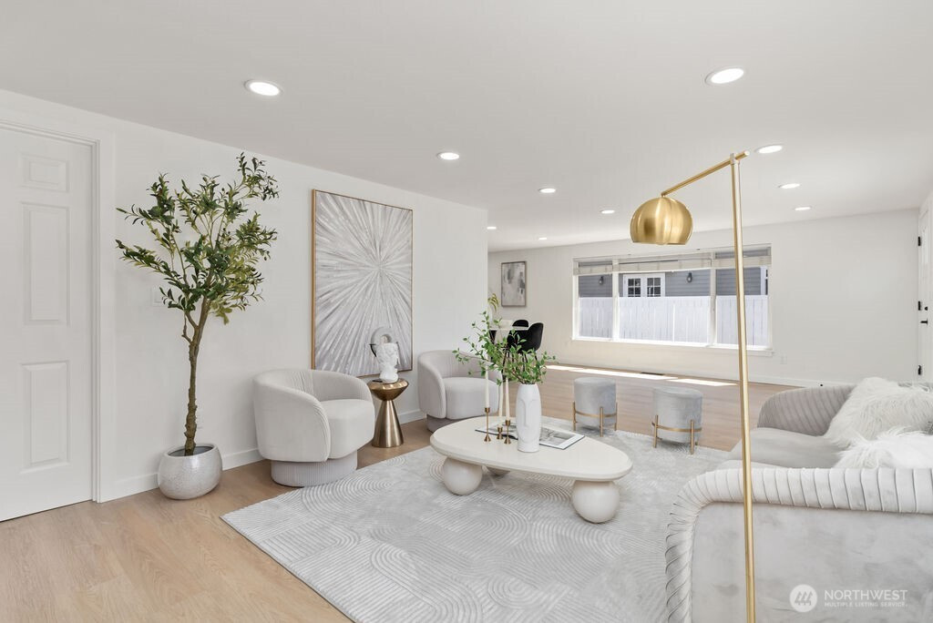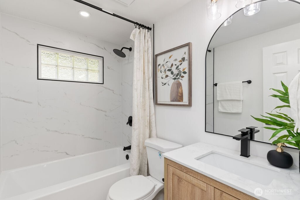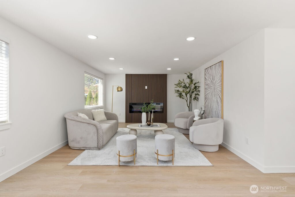Midcentury rambler featuring 3 bedrooms and 2 bathrooms in the highly rated Northshore School District. Nestled in the heart of a welcoming neighborhood, this private oasis is just minutes from Lake Washington, close to scenic parks, trails, and local amenities. The open-concept layout showcases an accent electric fireplace, gourmet kitchen with stainless steel appliances, Shaker cabinets, custom backsplash, and durable LVP flooring. Both bathrooms are beautifully customized, and the home includes a fully fenced yard, lush landscaping, and a spacious Trex deck perfect for entertaining. 10 min to I-405 and I-5. A true gem you won’t want to miss! Come See TODAY!