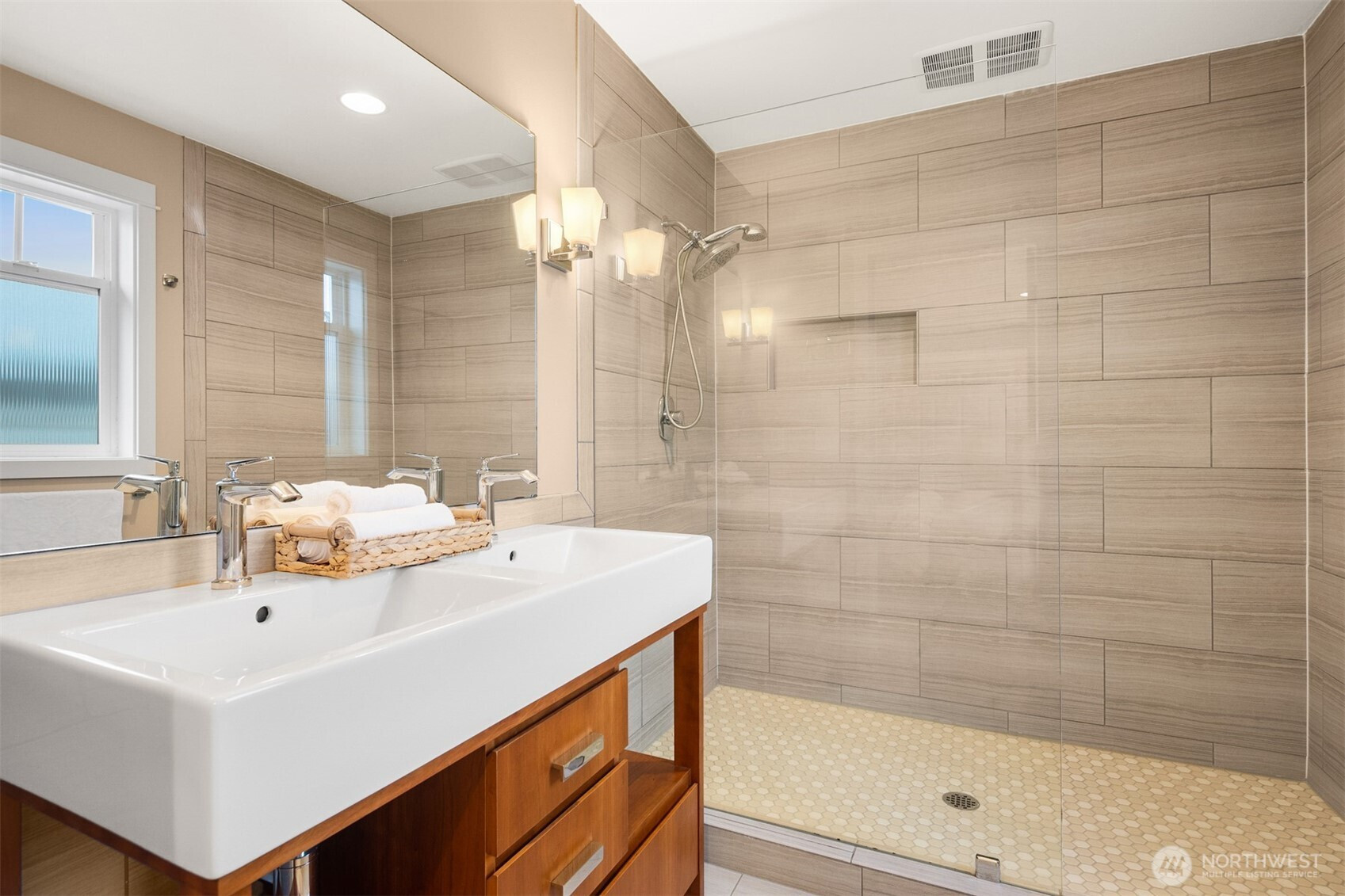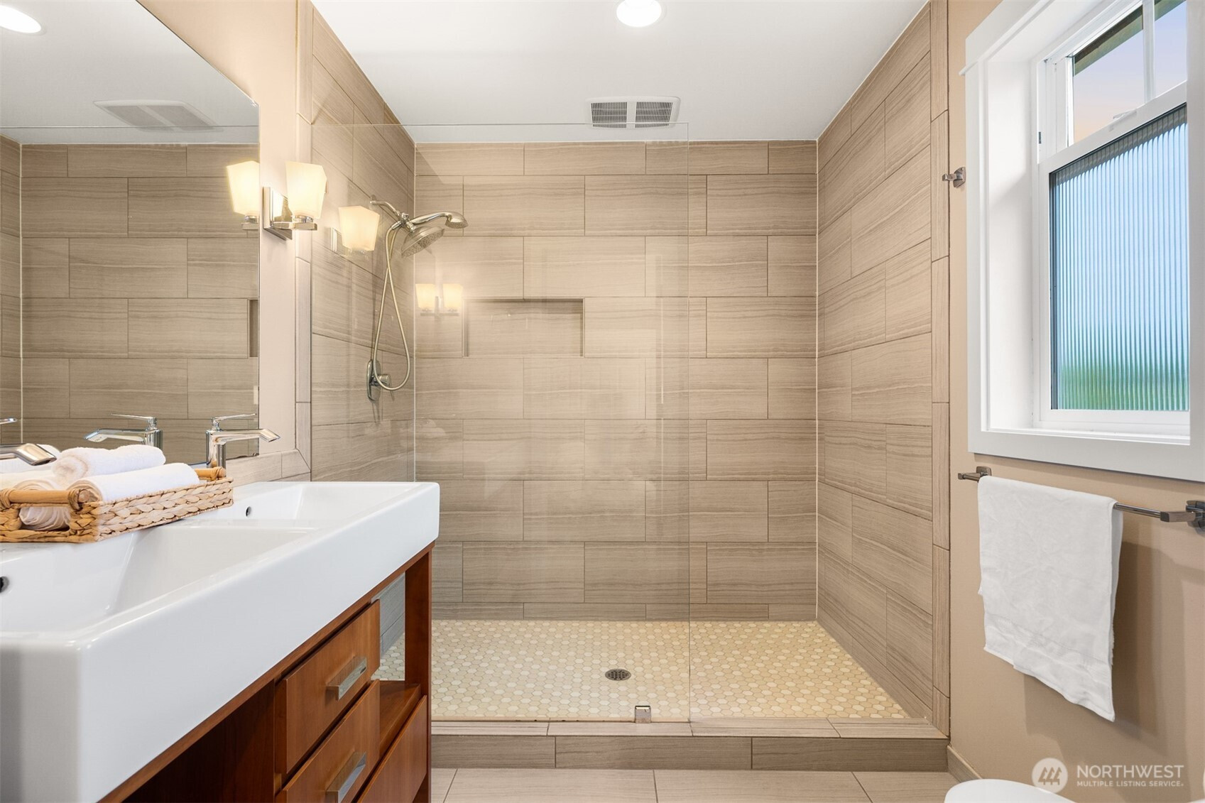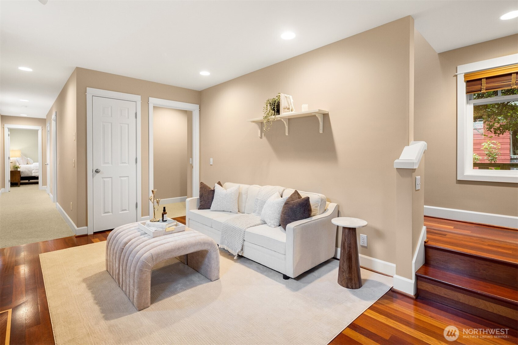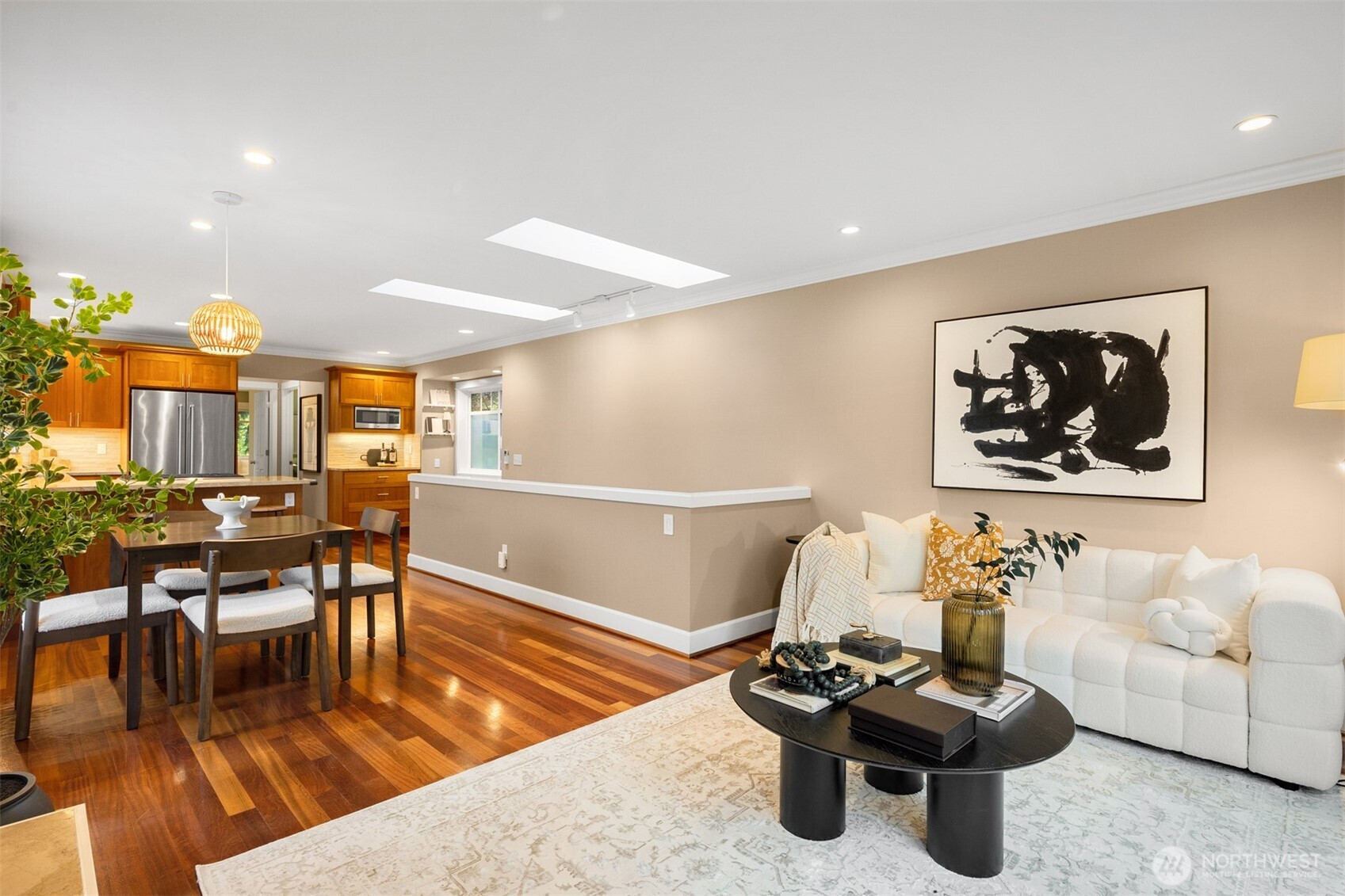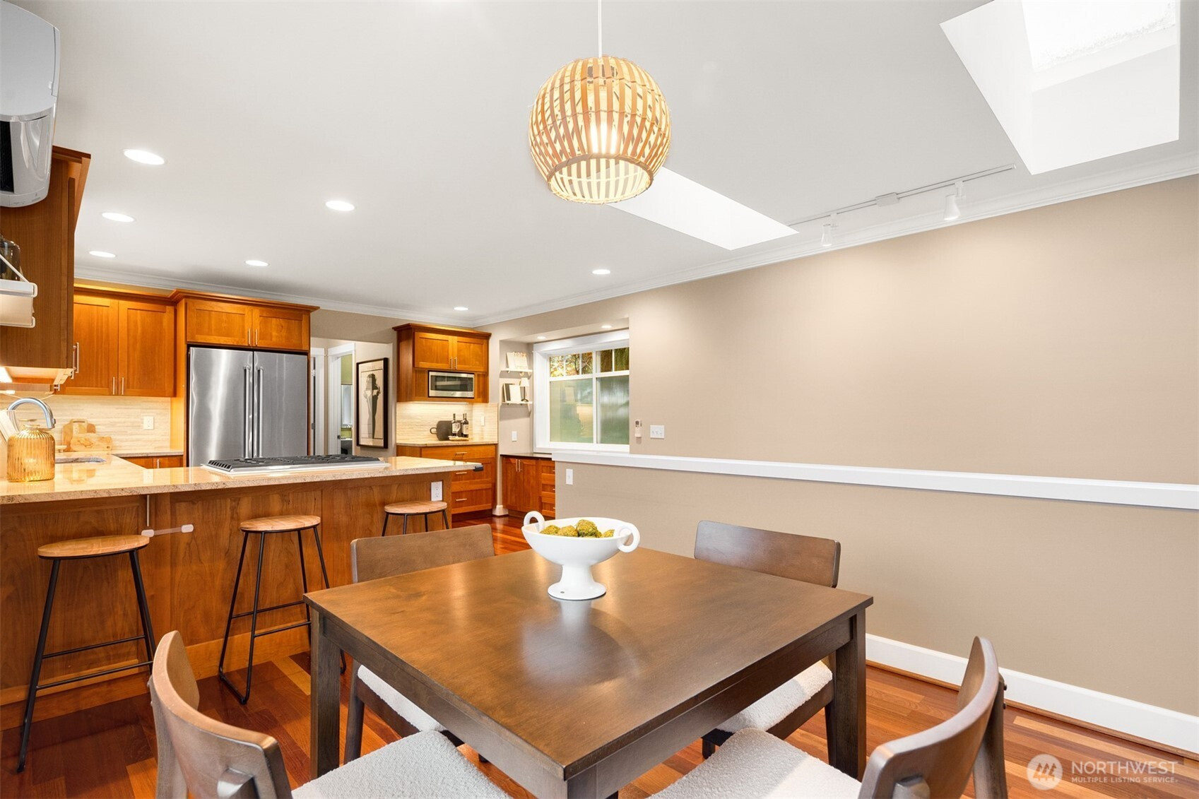 Welcome to this beautifully maintained 2001 Craftsman in the heart of Bryant, offering 1,827 sqft of warm, light-filled living. The upper level features an open-concept layout with rich hardwood floors, a cozy gas fireplace, and seamless flow between the living, dining, and kitchen spaces. The kitchen includes a gas range, bar seating, ample cabinetry, and a bar nook, perfect for entertaining or everyday living. The large primary suite features an ensuite bath, oversized walk-in shower and dual closets. Downstairs, enjoy a second living room with another gas fireplace, two additional bedrooms, and a full bath, ideal for guests, work-from-home, or flexible living. Mini-split heat pump A/C provides efficient comfort throughout. Step outside down the spiral staircase to your private, low-maintenance backyard oasis with a paver patio, creating the perfect setting to relax or host. A 2-car tandem garage offers over 800 sqft with two large storage rooms, giving you plenty of space for parking and storage. Just minutes from University Village, the Burke-Gilman Trail, Metropolitan Market, parks, cafes, and top-rated schools, this home offers incredible walkability with easy access to some of Northeast Seattle’s best amenities. Welcome home!