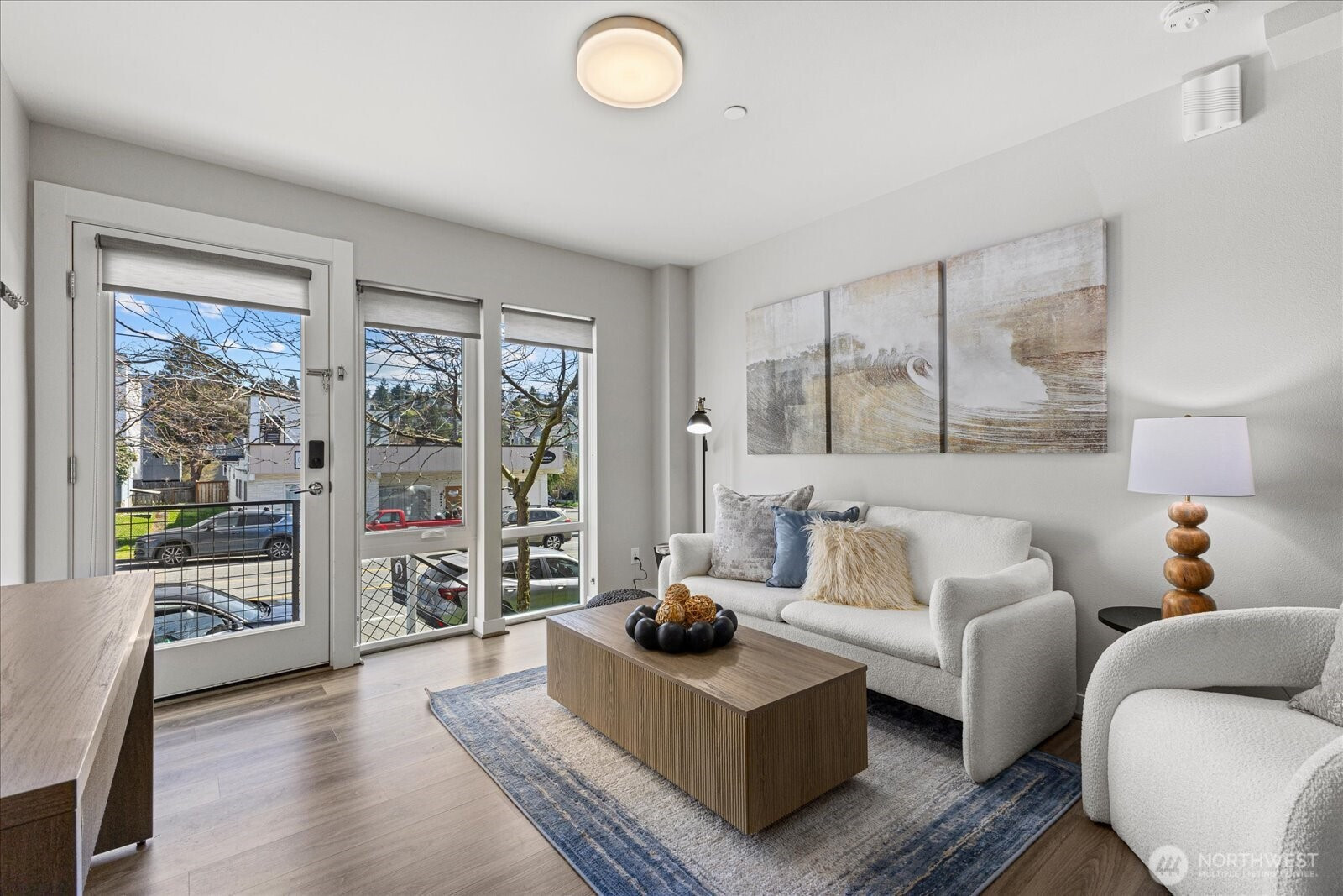 Live the Ballard lifestyle while building equity. Perched just above street level, this smartly designed home places you just steps from the city while offering added privacy. The cozy living room invites you in with warmth and charm, while the kitchen offers room to personalize— add a dining table, bar cart, or island to suit your style. The front bedroom sits just steps from the top-floor primary suite and works perfectly as an office or nursery. Upstairs, the primary retreat features tall ceilings and its own en suite bath, creating a light-filled escape. The home also offers a smart house-hack opportunity with a private lower-level suite, complete with its own en suite bath—ideal for supplemental income, guests, or flexible living. Step outside and feel the momentum of a neighborhood on the rise, with brand-new luxury townhomes next door signaling strong growth and investment potential. All this, less than a mile from the heart of Ballard— home to some of Seattle’s best restaurants, bars, fitness studios, and everyday conveniences. Even closer, just two blocks away, enjoy a walkable strip of local coffee shops, dining, and nightlife. Urban energy meets everyday ease, with quick street parking plus your own dedicated off-street parking space—with room for an outdoor storage container. Truly the best of both worlds.