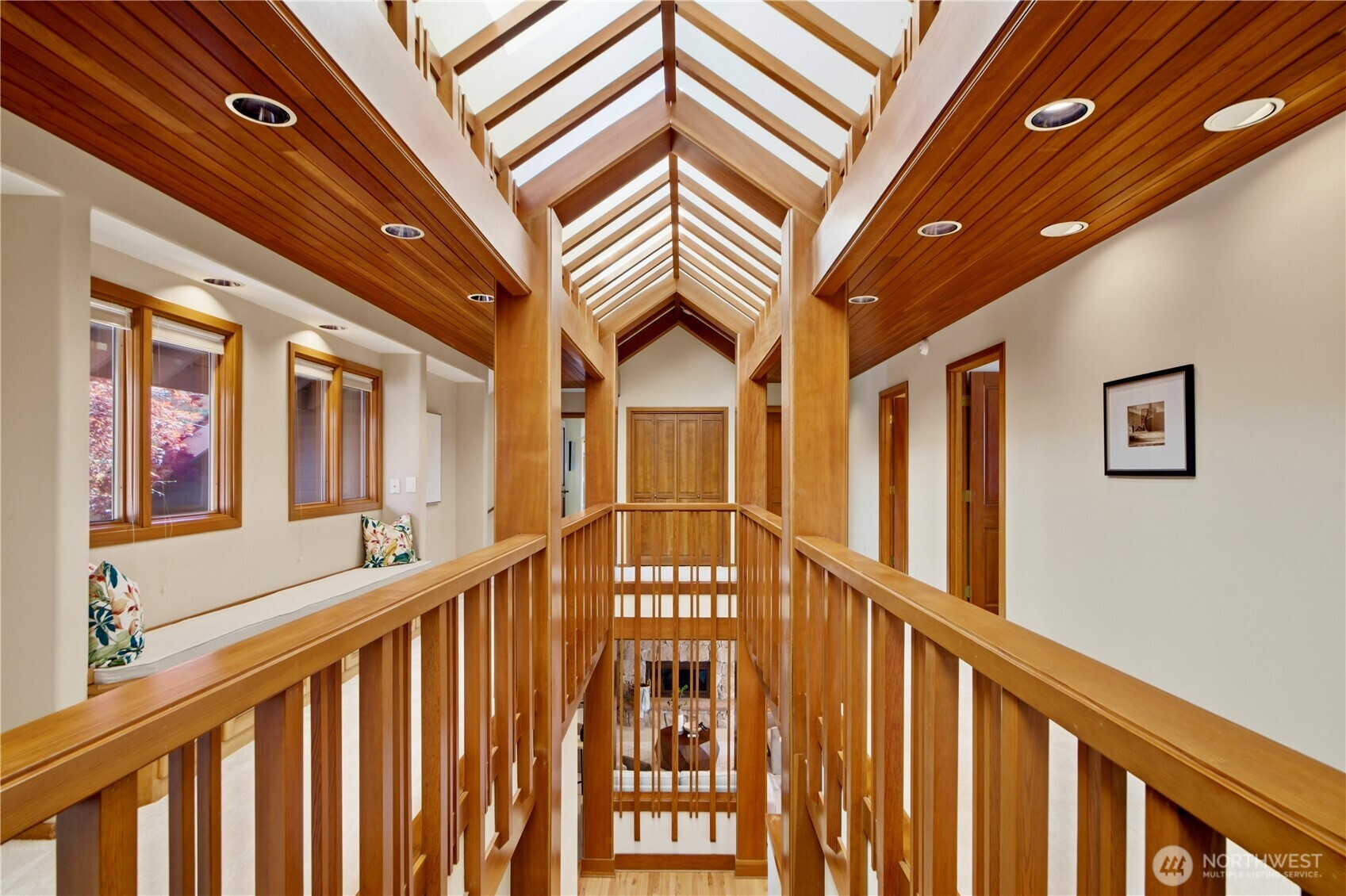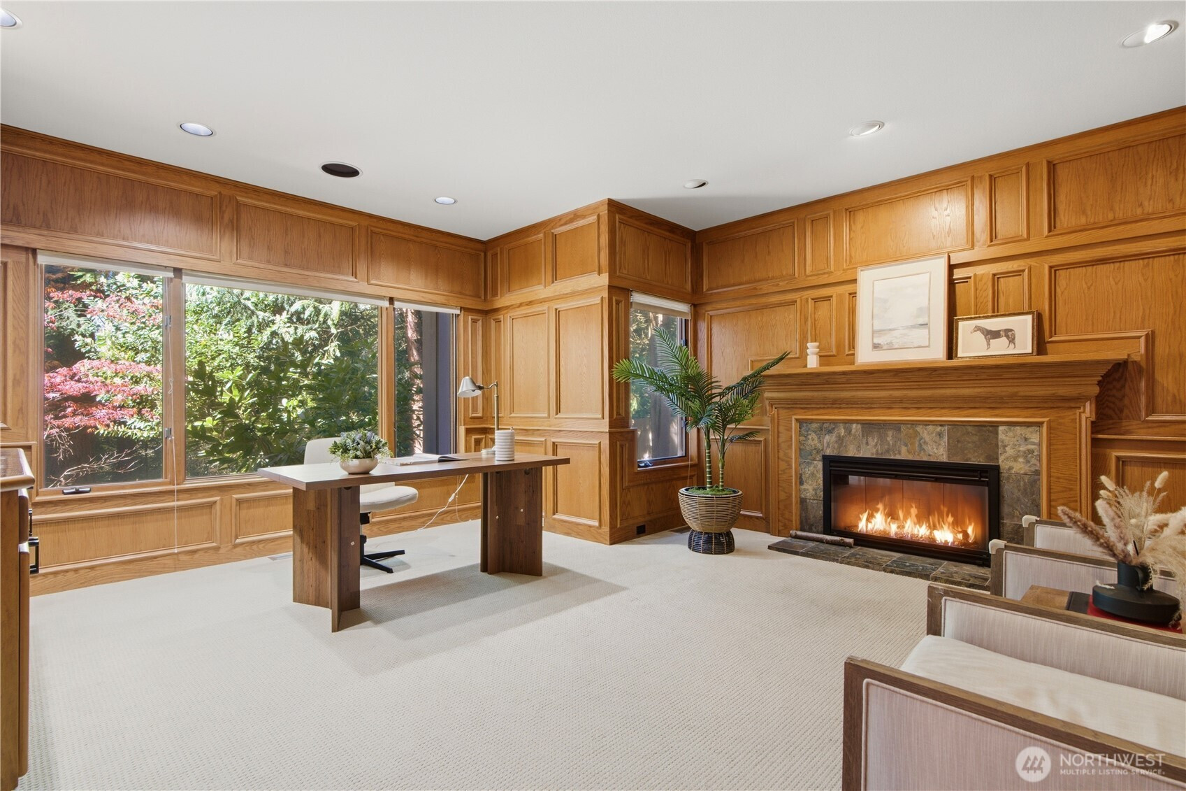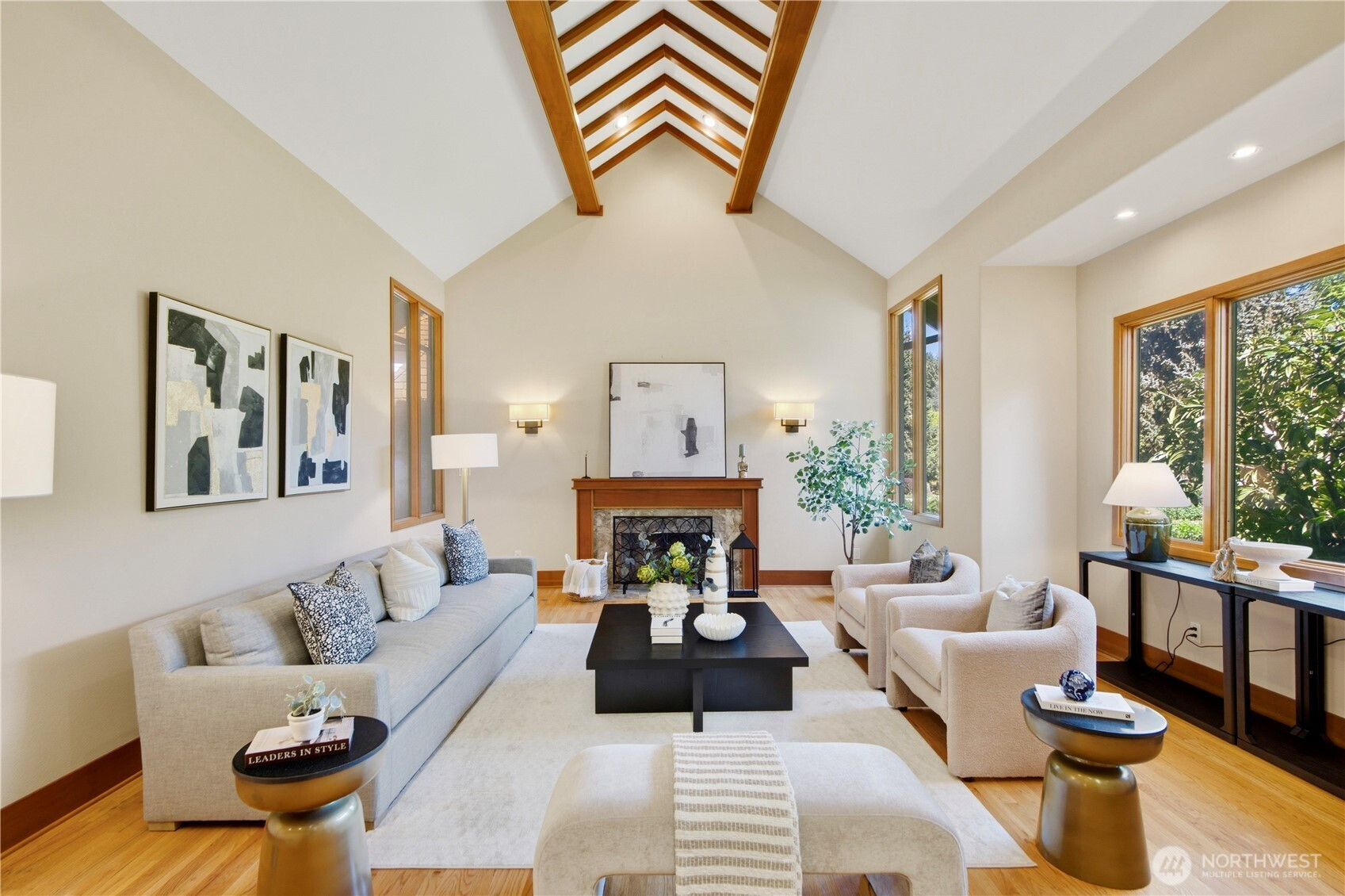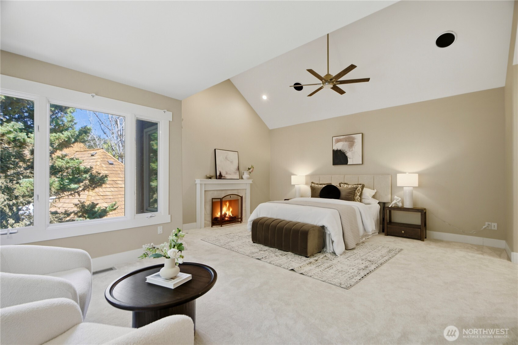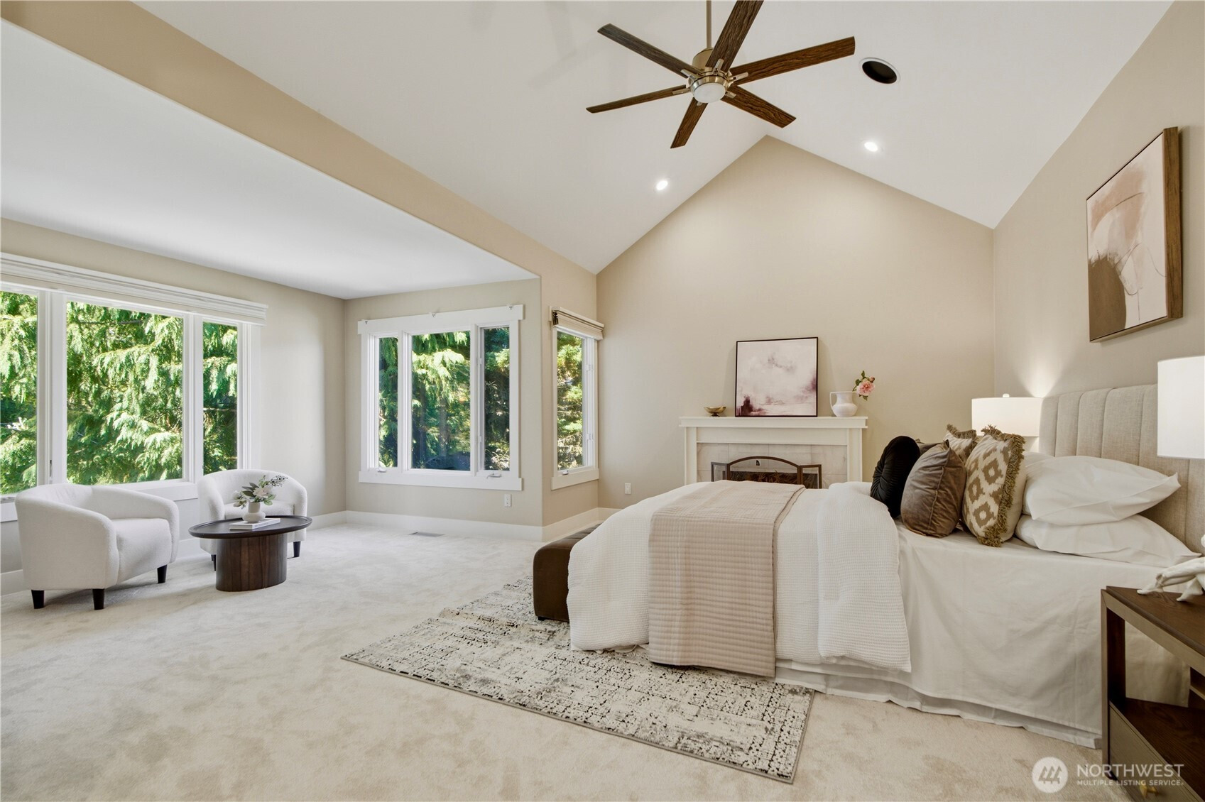 Discover the pinnacle of Pacific Northwest elegance in this iconic residence, masterfully designed by architect Curtis Gelotte. Privately nestled on a sun-drenched 0.79-acre lot in Lakemont Woods, this 5-bedroom, 4.5-bath estate perfectly blends timeless architecture with the serenity of mature evergreens and natural beauty. The grand entry welcomes you into light-filled living and dining areas featuring soaring ceilings and oversized windows that frame the tranquil backdrop. The home offers a seamless, inviting flow, including a cozy family room, a sun-splashed dining nook, and a gourmet kitchen equipped with rich cherry cabinetry, slab granite countertops, and a substantial island. An executive office with a built-in wet bar. Upstairs, the luxurious primary suite serves as a secluded sanctuary, complete with a private fireplace, sitting area, and heated marble floors. Generously sized secondary bedrooms and an oversized bonus room offer exceptional flexibility for guests, media, playroom or creative pursuits. Outside, mature landscaping, expansive decking, and fire pits—perfect for both entertaining and quiet reflection. New carpet, newer roof, water heater and furnace. Extra-wide four-car garage. Top top-rated schools, and easy access to I-90 and I-405, this rare architectural treasure is ready for its next chapter.