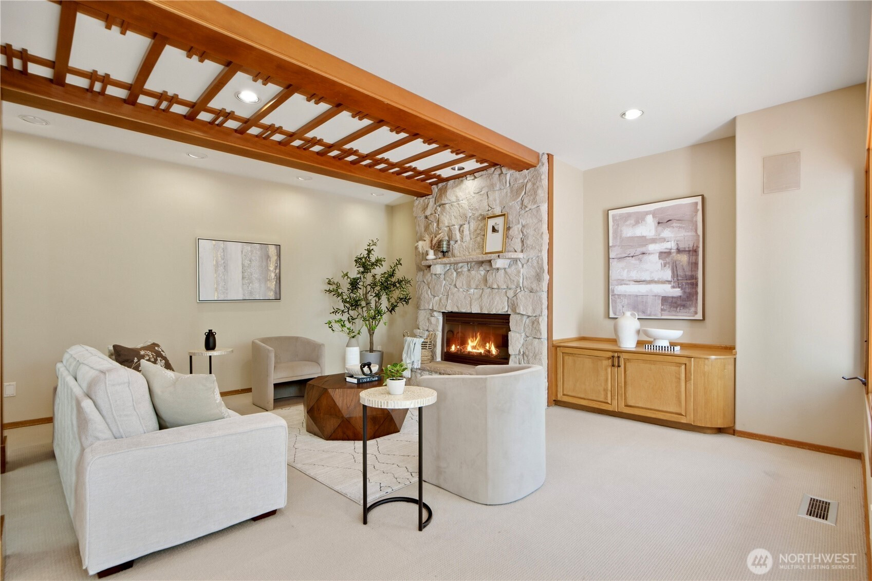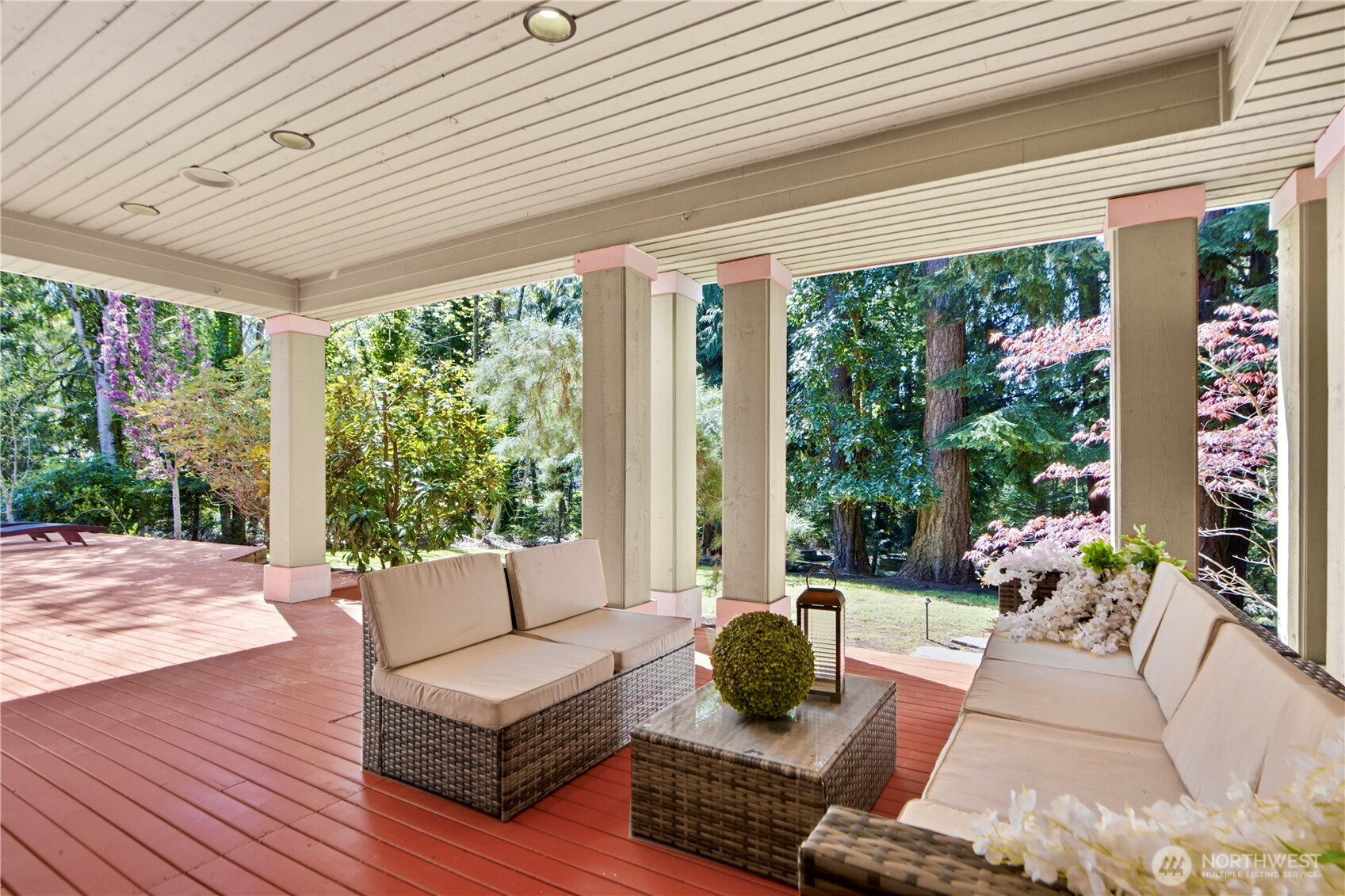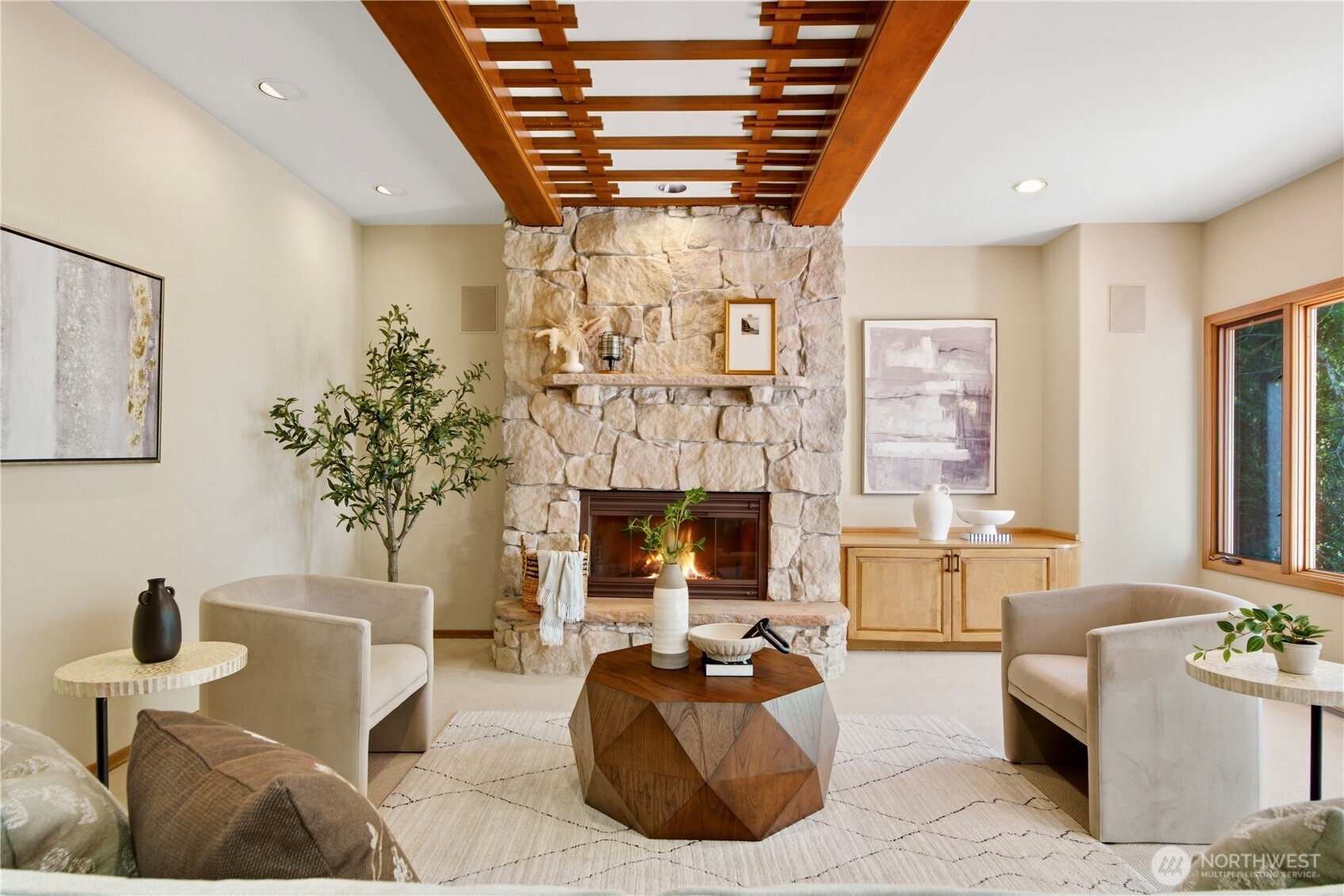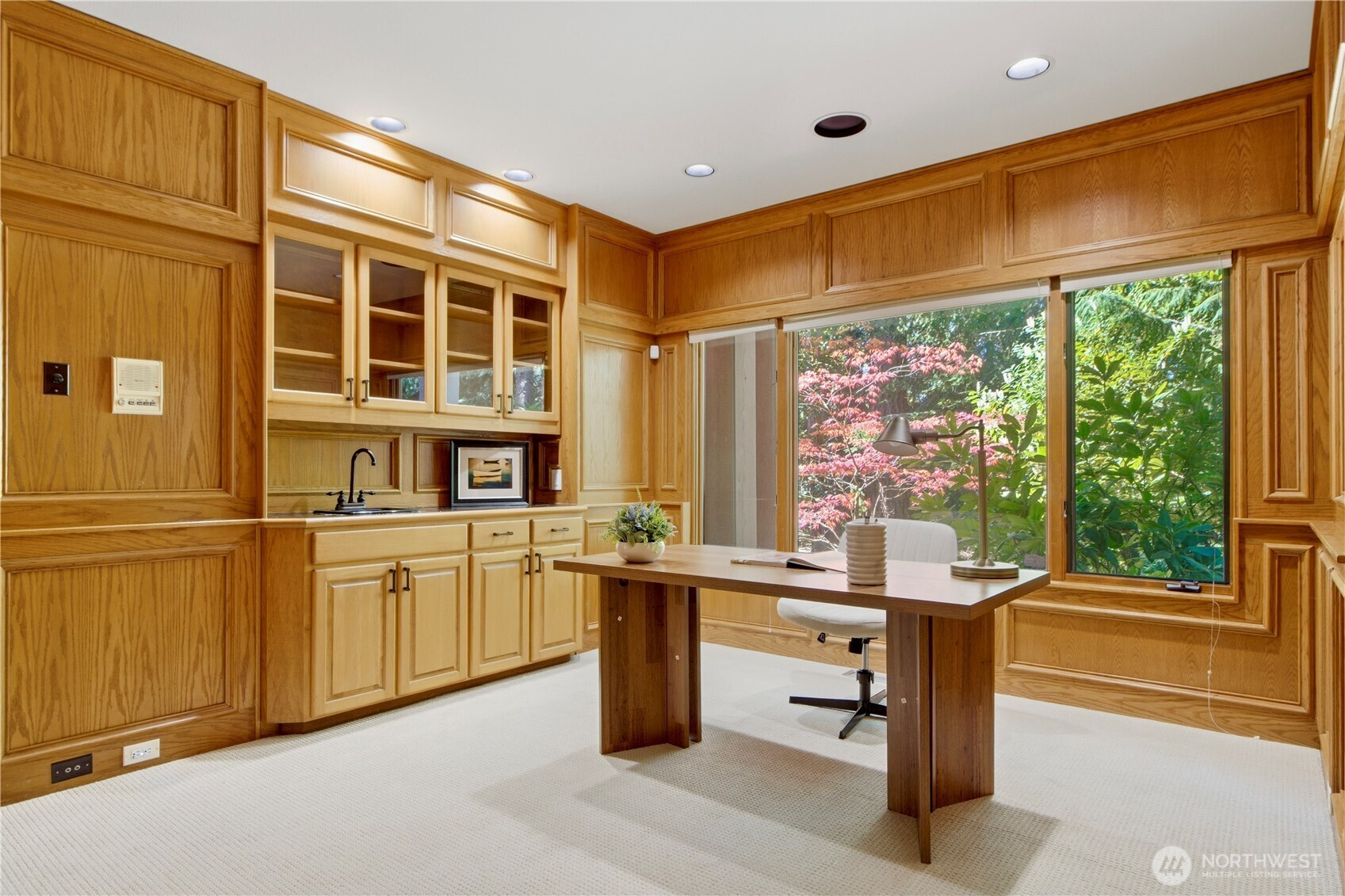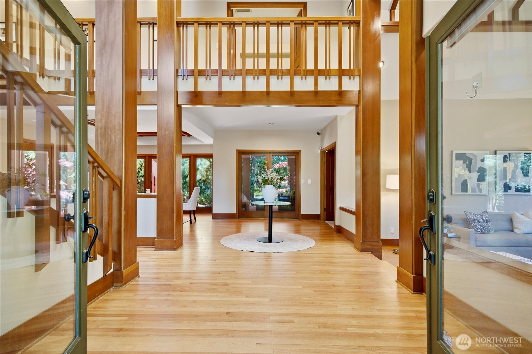 Discover the pinnacle of Pacific Northwest elegance in this iconic residence, masterfully designed by architect Curtis Gelotte. Privately nestled on a sun-drenched 0.79-acre lot in Lakemont Woods, this 5-bedroom, 4.5-bath estate perfectly blends timeless architecture with the serenity of mature evergreens and natural beauty. The grand entry welcomes you into light-filled living and dining areas featuring soaring ceilings and oversized windows that frame the tranquil backdrop. The home offers a seamless, inviting flow, including a cozy family room, a sun-splashed dining nook, and a gourmet kitchen equipped with rich cherry cabinetry, slab granite countertops, and a substantial island. An executive office with a built-in wet bar. Upstairs, the luxurious primary suite serves as a secluded sanctuary, complete with a private fireplace, sitting area, and heated marble floors. Generously sized secondary bedrooms and an oversized bonus room offer exceptional flexibility for guests, media, playroom or creative pursuits. Outside, mature landscaping, expansive decking, and fire pits—perfect for both entertaining and quiet reflection. New carpet, newer roof, water heater and furnace. Extra-wide four-car garage. Top top-rated schools, and easy access to I-90 and I-405, this rare architectural treasure is ready for its next chapter.