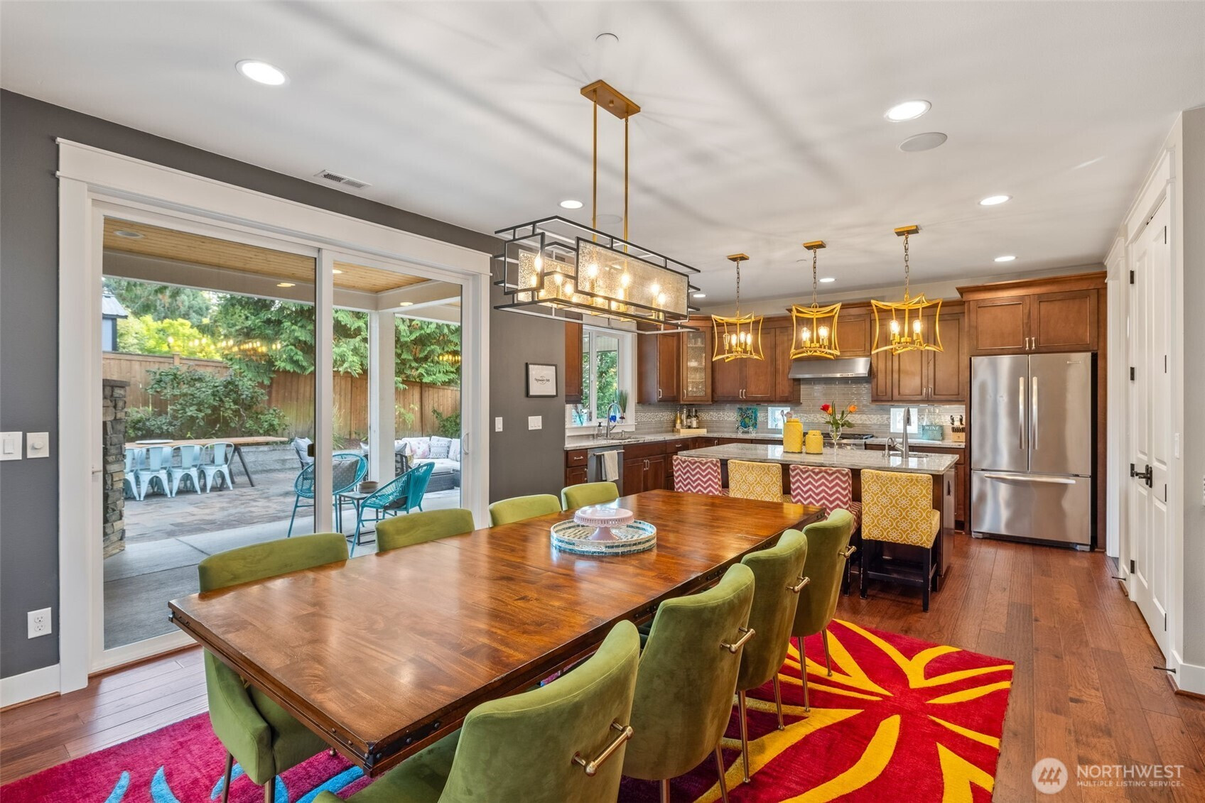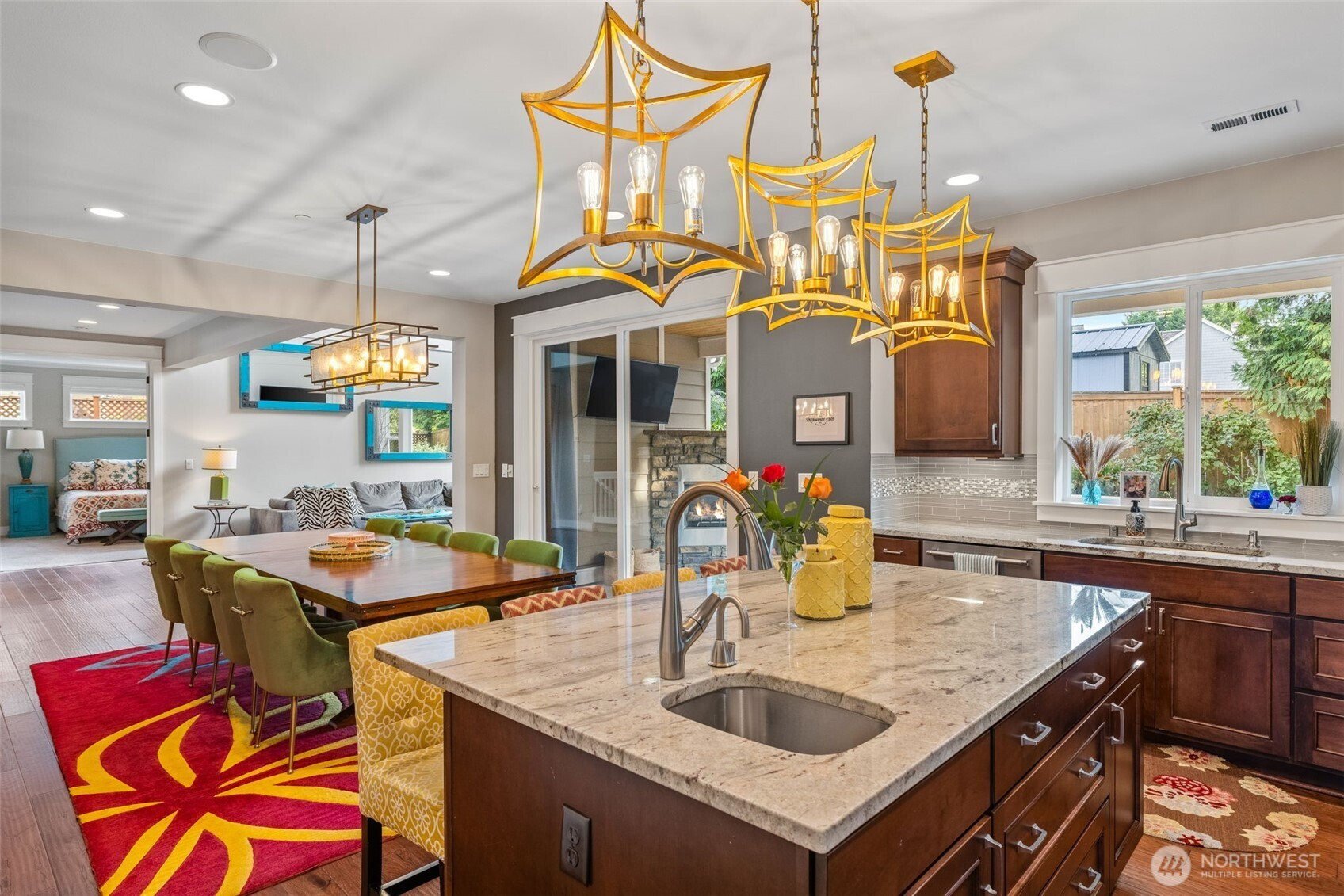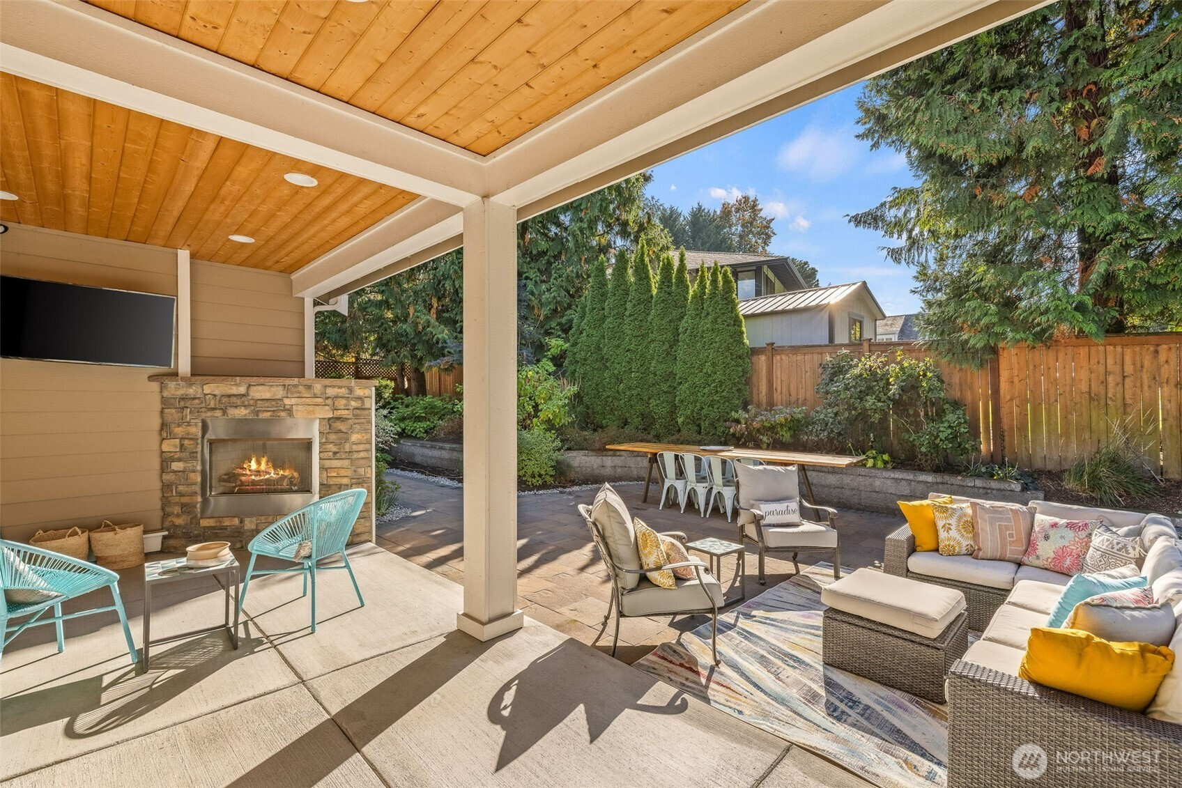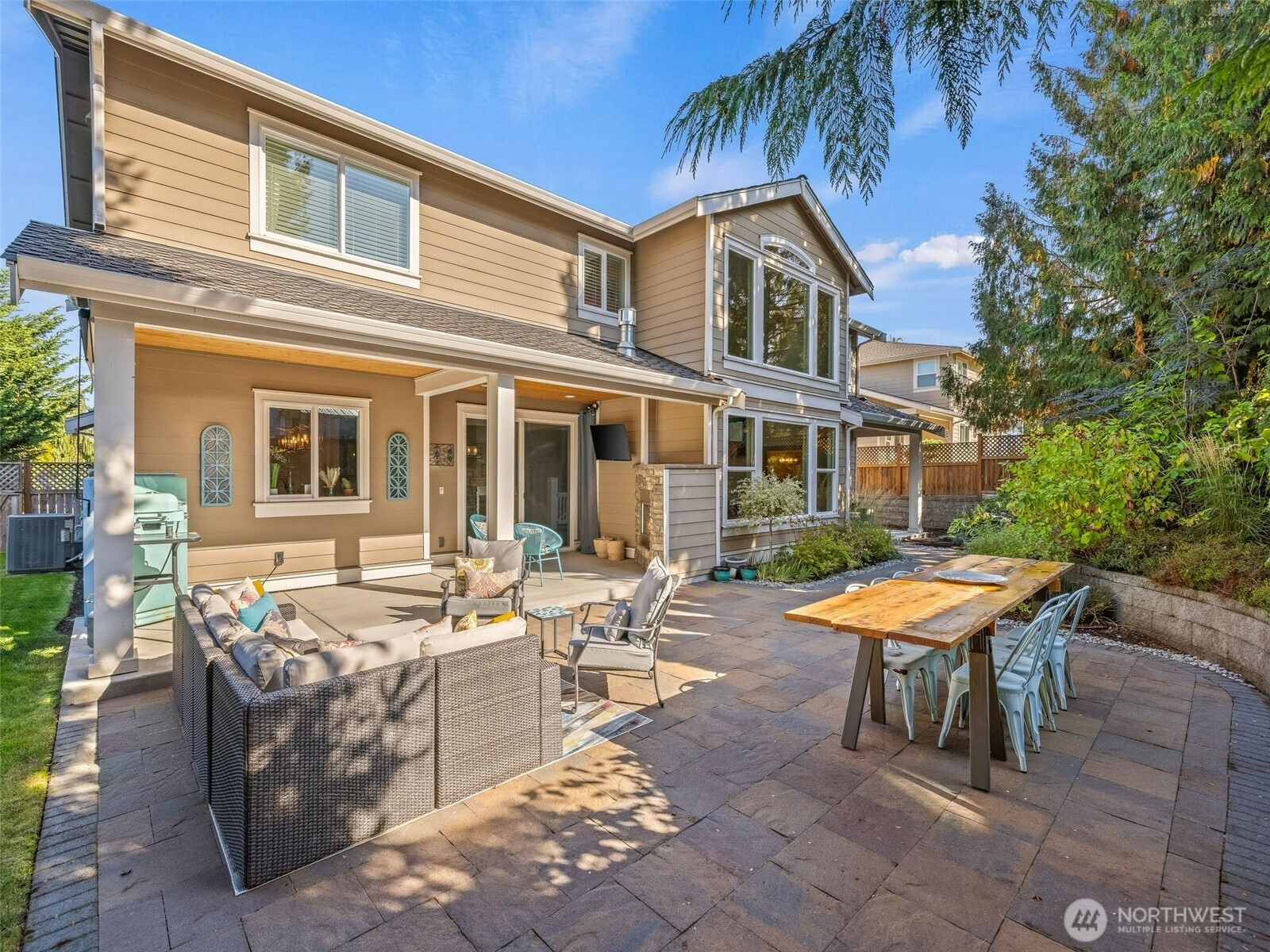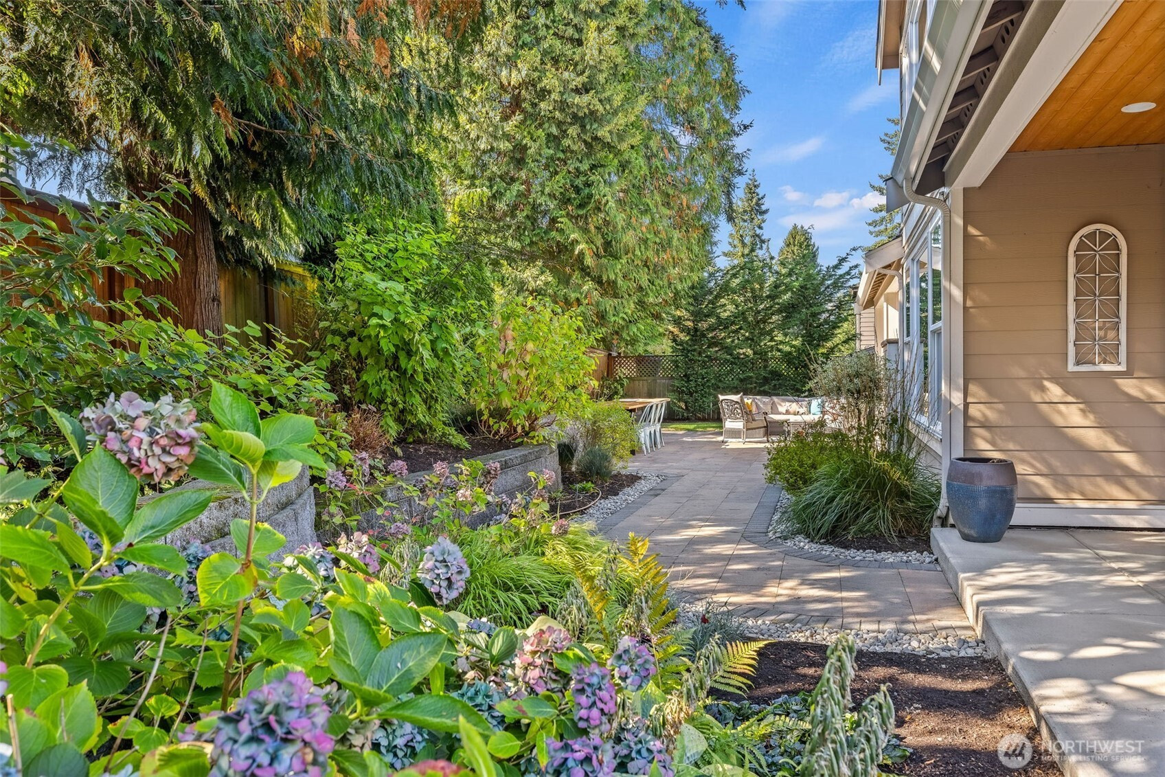 Situated on the most desirable street in town, this Josephine Parc 4-bedroom, 2.5-bath home, features a large office, hardwood floors and a bright two-story foyer. The open living area has high ceilings, abundant natural light, and a covered patio with a cozy fireplace overlooking the meticulously kept garden. The spacious kitchen offers granite countertops, a large island with seating, and a breakfast bar. The main-level primary suite includes a walk-in closet, soaking tub, dual vanities, and a private covered patio. Upstairs, three bedrooms and a bonus family room. Additional highlights: two-car garage with EV charging and built-in shelving, plus a single-car garage. Close to shops, parks, dining, swim clubs and under 20 min to Seattle.