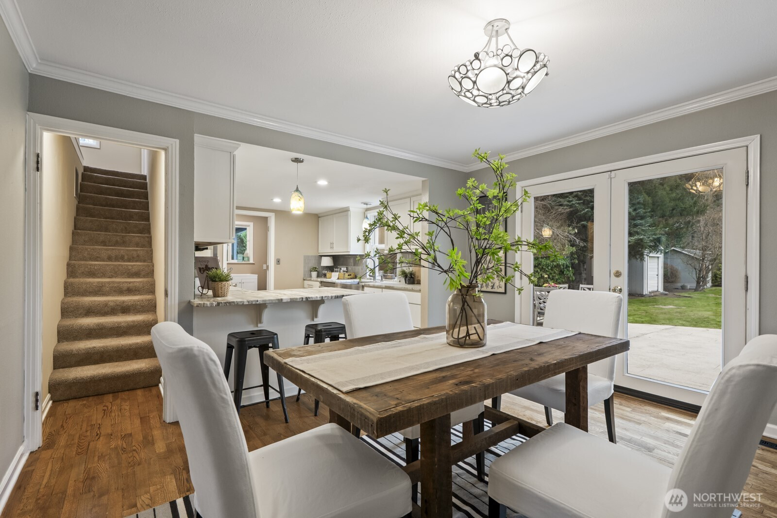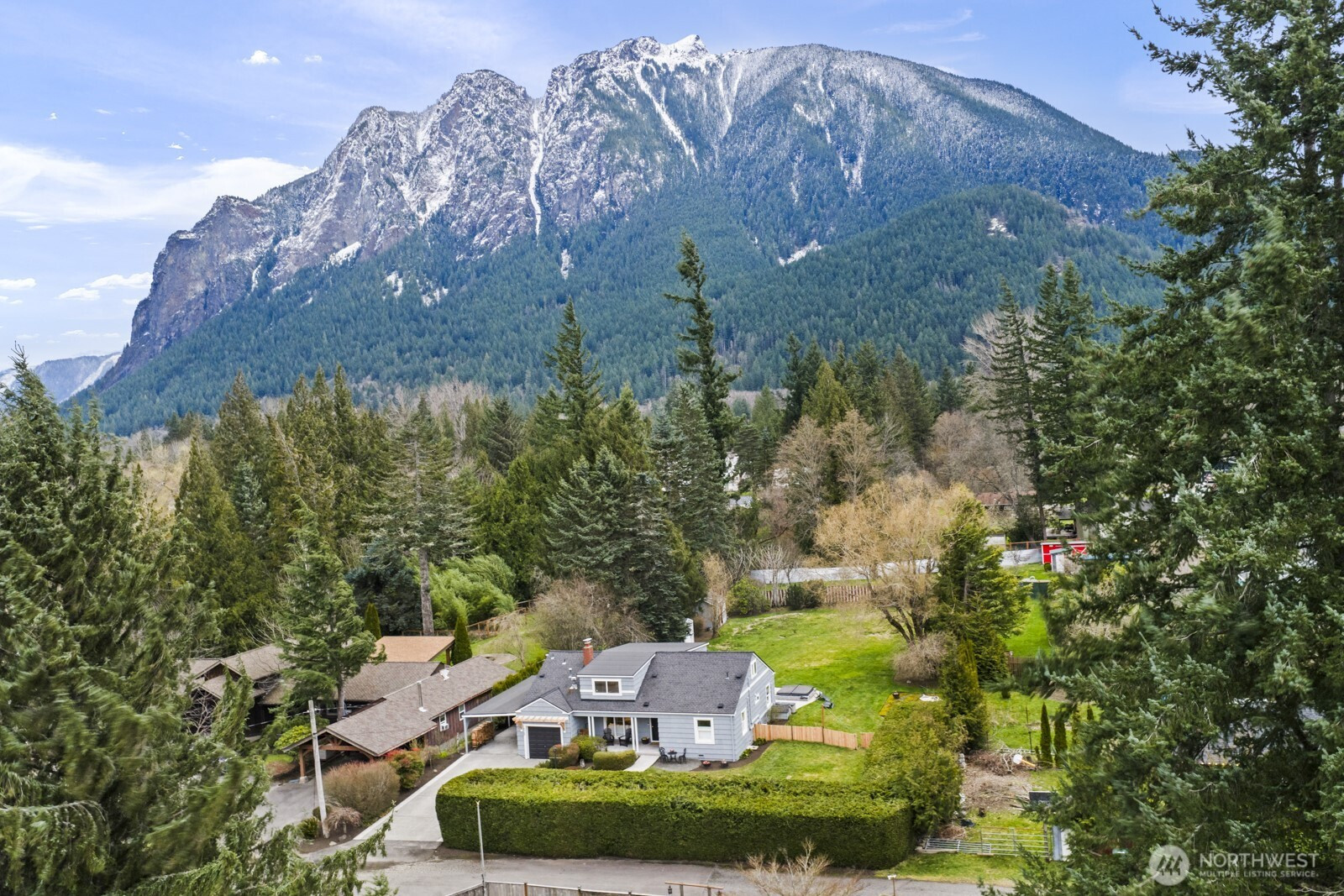 Location. Space. Opportunity. Set on a beautifully landscaped 1/2 acre with sweeping views of Mt. Si & the Cascade Range, this updated 5-bedroom home + bonus room offers the perfect blend of comfort, functionality & future potential. The updated kitchen is designed for everyday living featuring rough-cut granite countertops, custom tile flooring & backsplash, SS appliances(gas cooking!) & French doors that open to the fully fenced yard for seamless indoor-outdoor living. Hardwood floors, updated lighting, fresh interior paint & a cozy wood fireplace enhance the main living areas. The primary suite is conveniently located on the main level, as well as, a spa-inspired bathroom, bonus room & a highly functional mudroom. Upstairs, four additional bedrooms, a full bathroom & abundant storage provide space for everyone. Some recent improvements include a newer roof, furnace w/ four mini-split units & fresh exterior paint. Outdoor living truly shines with an expansive stone patio featuring a fire pit & hot tub, RV parking, mature landscaping, a dedicated toy shed & a separate hobby/art studio. A one-car garage + two-car carport offer flexible parking or additional entertaining space. Zoned LDR (4 units/acre), the property also presents potential subdivide/cottage development opportunities, adding long-term value & flexibility. Ideal location close to shops, restaurants, outdoor adventures & I-90—this is a rare opportunity in a highly desirable setting. Easy to reach, hard to leave.