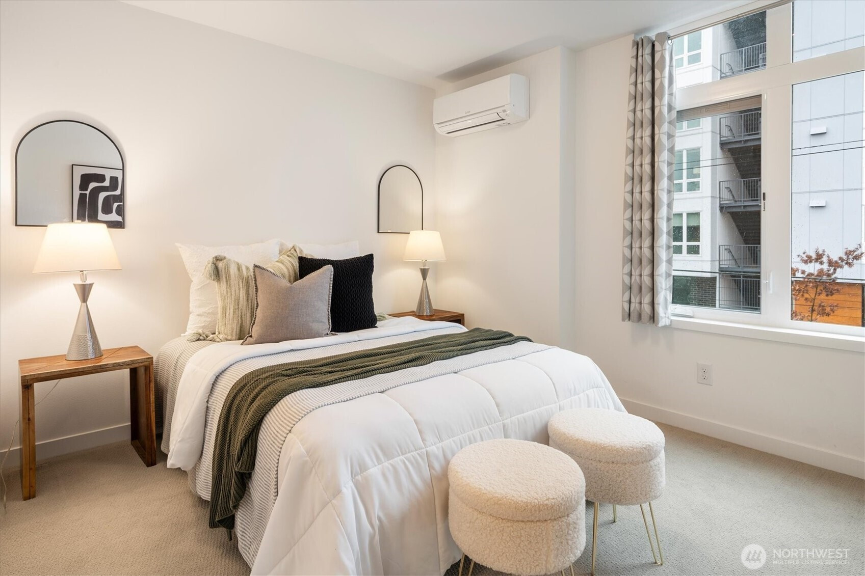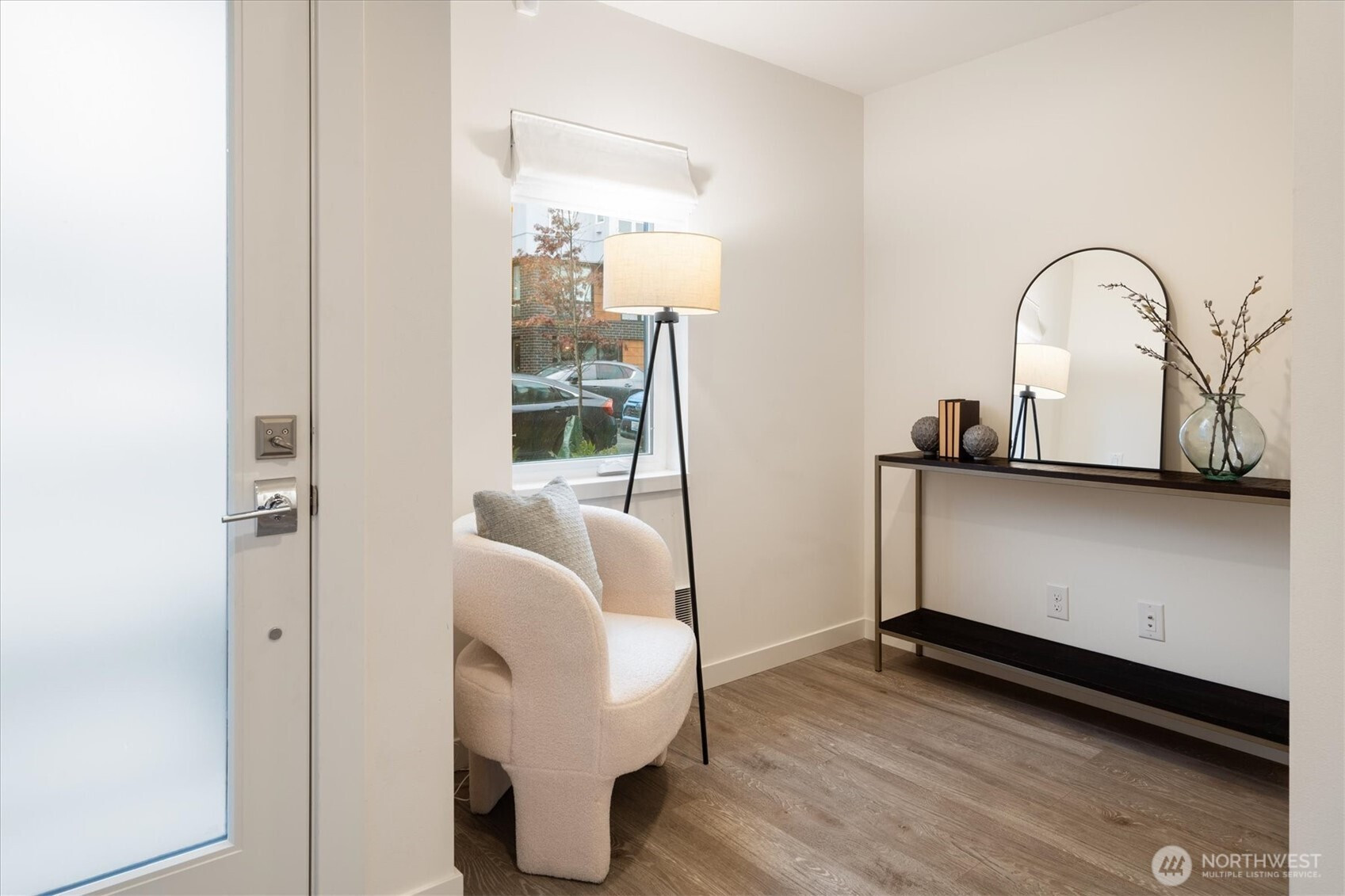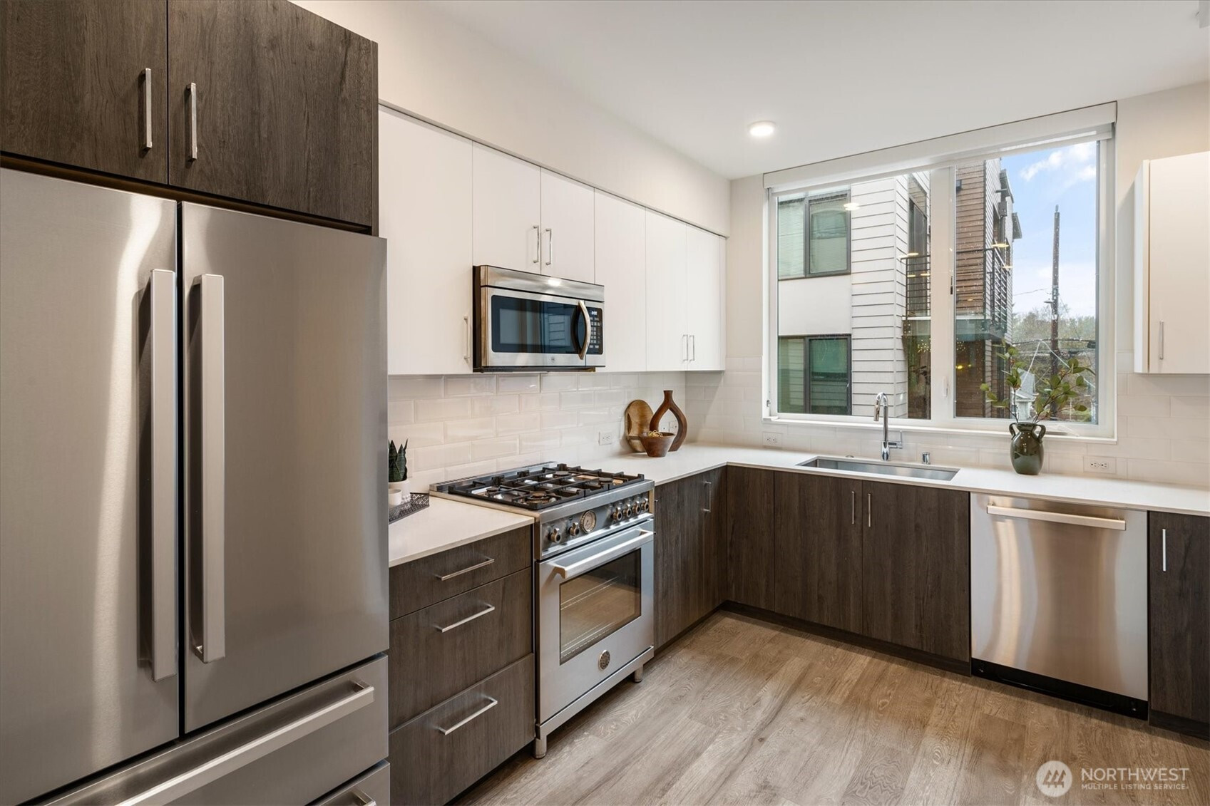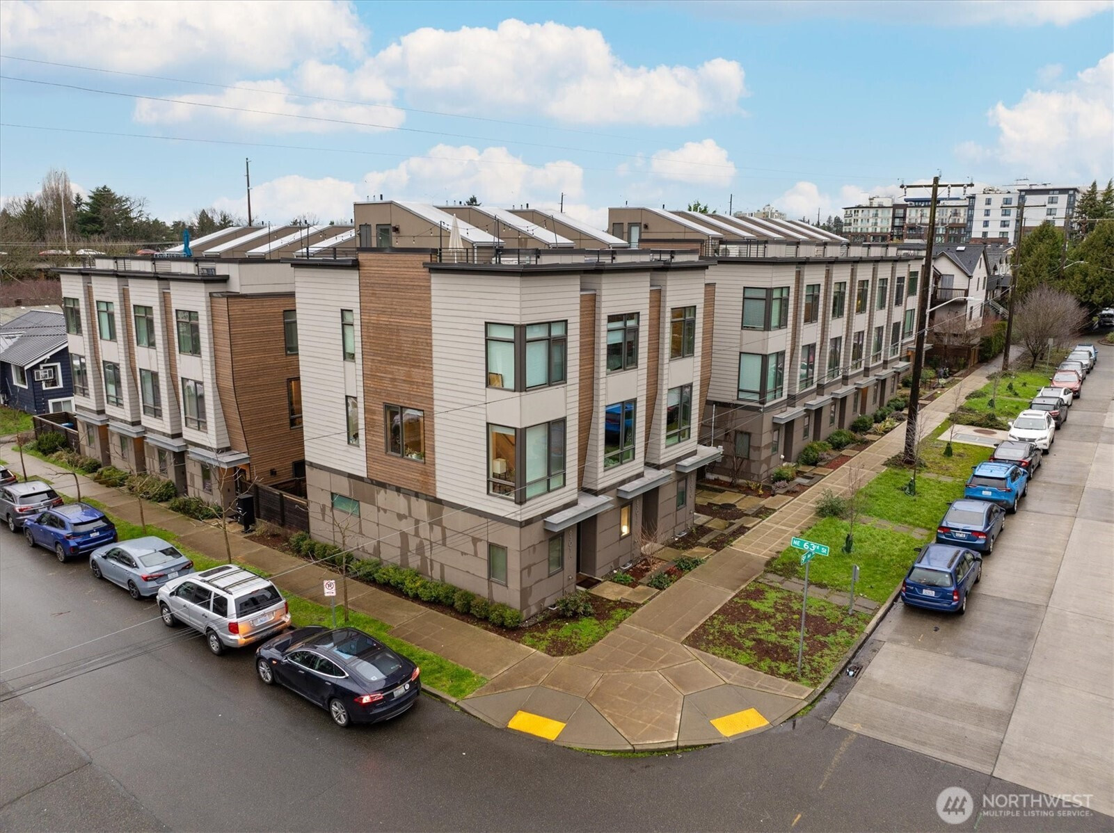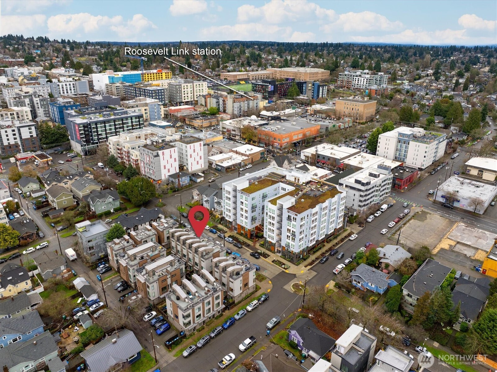 Newer construction meets effortless urban living in this sophisticated Isola Homes residence, perfectly positioned between Green Lake & Roosevelt. Light-filled & impeccably maintained, the open-concept floor plan features high ceilings & refined finishes. Expansive upper level primary suite offers walk-in closet & spa-like bath. Ground floor: bed, bath, & fenced patio. Mountain views from the generous rooftop deck—perfect for entertaining. Enjoy convenient access to: Light Rail (3 blocks), Green Lake paths, Whole Foods (1 block), Roosevelt shops & cafés, parks, UW, & transit. All steps away. Rare off-street parking adds convenience. No HOA! Exceptional condition & premier location make this home a standout for warm modern Seattle living.
