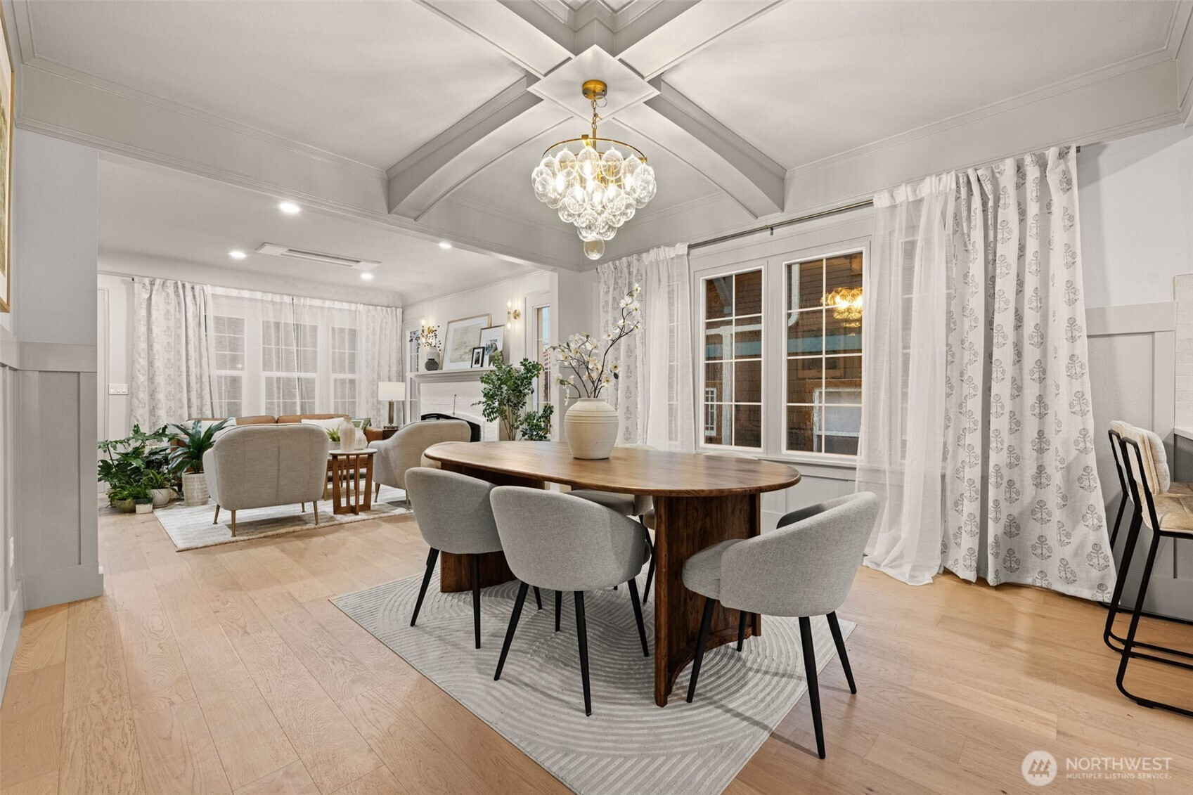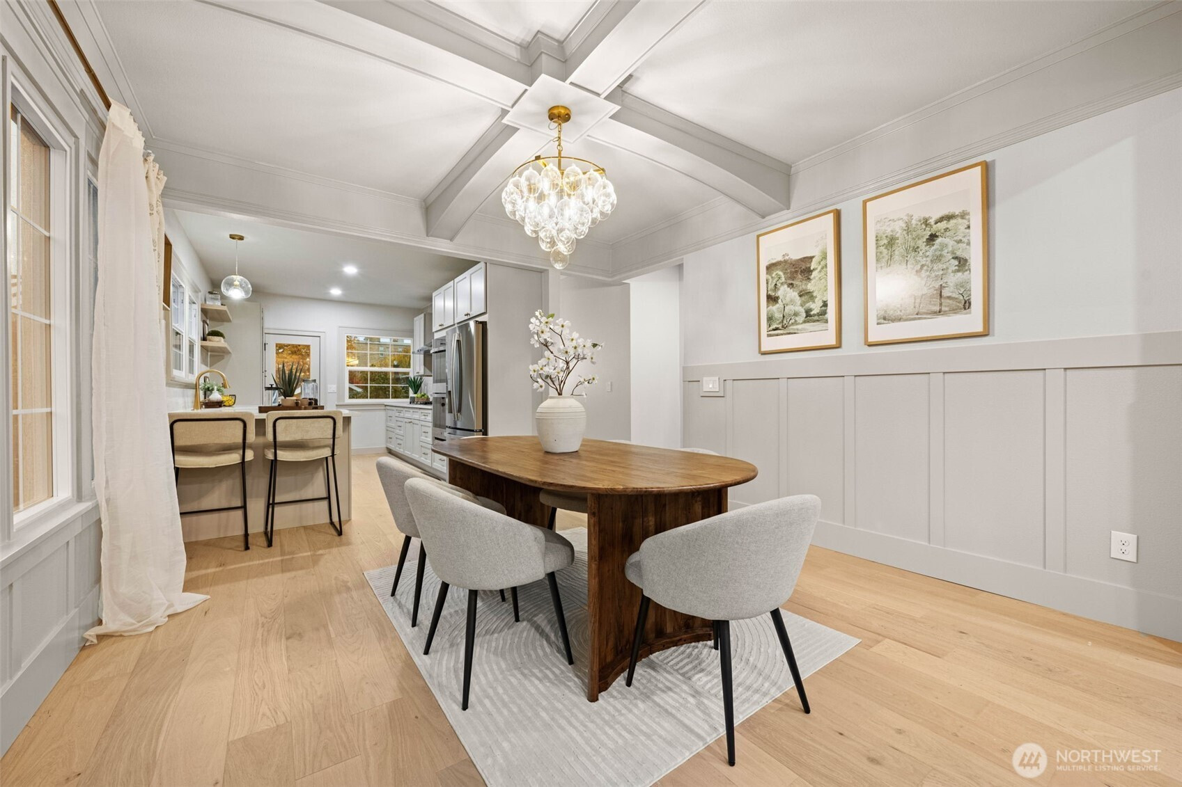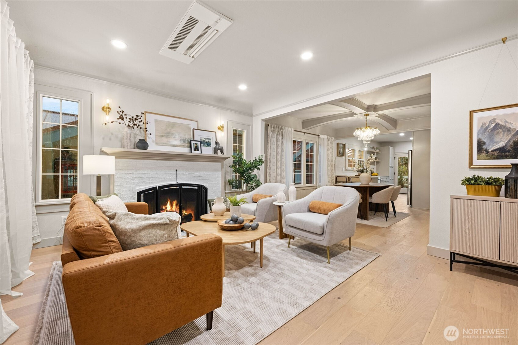 Craftsman charm meets modern elegance in this fully updated home. Cozy FP warms the airy lvg rm upon entry, flowing to the dining area w original coffered ceilings, timeless wainscoting details & elegant fixtures. Kitchen blends style & function w new cabinetry, stone countertops gas range w double oven & ample storage. Chic primary suite feat a walk-in closet & lux spa-like bath w a dreamy, oversized shower. Full BA & moody office or optional 5th bed complete main level. Downstairs offers the perfect relaxation space w a generous bonus rm & wet bar, plus 3 beds & full BA. New roof, windows, electrical, plumbing, mini splits, hot water heater, & more—request the full list! Ideally located on a quiet, tree-lined street & ready to call home!
