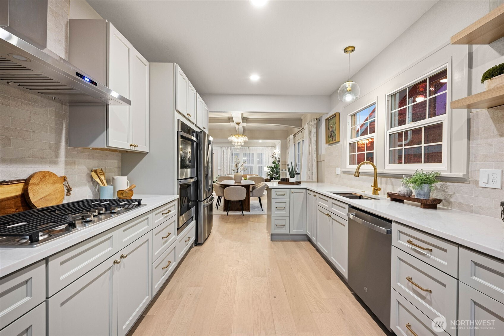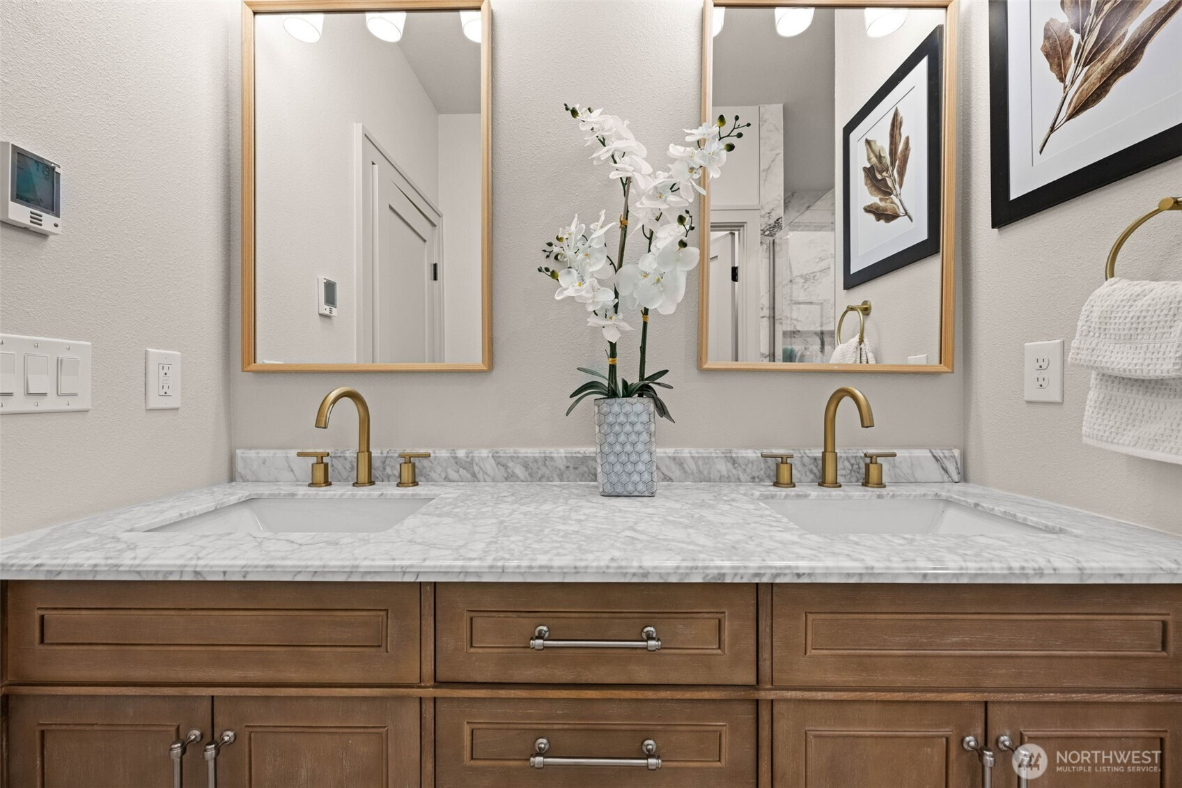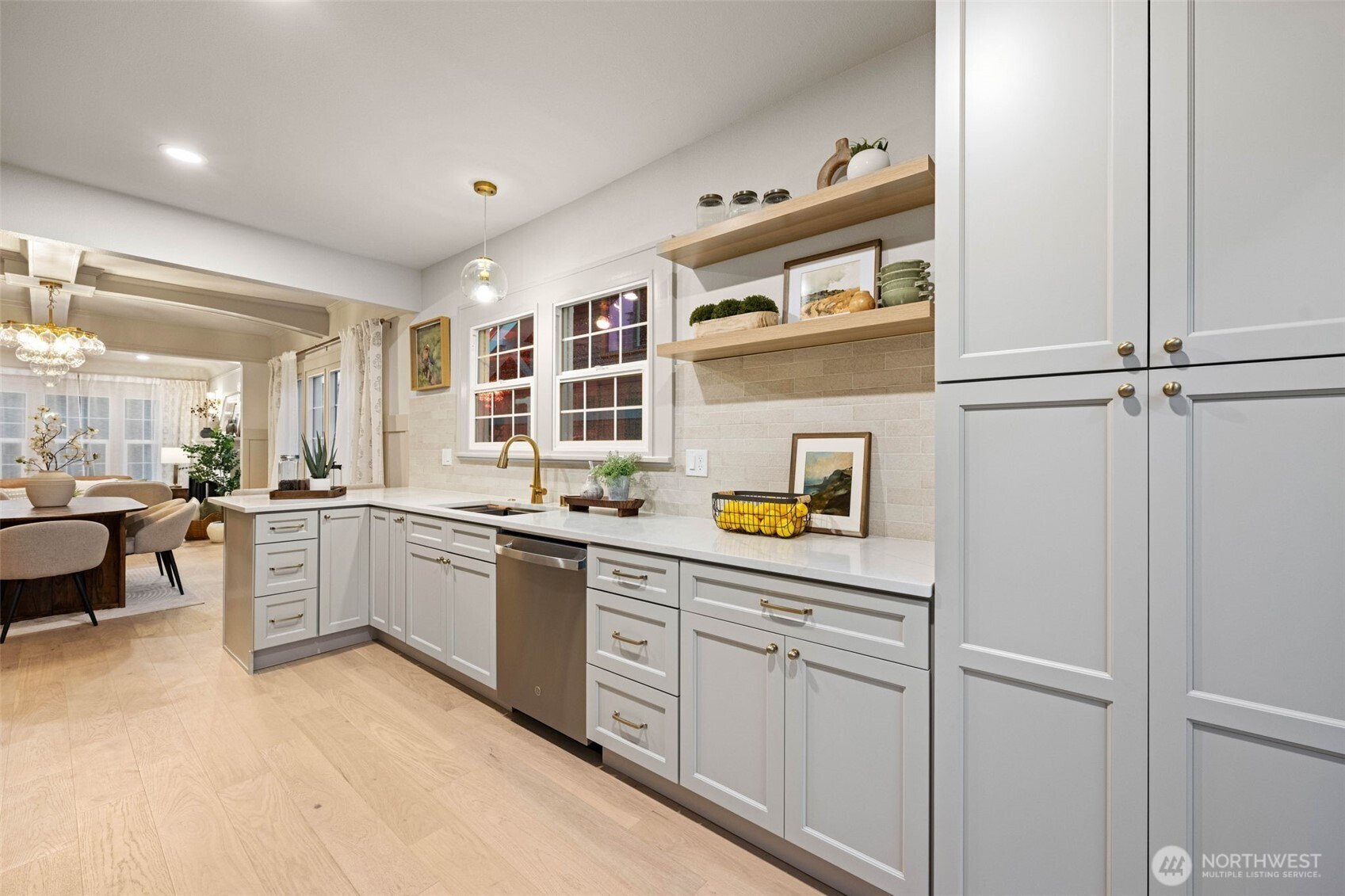 Craftsman charm meets modern elegance in this fully updated home. Cozy FP warms the airy lvg rm upon entry, flowing to the dining area w original coffered ceilings, timeless wainscoting details & elegant fixtures. Kitchen blends style & function w new cabinetry, stone countertops gas range w double oven & ample storage. Chic primary suite feat a walk-in closet & lux spa-like bath w a dreamy, oversized shower. Full BA & moody office or optional 5th bed complete main level. Downstairs offers the perfect relaxation space w a generous bonus rm & wet bar, plus 3 beds & full BA. New roof, windows, electrical, plumbing, mini splits, hot water heater, & more—request the full list! Ideally located on a quiet, tree-lined street & ready to call home!